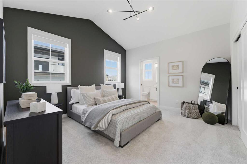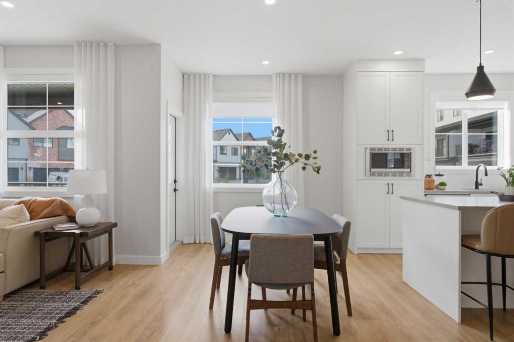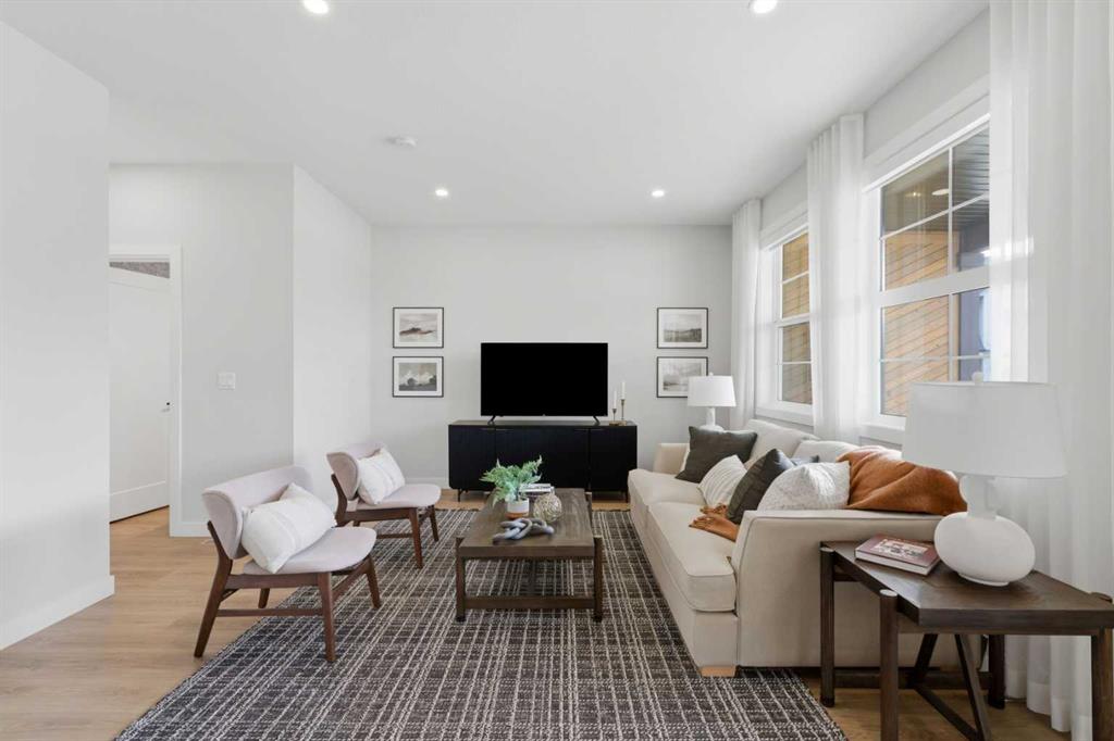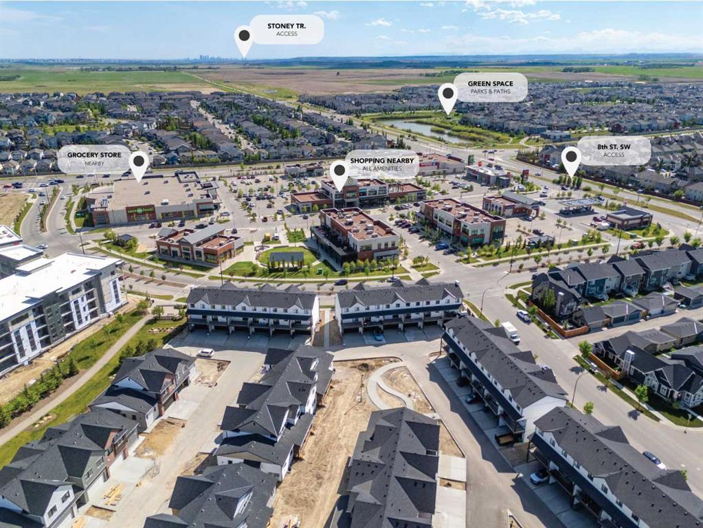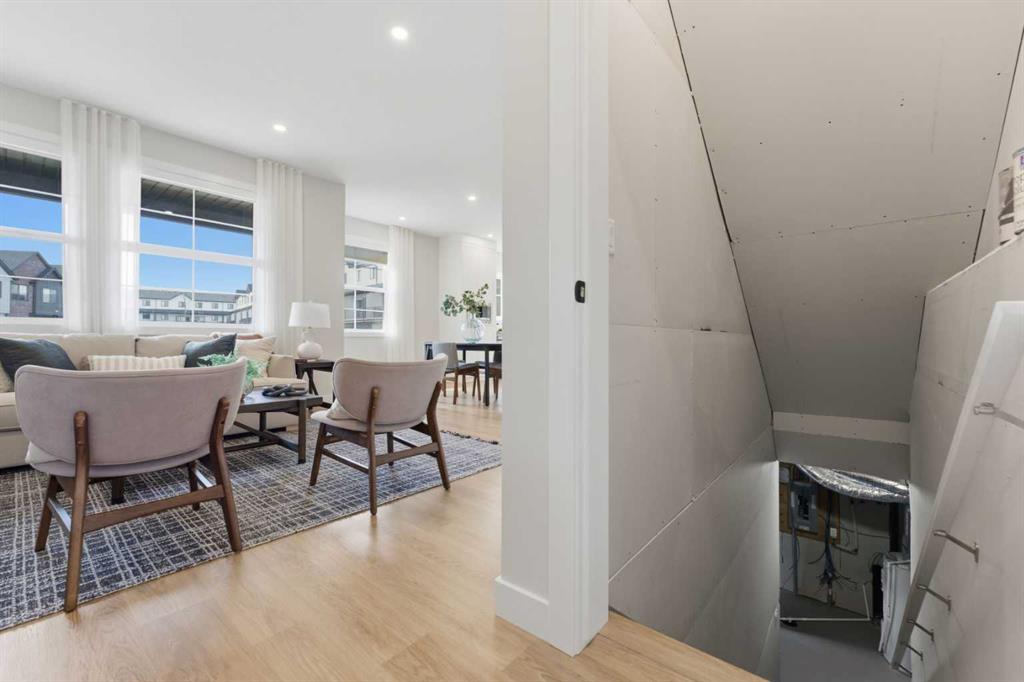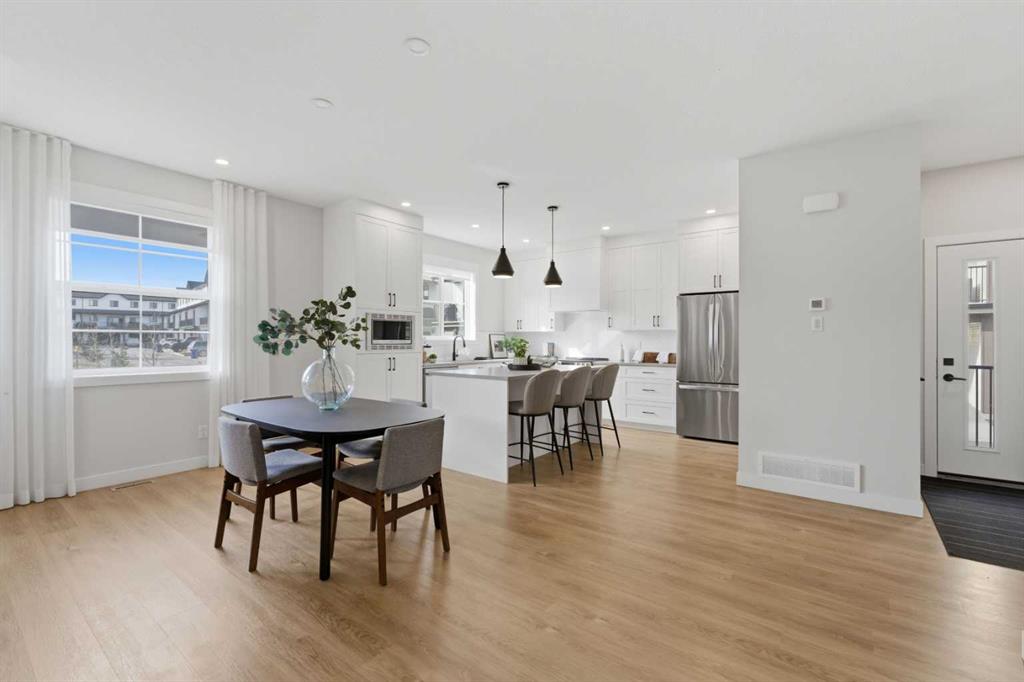 Experience luxury and convenience in the heart of Airdrie’s award-winning community, Cooper’s Crossing. As a former showhome, this stunning corner-unit townhome comes fully loaded with premium designer upgrades and the added comfort of central air conditioning already installed. The main level offers an open-concept layout with 9-foot ceilings, a gourmet kitchen featuring an oversized island and stainless steel appliances, and a private primary retreat with soaring vaulted ceilings and a spa-inspired ensuite. The sun-soaked upper level provides a versatile bonus room, two additional spacious bedrooms, and a dedicated laundry area. Enjoy sunshine all day and peaceful evenings on your covered south-facing balcony, complete with a gas line and views of the landscaped green space. This home is finished with a double attached garage and modern contemporary exteriors, offering a sophisticated "Lock & Leave" lifestyle. With low condo fees of $347/month, all exterior maintenance, snow removal, and landscaping are professionally managed. Discover effortless, maintenance-free living in one of Airdrie's most prestigious locations. Book your private tour today!
