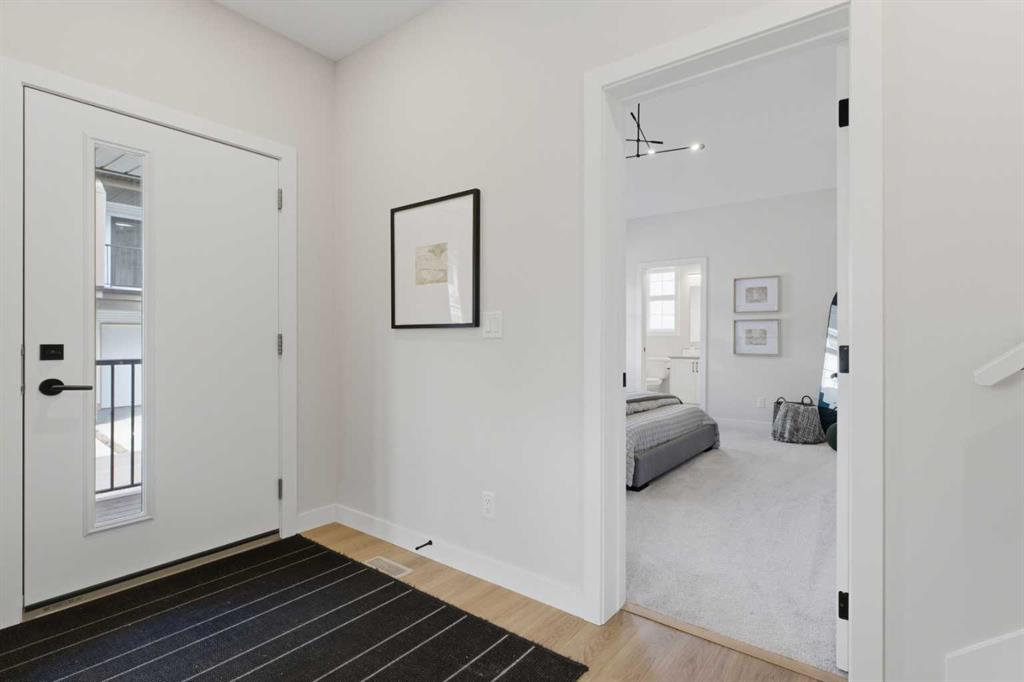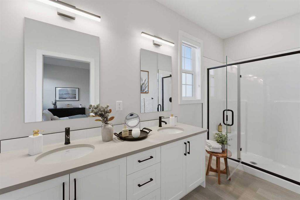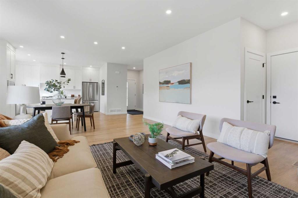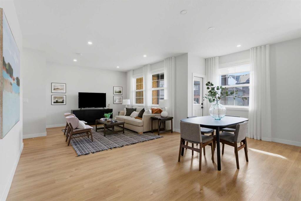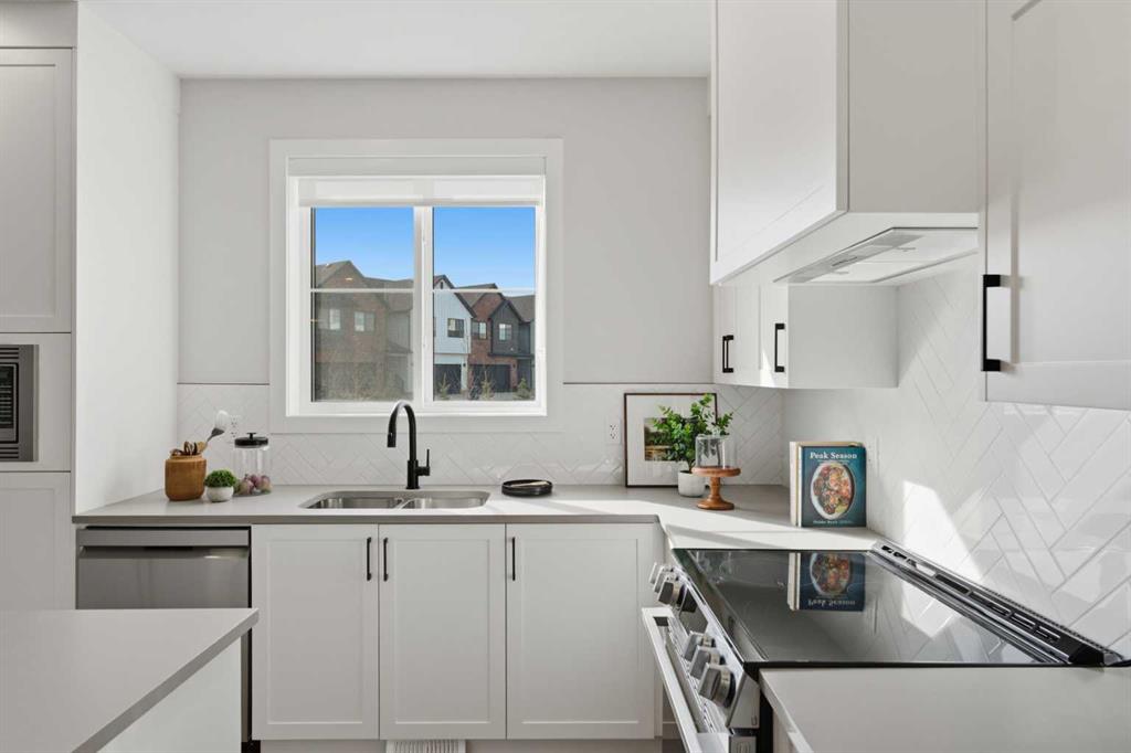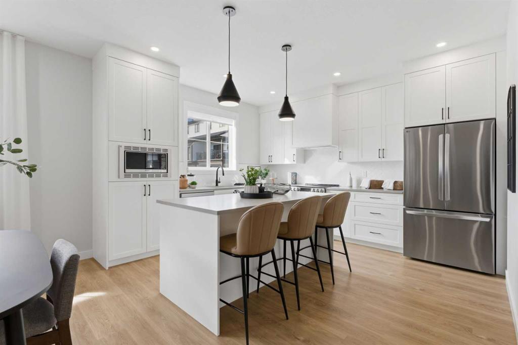 Experience luxury and convenience in the heart of Airdrie’s award-winning community, Cooper’s Crossing. As a former showhome, this stunning corner-unit townhome comes fully loaded with premium designer upgrades and the added comfort of central air conditioning already installed. The main level offers an open-concept layout with 9-foot ceilings, a gourmet kitchen featuring an oversized island and stainless steel appliances, and a private primary retreat with soaring vaulted ceilings and a spa-inspired ensuite. The sun-soaked upper level provides a versatile bonus room, two additional spacious bedrooms, and a dedicated laundry area. Enjoy sunshine all day and peaceful evenings on your covered south-facing balcony, complete with a gas line and views of the landscaped green space. This home is finished with a double attached garage and modern contemporary exteriors, offering a sophisticated "Lock & Leave" lifestyle. With low condo fees of $347/month, all exterior maintenance, snow removal, and landscaping are professionally managed. Discover effortless, maintenance-free living in one of Airdrie's most prestigious locations. Book your private tour today!