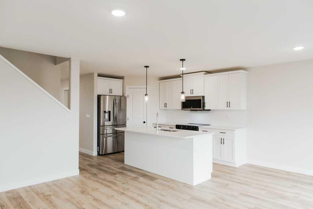 Welcome to the Evelyn Plan—an incredible opportunity for first-time buyers and savvy investors to step into the market with a smart, affordable, brand-new home in one of Clairmont’s fastest-growing communities. Offering over 1,365 sq ft of thoughtfully designed living space, this modern ½ duplex features 3 spacious bedrooms, 2 full 4-piece bathrooms, & 1/2 bath on the main level, a versatile office nook, and convenient upstairs laundry to suit today’s lifestyle. The bright, open-concept main floor is perfect for both everyday living and entertaining, highlighted by a stylish island kitchen with quartz countertops, real wood soft-close cabinetry, upgraded stainless steel appliances, and an oversized walk-in pantry for exceptional storage. Built with efficiency and long-term savings in mind, this home includes LED lighting, Low-E argon-filled windows, and hot water on demand to help keep monthly utility costs low—ideal for budget-conscious homeowners or investors focused on cash flow. Enjoy the extra-large backyard backing onto an easement for added privacy and outdoor space, while the location in Bridgewater offers access to parks, trails, a K–8 school, spray park, and skate park, all within a family-friendly setting. Even better, benefit from county property taxes approximately 48% lower than Grande Prairie, saving thousands every year. Currently under construction with an estimated completion of July 29, 2026, this is your chance to plan ahead, lock in value, and secure a quality new build at an attractive price point. (Pictures and renderings are samples from previous builds, please request spec sheet and renderings as per address)