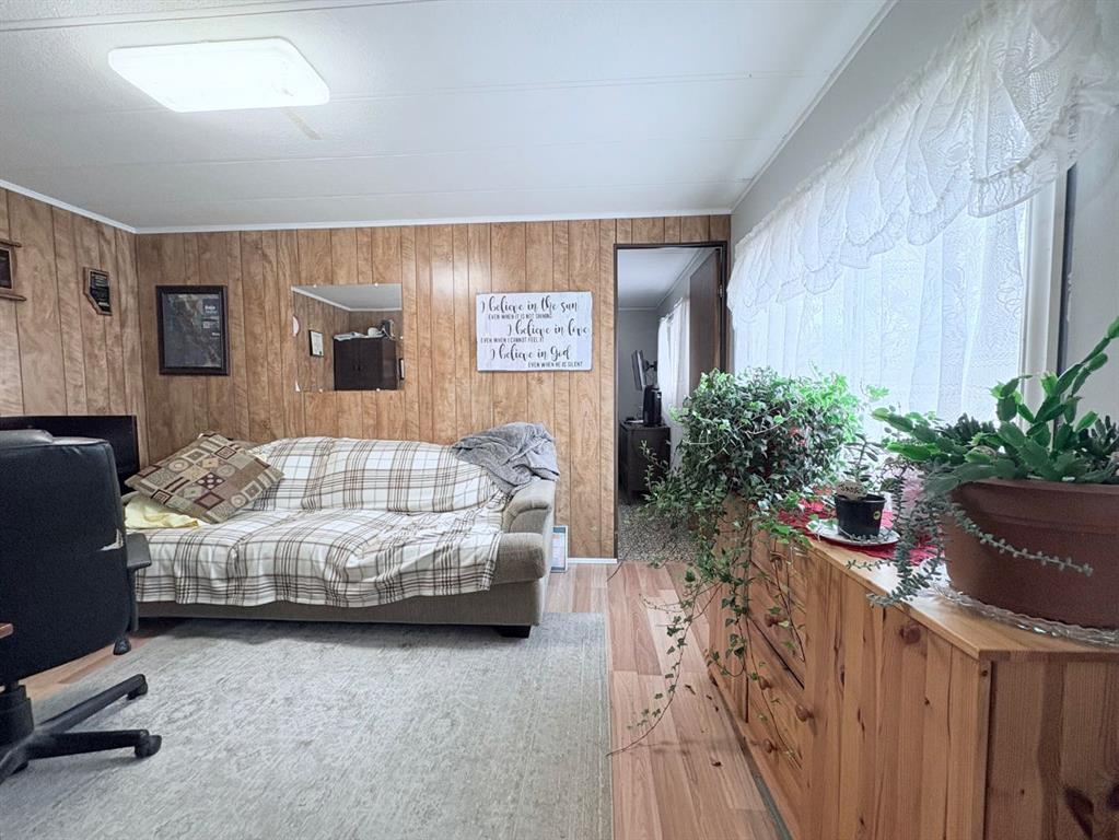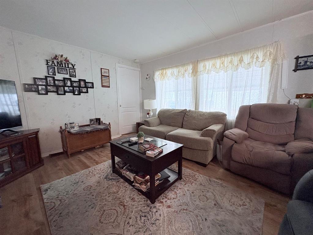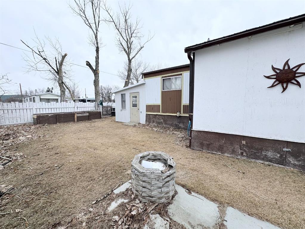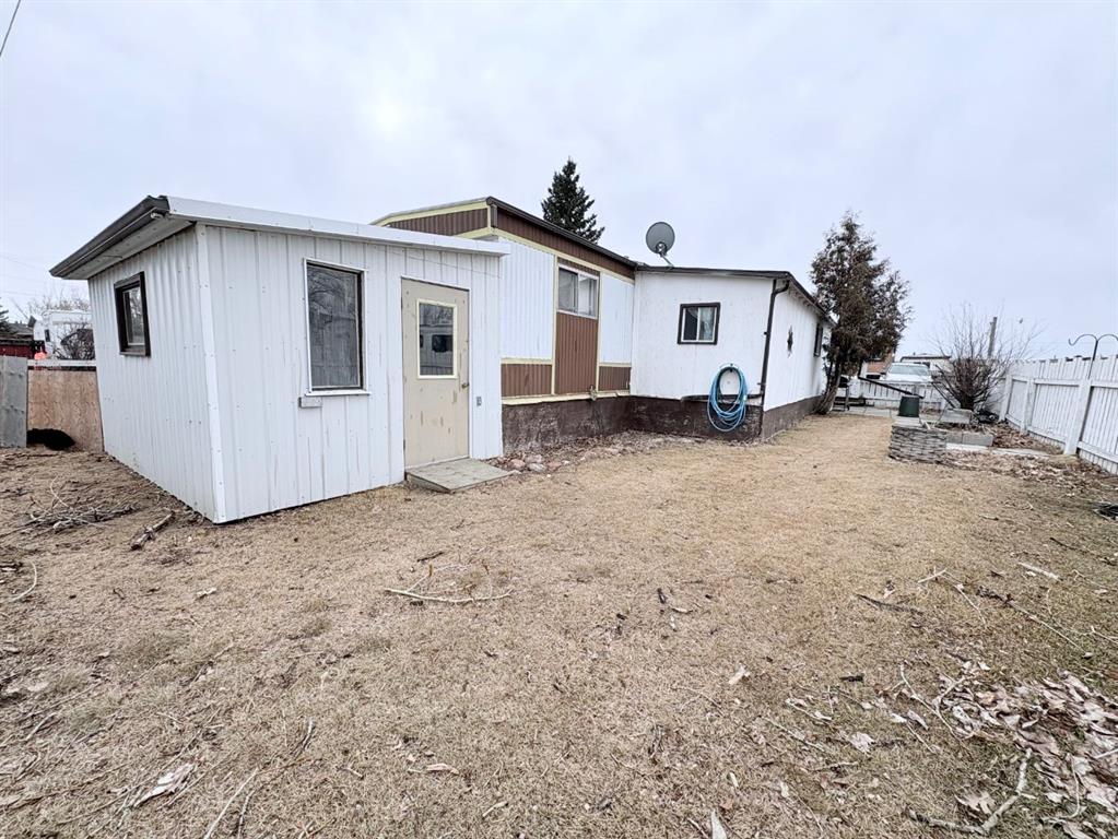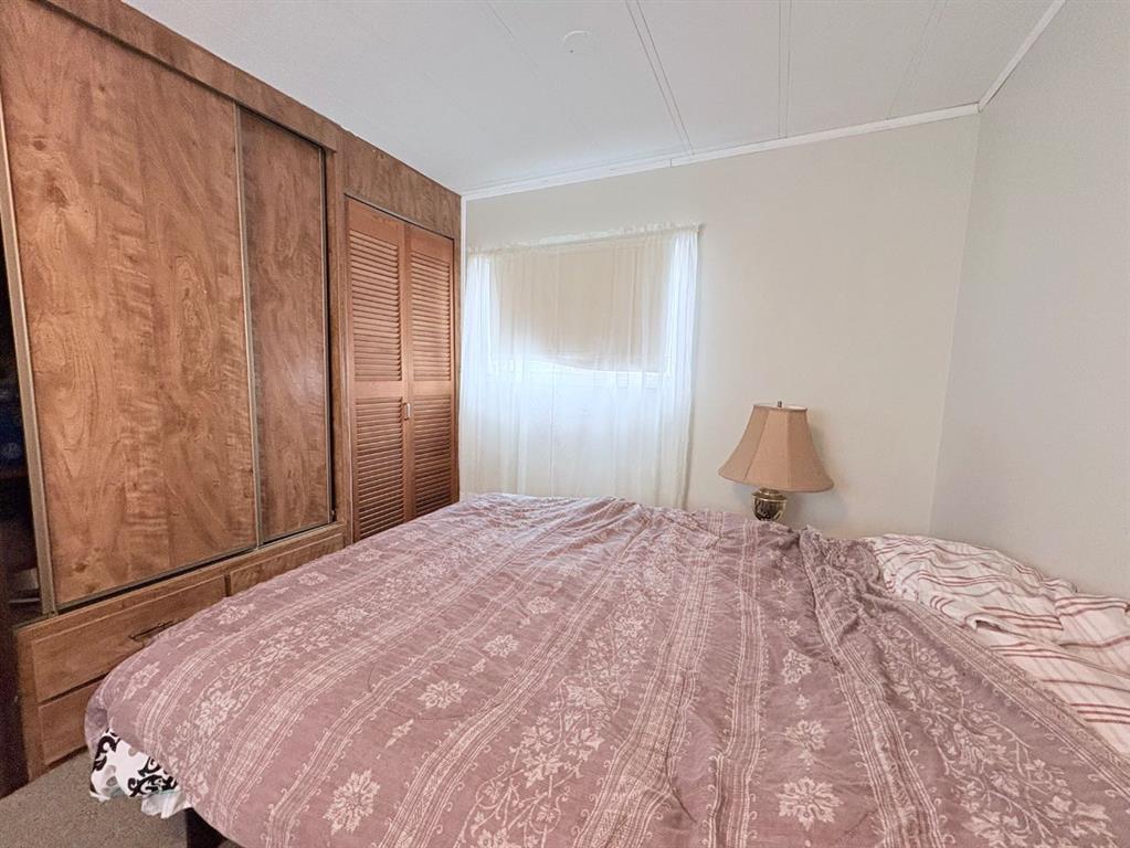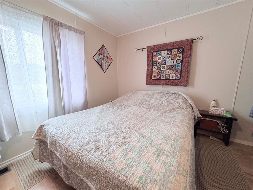 This well maintained 14’ x 70’ mobile home sits on a leased lot with an affordable lot fee of just $400/month, providing an affordable ownership option. Inside, you’ll find a bright open concept kitchen and living area, complemented by updated laminate flooring and plenty of cabinet storage. The home features 2 bedrooms with built in storage and 1 full bathroom with a stand-up shower and a newly installed toilet. Updates including new insulated 5” walls, vinyl frame windows, updated exterior doors, and a durable metal roof. The home is set on blocks with a fully attached undercarriage and insulation, and heat-taped water lines provide peace of mind during colder months. Step outside to enjoy a spacious 10’ x 20’ covered deck and a fully fenced yard, ideal for relaxing or entertaining. There’s also an attached storage shed and a heated porch with additional storage space, offering plenty of room for all your needs. The home includes a hot water tank installed in 2016, along with newer appliances including a refrigerator, stove, dishwasher, and washer. This mobile home offers great value with updates throughout. Contact your local Realtor to book a showing today!