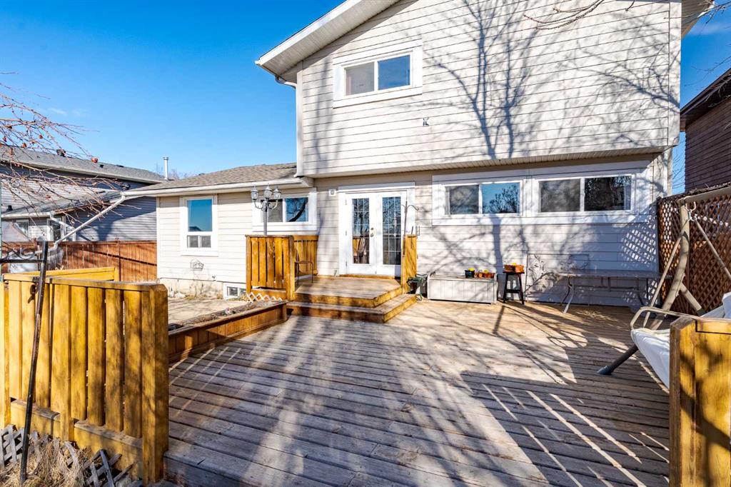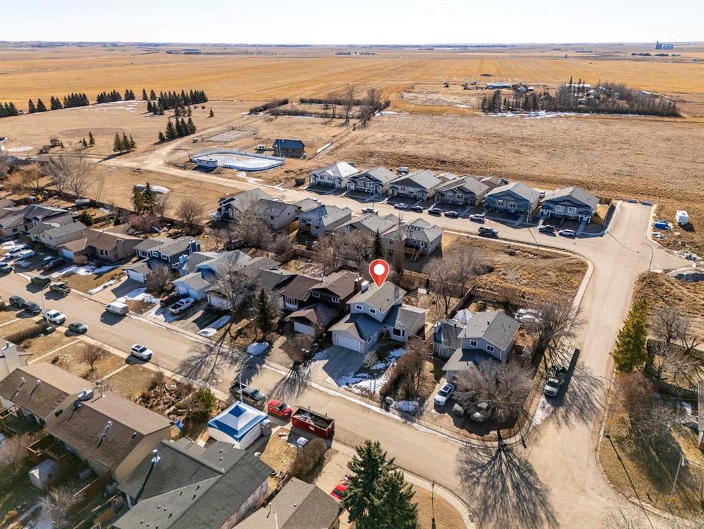 Located at the nearest edge of Irricana, this two storey home offers 1,883 square feet above grade and 2,999 square feet of total living space, set on a large southwest facing lot with mountain views and an abundance of outdoor space. The main floor is expansive and thoughtfully arranged. As you enter, the living room is positioned at the front of the home, creating a welcoming first impression. From there, you transition into a dedicated dining room designed to accommodate family gatherings and formal dinners with ease. The kitchen offers substantial workspace and storage, with clear opportunity for tasteful modernization over time. Just beyond, the family room provides a comfortable, inviting space for everyday living, and has a gas fireplace. Also located on the main floor is a large bedroom, a half bath, and a separate laundry area. The inclusion of a main level bedroom offers meaningful flexibility, whether for guests, multi-generational living, or a private office. Upstairs, there are three bedrooms, including the primary suite. The primary bedroom features a spacious ensuite, while a well-appointed four-piece bathroom serves the additional bedrooms. The basement is partially developed and provides considerable additional square footage. There is excellent potential to further enhance the space, or continue utilizing it for recreation, storage, or hobbies in its current form. Outside, the fully fenced, southwest facing yard is substantial and established. Mountain views contribute to the overall appeal, and the setting feels open and private while remaining within town limits. The Irricana off leash dog park is just a short walk away, without the disruption of backing directly onto it. A double attached garage completes the home. This is a well-maintained property offering scale, flexibility, and long-term potential. The layout is balanced, the lot is impressive, and the overall footprint represents an increasingly rare opportunity in today’s market.