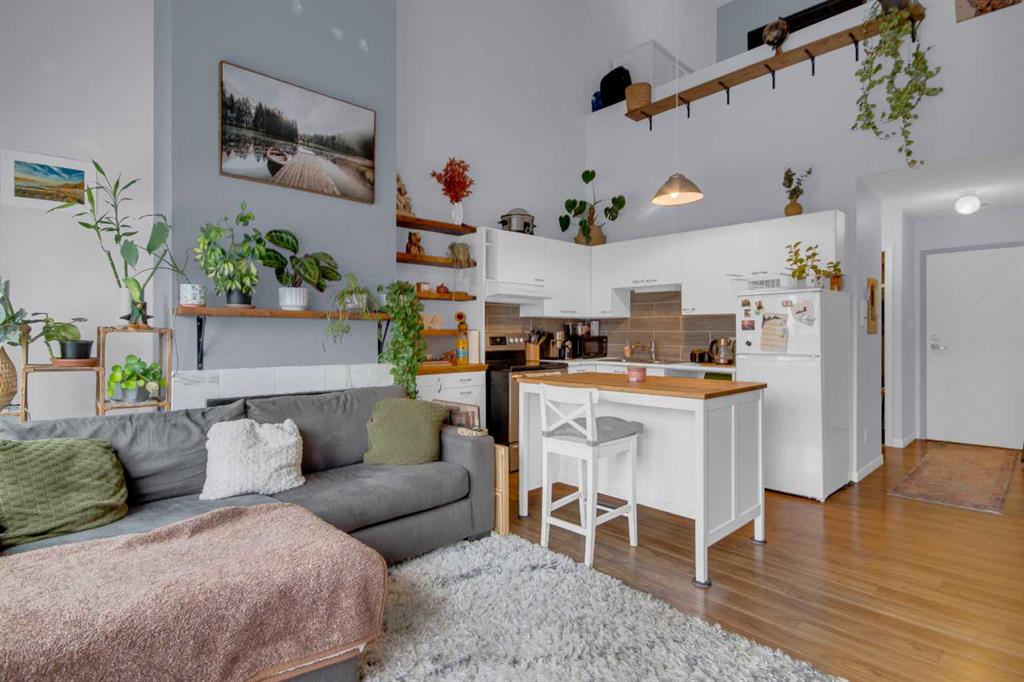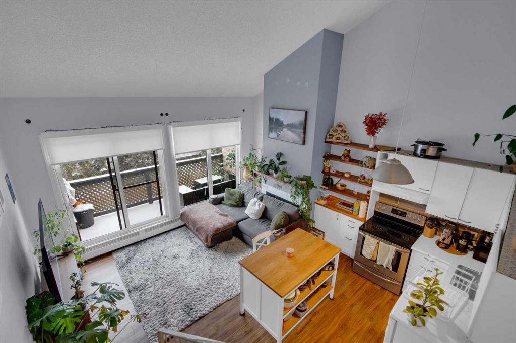 Discover comfortable mountain living in this well-located one bedroom lofted apartment, just a 10 minute walk from downtown Banff. Thoughtfully designed, the home features durable vinyl plank flooring and recently upgraded appliances for easy, low-maintenance living. The bright living space is filled with natural light from large windows, with views that capture glimpses of Mount Rundle and Tunnel Mountain. The living area is perfect for relaxing evenings, complete with a cozy wood burning fireplace, while the lofted bedroom adds separation and character to the space. Practical features include an assigned off-street parking stall, bicycle storage, and a secure locker for all your mountain gear. Whether you’re looking for a full-time home or a long term rental investment, this property offers a functional layout and an unbeatable location in one of Canada’s most iconic mountain towns.