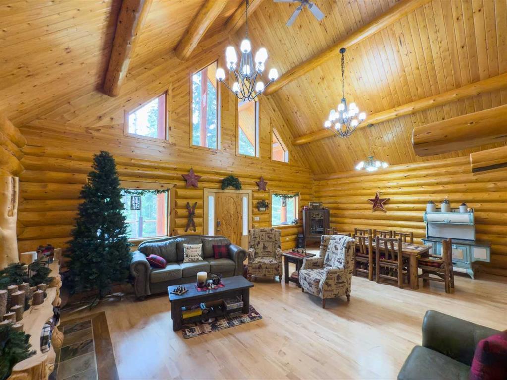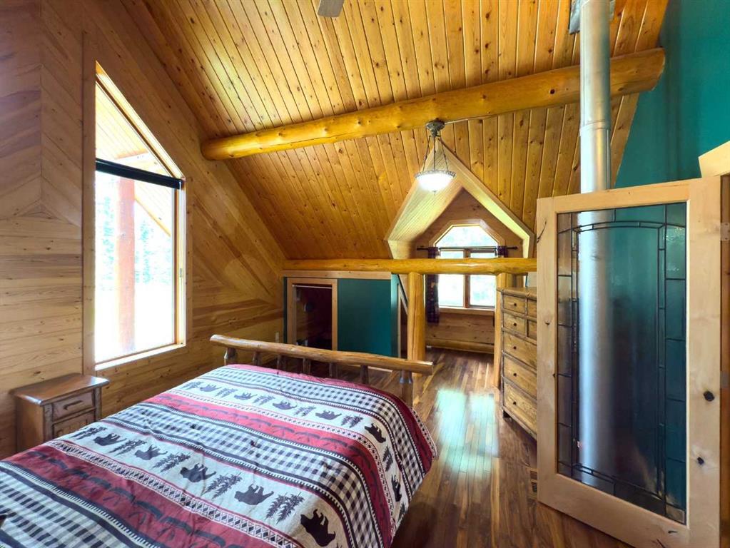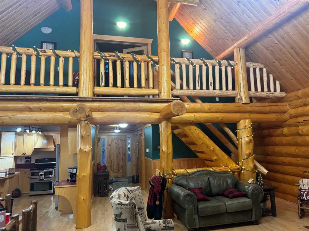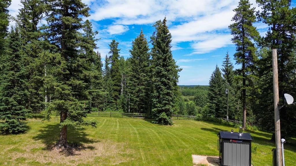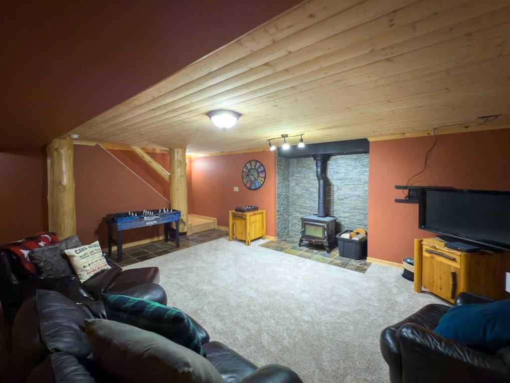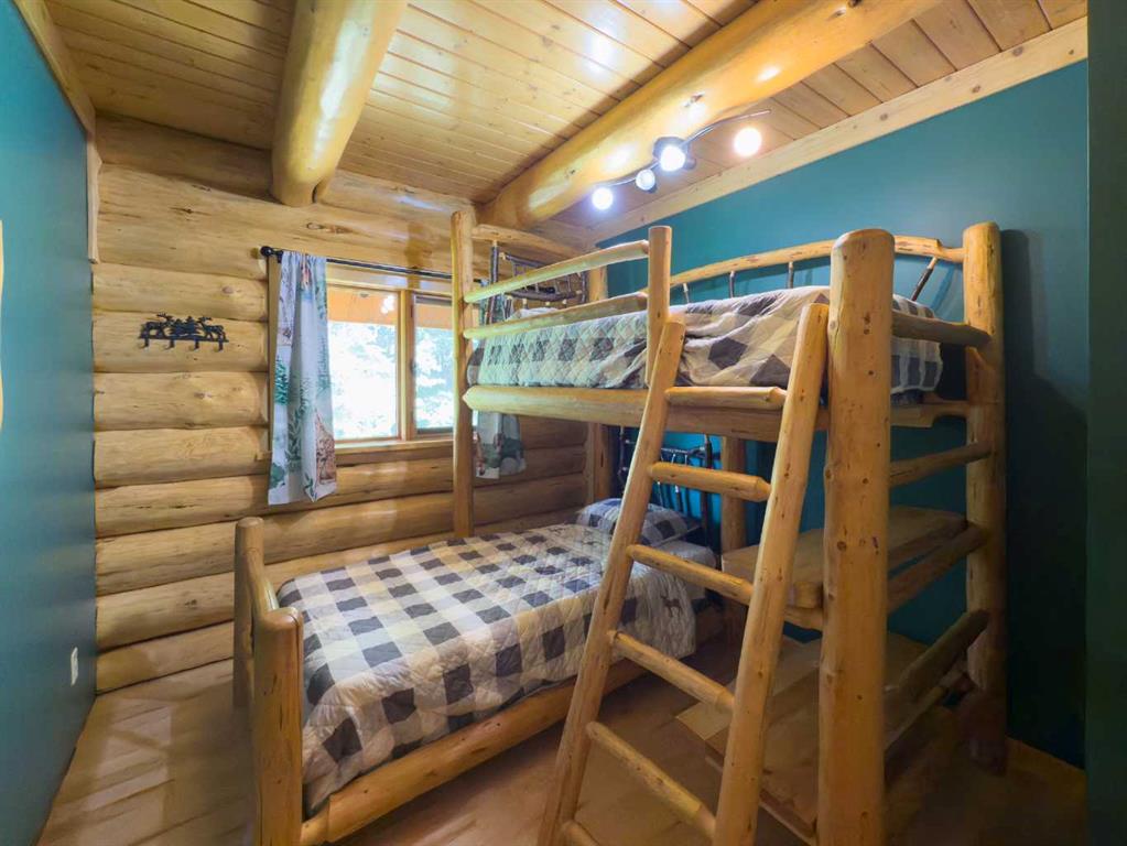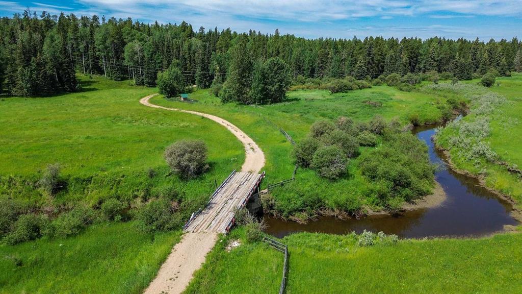 PRIVACY, QUIET SOLITUDE & CONVENIENCE......rarely does one find a property offering all of these!!!! Surrounded by crown land and on a no thru road, this oasis is located approximately 30 kms west of Rocky Mountain House. The private driveway with your own bridge crosses the Chamber Creek that flows through the property, then up the hill to the yard site. The custom built scribed log home offers 1790 square feet of beautiful living area. The main floor offers kitchen, den (currently being used as a bedroom), 3 piece bathroom, storage/boot room conveniently located just inside the main front entrance and a spacious great room with vaulted ceilings and maple hardwood floors. The upper level offers the primary bedroom with walnut flooring, a walk in closet and a 4 piece ensuite complete with free standing bath tub for those relaxing bubble bath soaks. The lower level has 3 bedrooms, family room with wood burning stove, the laundry room, 4 piece bathroom and mechanical room. This beautiful home has covered decks front and back for enjoying the fully landscaped yard with cedar fencing and retaining walls of limestone quarry rocks. The wood fired boiler provides heat for the house, with a propane furnace back up heat source. The 24' x 30' log barn with metal roof is complete with 220 electrical power, box stalls, tie stalls, tack room and upper loft...just waiting for your equine friends!! There are three stock waterers, corrals, a 90' x 30" calving shed and two water wells on the property ...all set up for your livestock. And the grass...it is belly deep and lush!!! Words truly cannot describe this property...you will not be disappointed!! Book your private viewing today!!