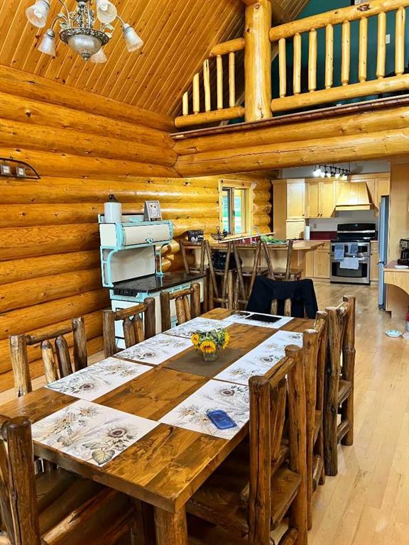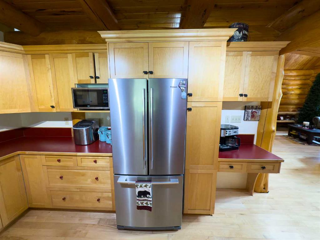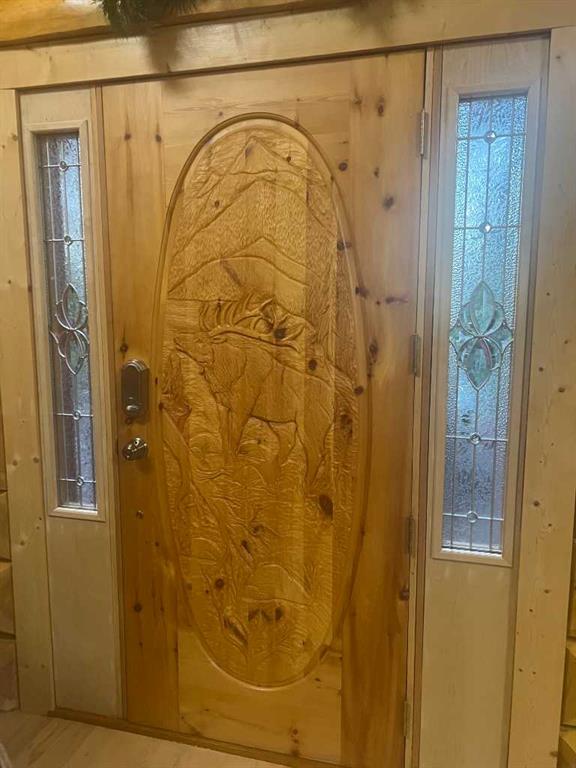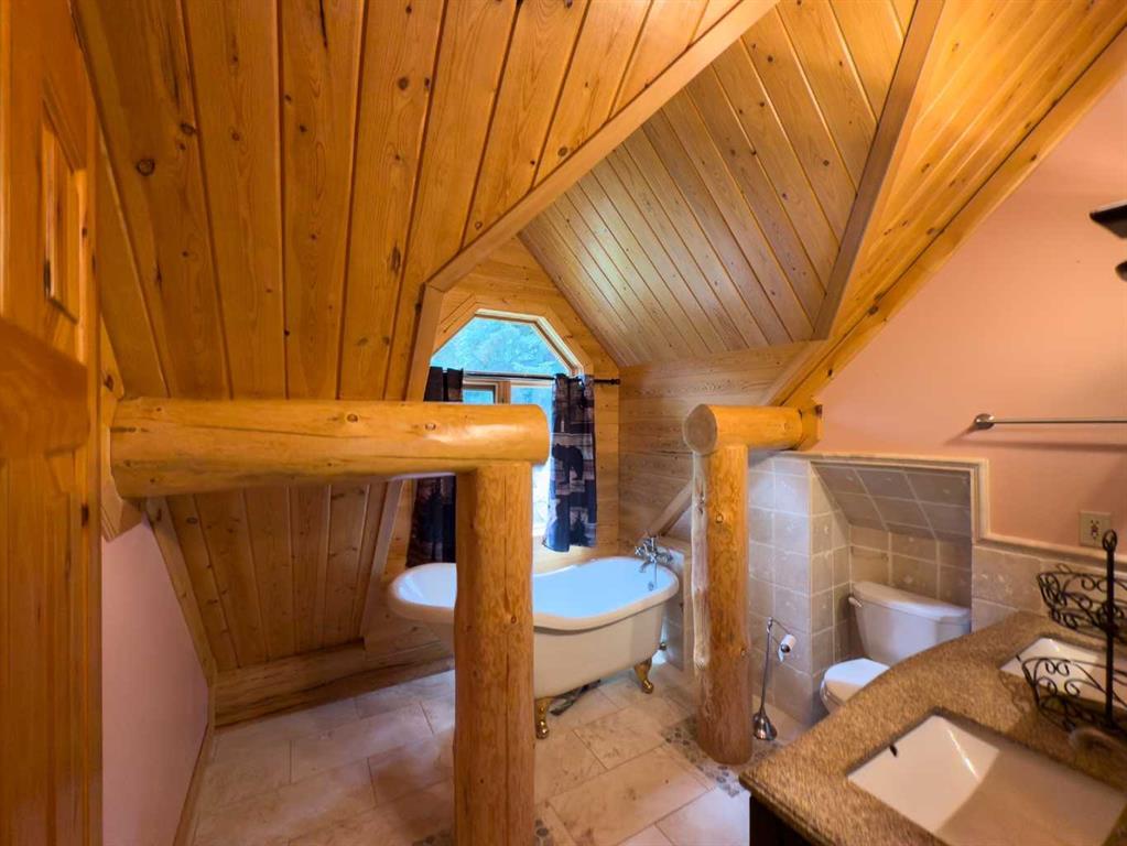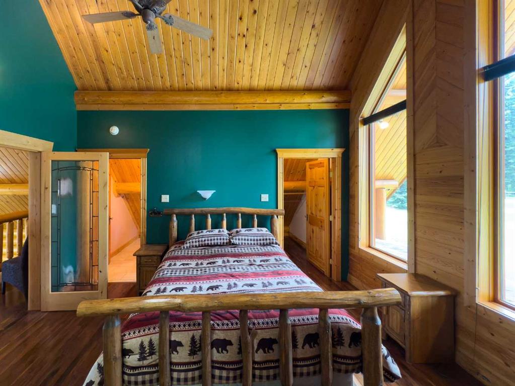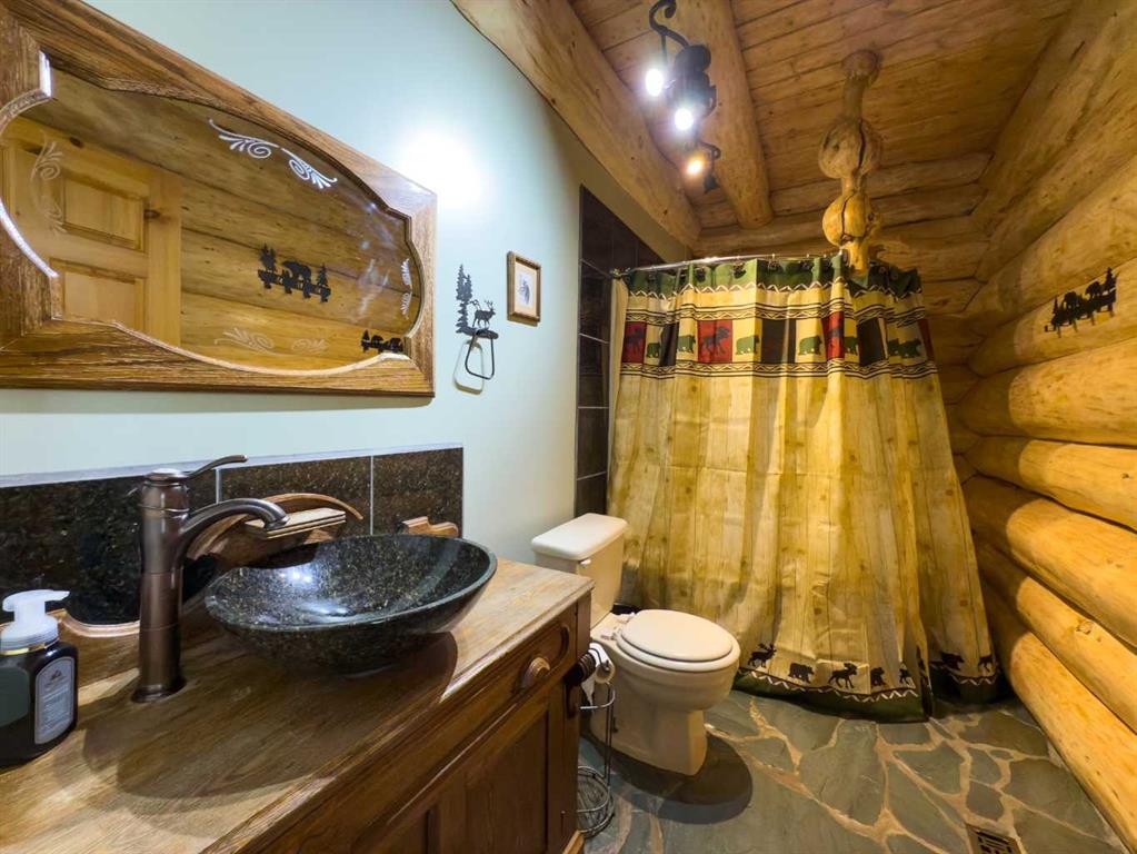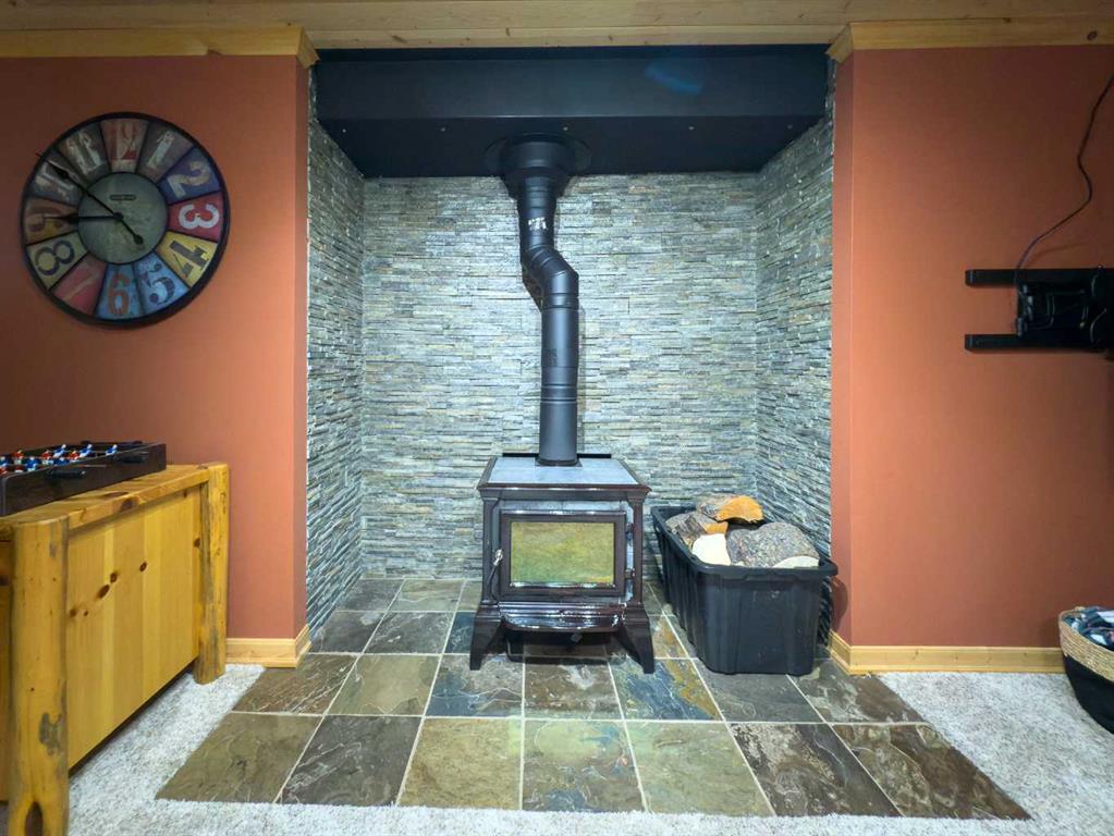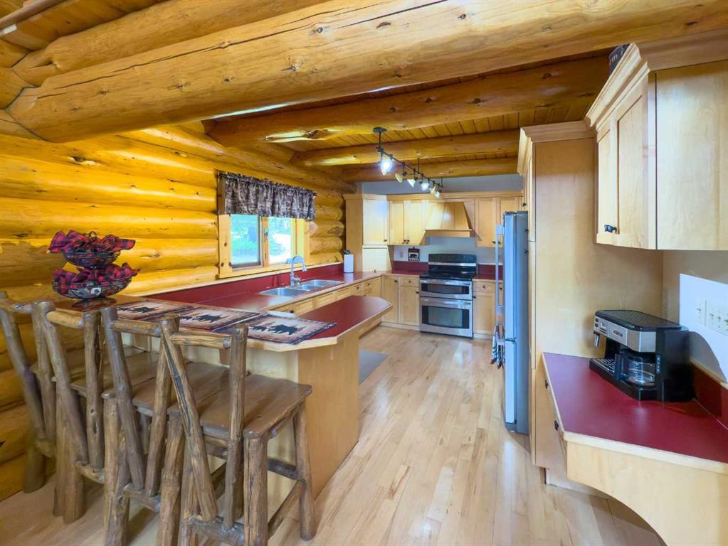 PRIVACY, QUIET SOLITUDE & CONVENIENCE......rarely does one find a property offering all of these!!!! Surrounded by crown land and on a no thru road, this oasis is located approximately 30 kms west of Rocky Mountain House. The private driveway with your own bridge crosses the Chamber Creek that flows through the property, then up the hill to the yard site. The custom built scribed log home offers 1790 square feet of beautiful living area. The main floor offers kitchen, den (currently being used as a bedroom), 3 piece bathroom, storage/boot room conveniently located just inside the main front entrance and a spacious great room with vaulted ceilings and maple hardwood floors. The upper level offers the primary bedroom with walnut flooring, a walk in closet and a 4 piece ensuite complete with free standing bath tub for those relaxing bubble bath soaks. The lower level has 3 bedrooms, family room with wood burning stove, the laundry room, 4 piece bathroom and mechanical room. This beautiful home has covered decks front and back for enjoying the fully landscaped yard with cedar fencing and retaining walls of limestone quarry rocks. The wood fired boiler provides heat for the house, with a propane furnace back up heat source. The 24' x 30' log barn with metal roof is complete with 220 electrical power, box stalls, tie stalls, tack room and upper loft...just waiting for your equine friends!! There are three stock waterers, corrals, a 90' x 30" calving shed and two water wells on the property ...all set up for your livestock. And the grass...it is belly deep and lush!!! Words truly cannot describe this property...you will not be disappointed!! Book your private viewing today!!