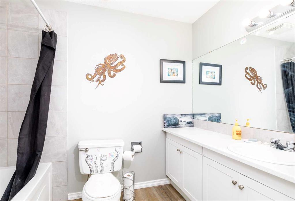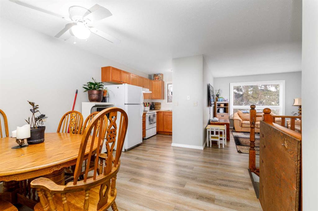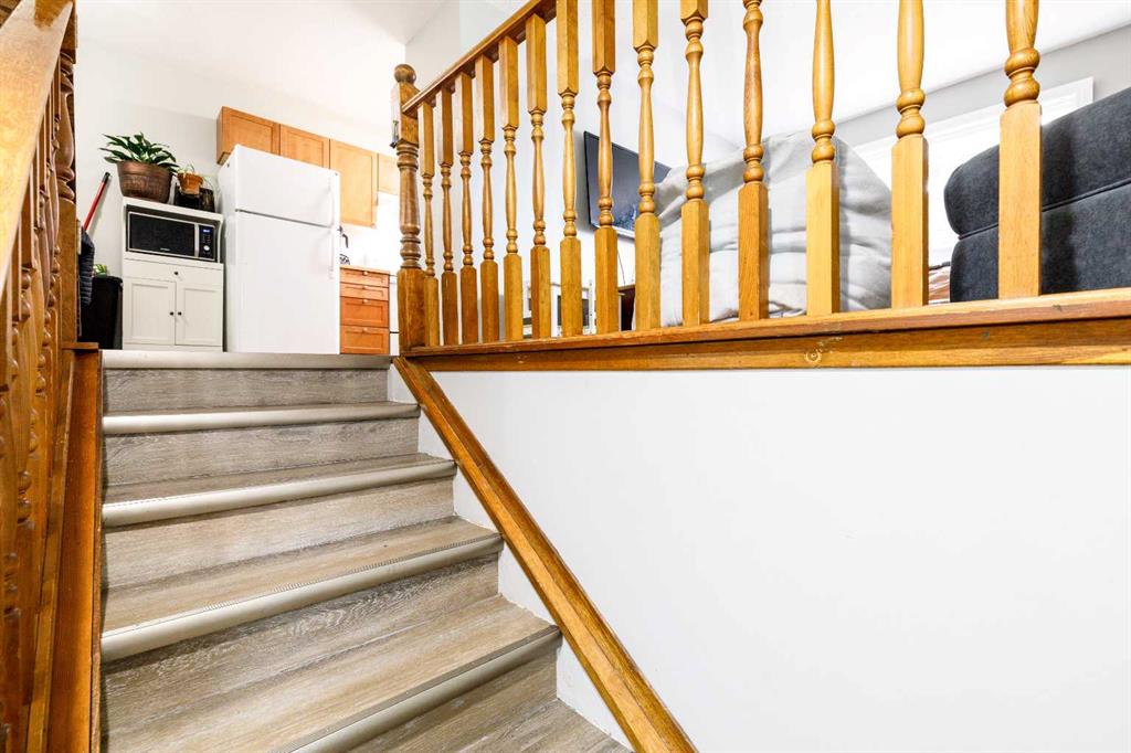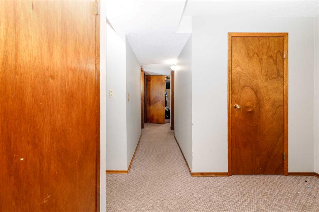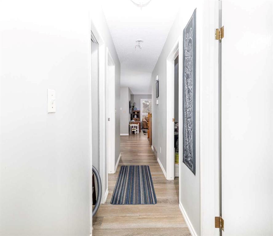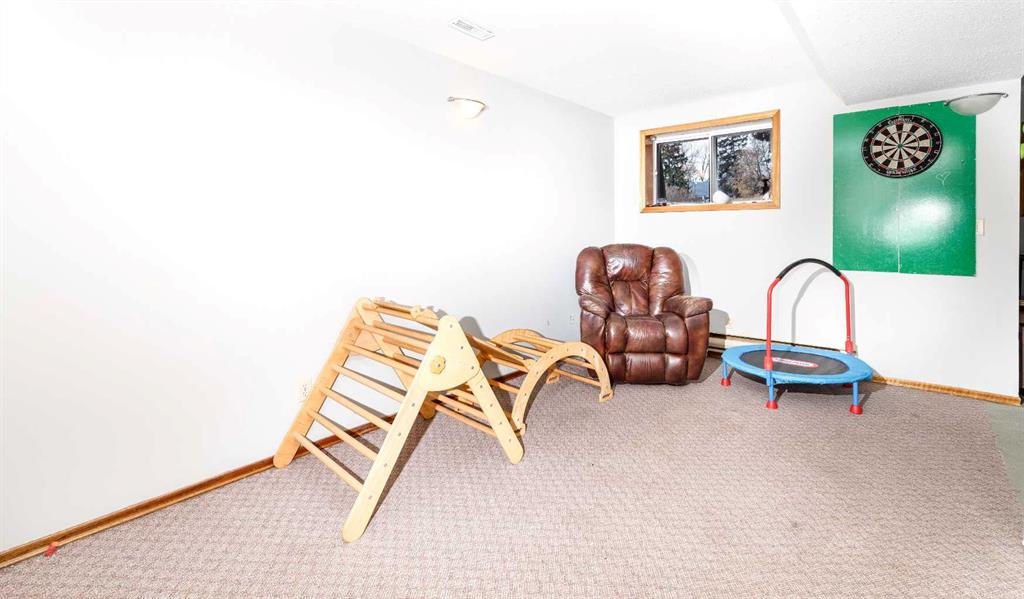 Discover incredible value in this spacious five-bedroom, two-bathroom half-duplex, perfectly positioned for families or investors seeking both comfort and affordability. The main level greets you with a bright, expansive living room anchored by an upgraded vinyl window, flowing seamlessly into a generous dining area and a kitchen featuring cabinetry and countertops updated in 2012. Durable vinyl flooring and modern baseboards run throughout this level, which hosts three well-appointed bedrooms and a full four-piece bathroom. For those who enjoy a morning coffee or a quiet evening outdoors, one of the main-floor bedrooms offers direct access to a charming, covered deck. The living space extends into the fully finished basement, which provides two additional bedrooms equipped with code-compliant exit windows for your peace of mind. This lower level is rounded out by a three-piece bathroom, a cozy family room, and a versatile playroom that can easily adapt to your lifestyle needs. Significant mechanical attention has been paid to the home as well, including a major electrical overhaul in the summer of 2021 to modernize the power supply and ensure long-term reliability. The exterior of the property is just as impressive, featuring a large, fully fenced backyard that serves as a private oasis with mature bushes, lush vegetation, and thoughtful landscaping. Situated in a prime location within walking distance to the G.H. Dawe Community Centre, local schools, parks, and major shopping hubs, this home offers the perfect blend of convenience and quiet residential living. All ready for its new owner!