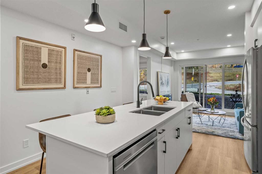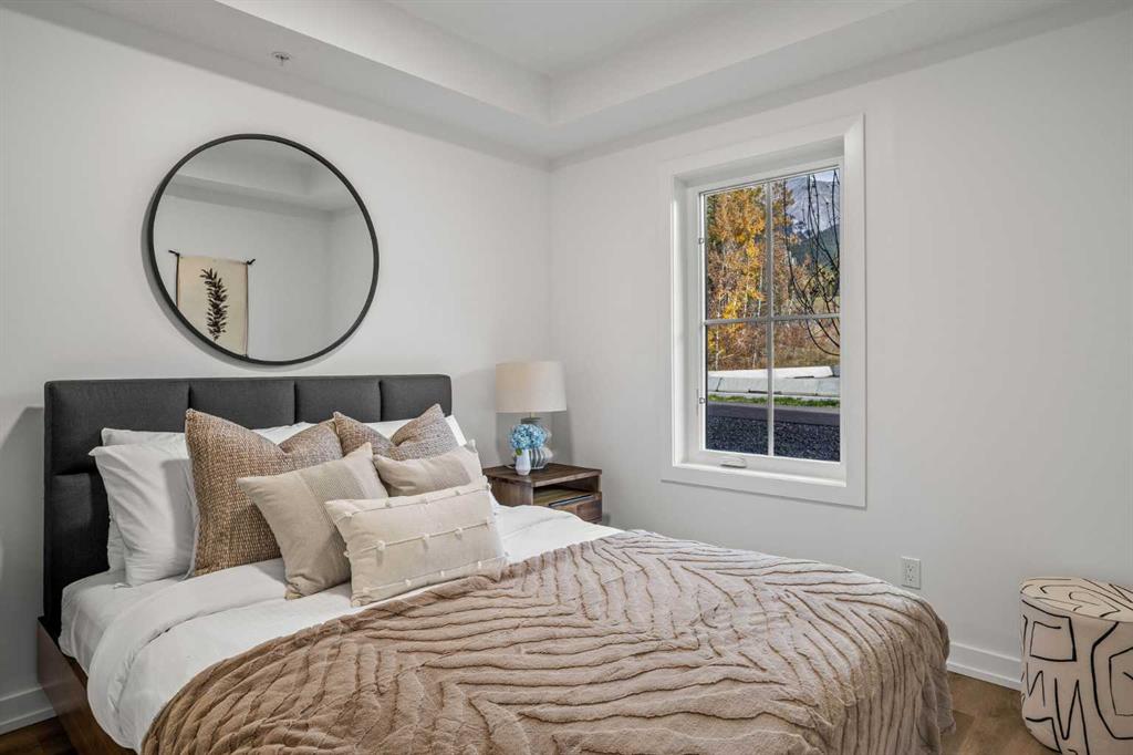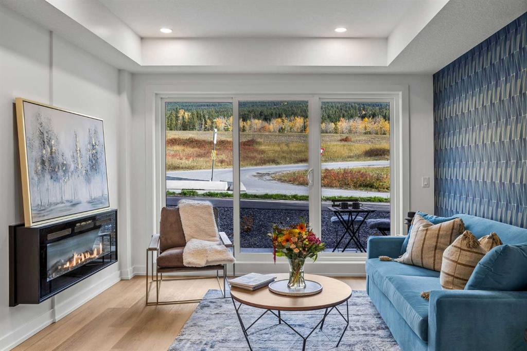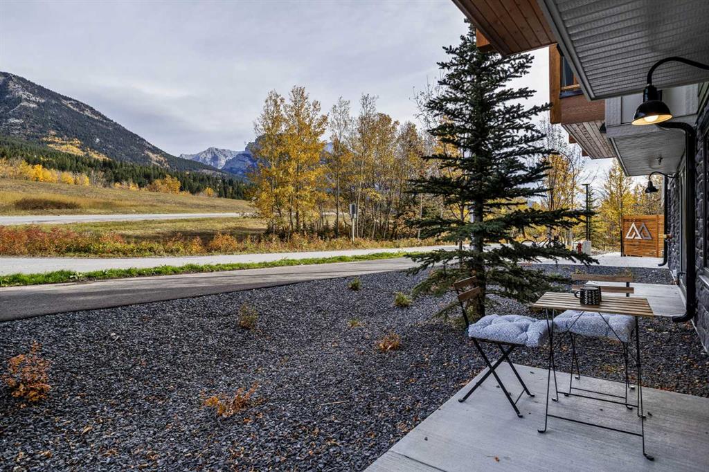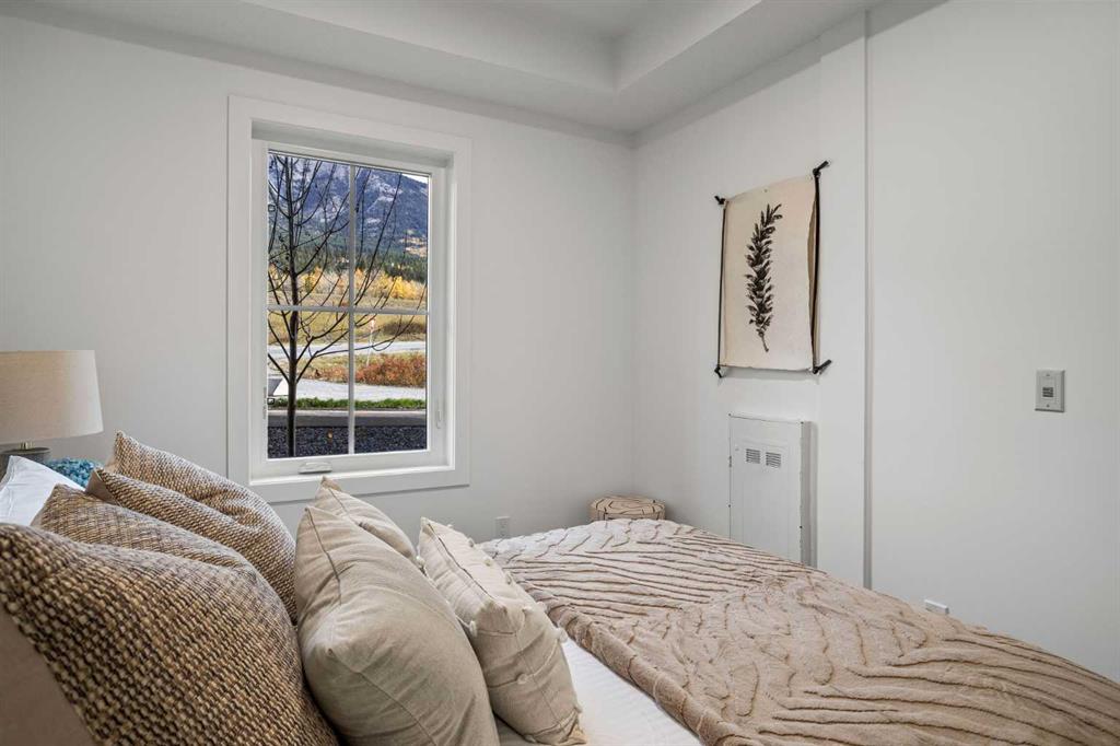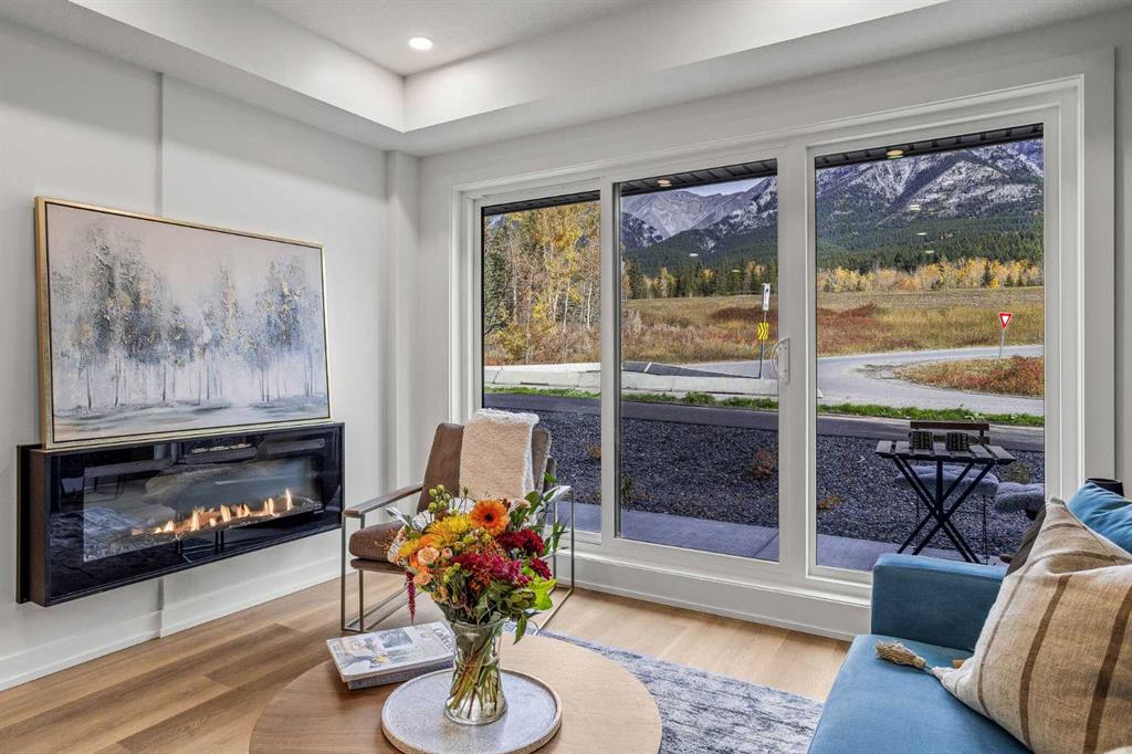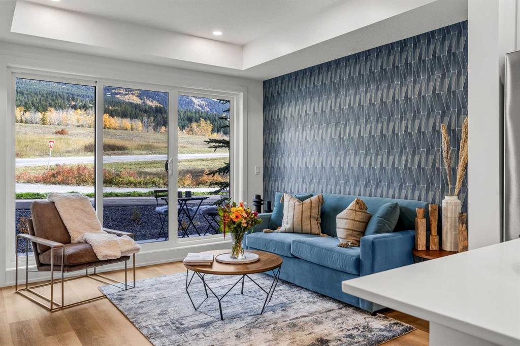 Wake up to breathtaking Rocky Mountain views in this beautifully designed one-bedroom retreat, perfectly positioned in a peaceful mountain setting. Thoughtfully designed with an open-concept layout, the home features a warm and inviting living space with large windows that fill the home with natural light. The living room offers the perfect place to unwind beside the cozy fireplace after a day exploring the mountains, while a convenient sofa bed provides additional sleeping space for guests. The modern kitchen is both stylish and functional, featuring sleek finishes, stainless steel appliances, and a spacious island. Guests will enjoy exclusive access to shared rooftop hot tubs with stunning northeastern mountain views along with a relaxing sauna, providing the ultimate alpine retreat. This unit comes fully furnished and turn-key ready, making it an incredible opportunity to capture Canmore's lucrative short term rental market. The list price includes GST. Consult an Accountant to discuss deferral options.