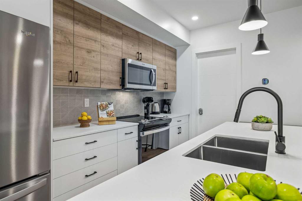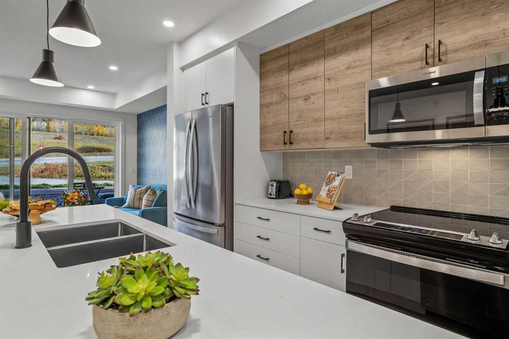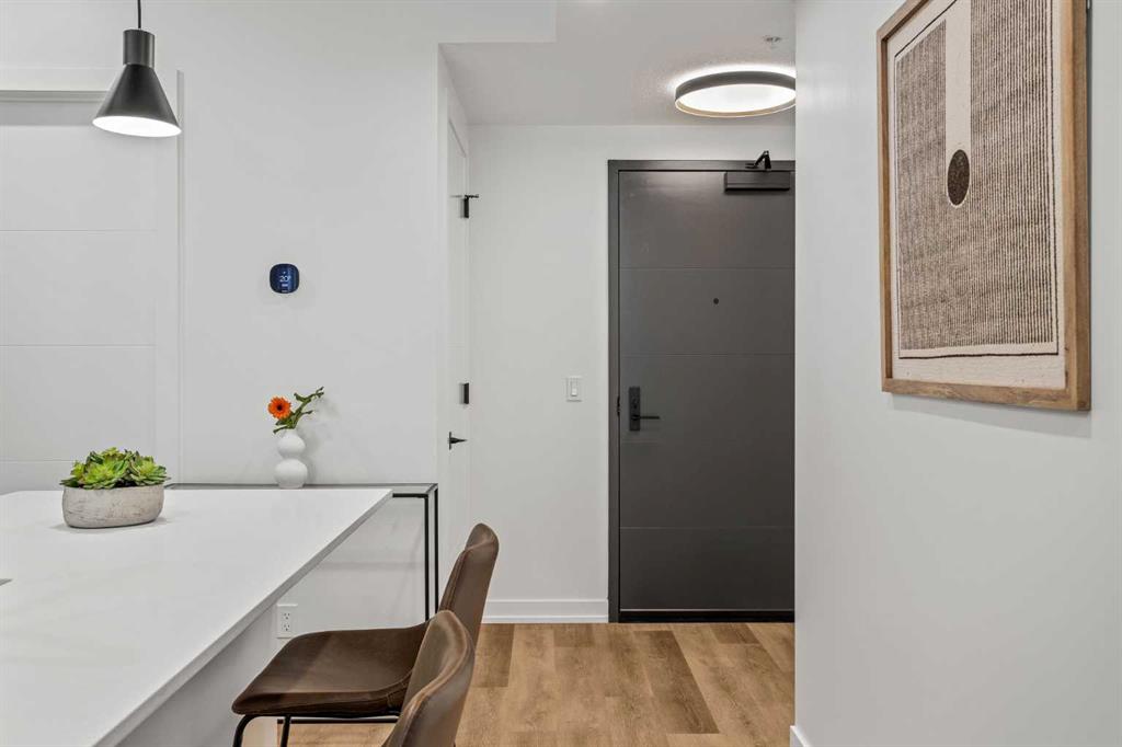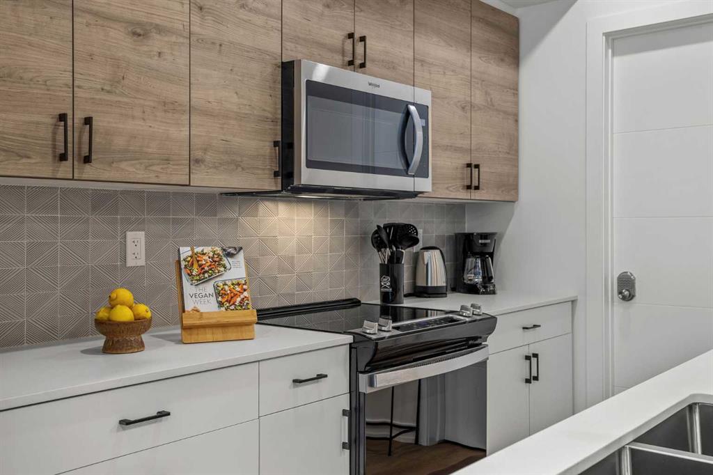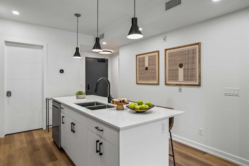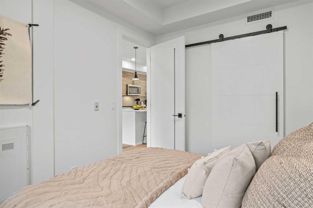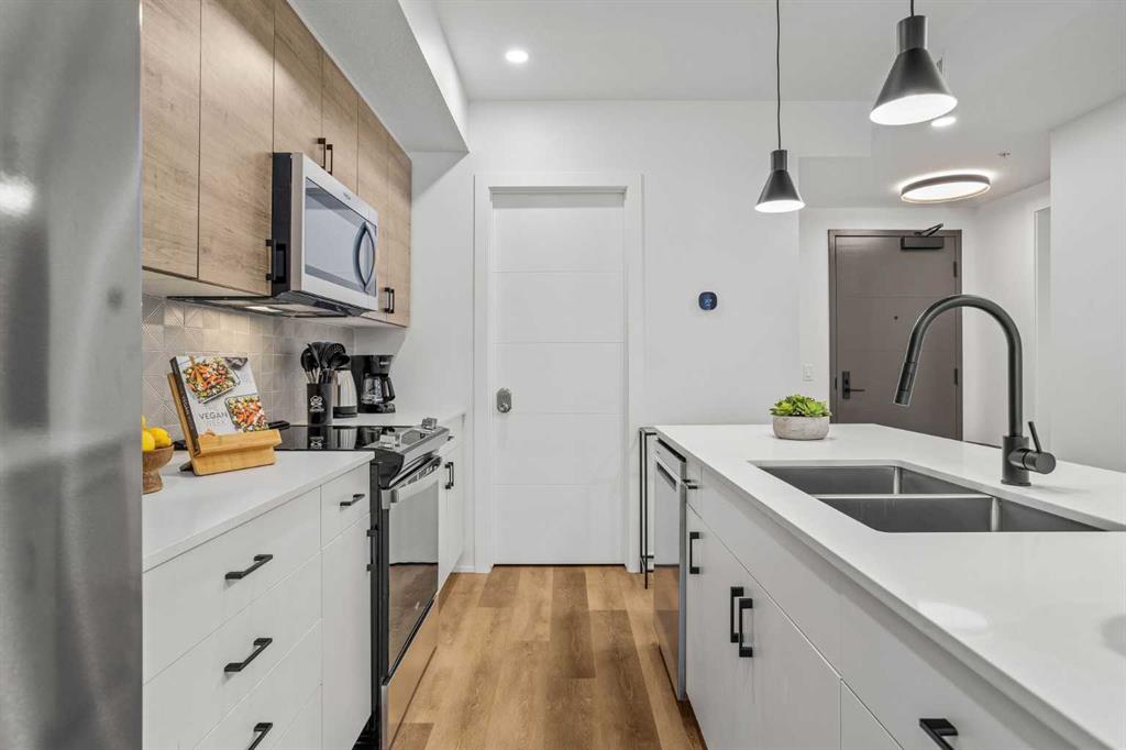 Wake up to breathtaking Rocky Mountain views in this beautifully designed one-bedroom retreat, perfectly positioned in a peaceful mountain setting. Thoughtfully designed with an open-concept layout, the home features a warm and inviting living space with large windows that fill the home with natural light. The living room offers the perfect place to unwind beside the cozy fireplace after a day exploring the mountains, while a convenient sofa bed provides additional sleeping space for guests. The modern kitchen is both stylish and functional, featuring sleek finishes, stainless steel appliances, and a spacious island. Guests will enjoy exclusive access to shared rooftop hot tubs with stunning northeastern mountain views along with a relaxing sauna, providing the ultimate alpine retreat. This unit comes fully furnished and turn-key ready, making it an incredible opportunity to capture Canmore's lucrative short term rental market. The list price includes GST. Consult an Accountant to discuss deferral options.