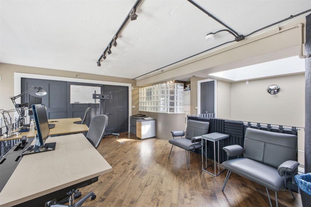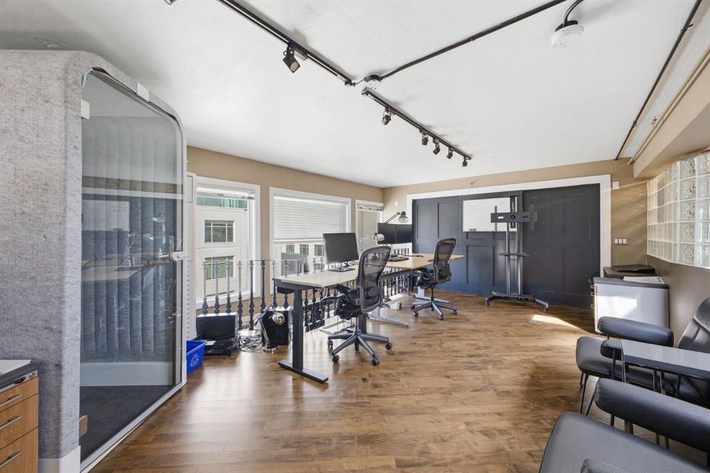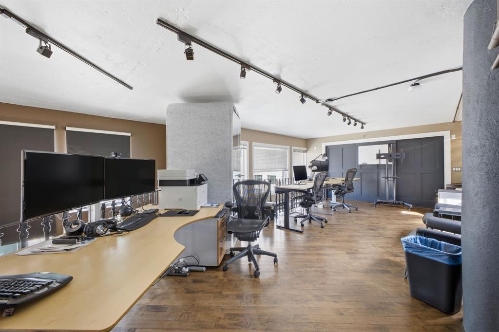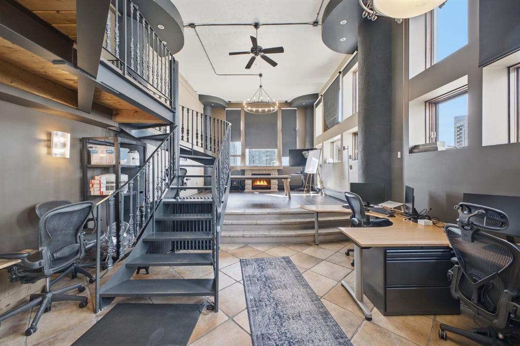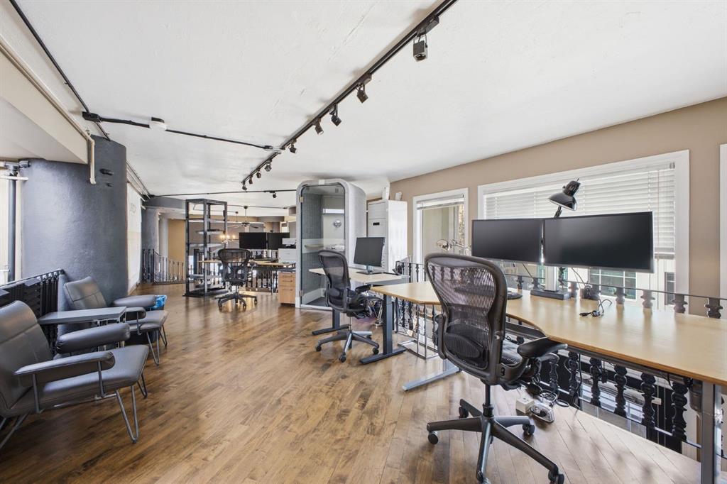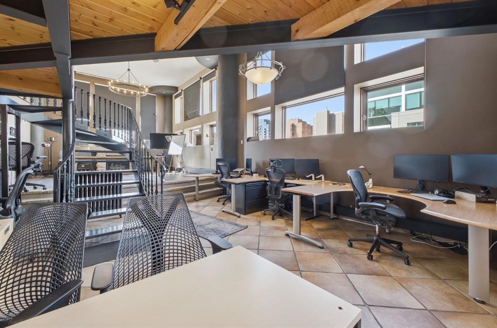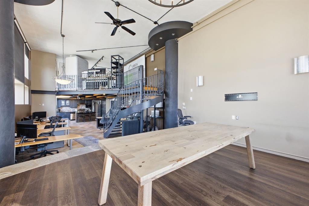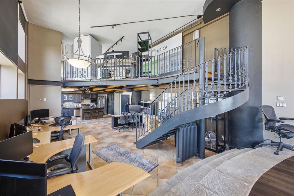 Have you ever imagined living or working in Manhattan? This loft delivers that same urban energy—right in the heart of Calgary. With zoning that allows both residential and commercial use, you can call it home, office, or a dynamic combination of the two. Currently utilized as office space, this impressive two storey unit offers soaring 20’ ceilings & nearly 1,600 sq ft of living space that can be re imagined into a stunning loft residence. The lower level features refinished hardwood flooring, and a dramatic chandelier. This space flows into an expansive open area ideal for a generous living/dining configuration. The kitchen is well appointed with granite countertops, an island with eating bar, stainless steel appliances, ample cabinetry, and a built in hutch for additional storage. A 3 piece bath and abundant storage complete the main level. A sweeping curved staircase leads to the upper floor, where you’ll find a spacious open loft with room for a large bedroom and office setup, along with a 4 piece bath. Units 301 and 303 are being sold separately; however, if purchased together, they can be seamlessly connected to create a truly spectacular space. If only one unit is purchased, the access point between them will be professionally sealed. Additional highlights include in suite laundry, a west facing balcony, one assigned parking stall and a large assigned storage locker. Set amid Calgary’s best restaurants, cafés, and entertainment—and just a short walk to the downtown core—this location offers the ultimate in urban convenience and vibrancy.