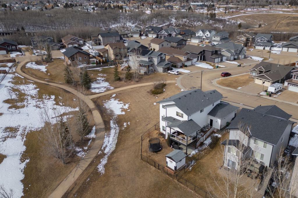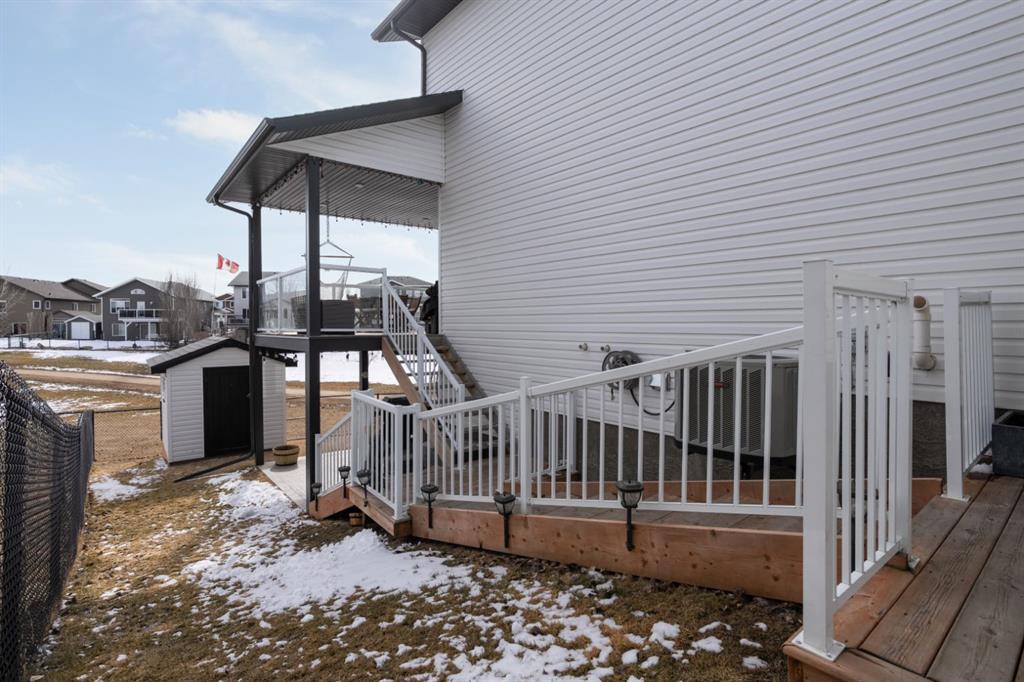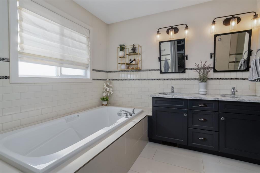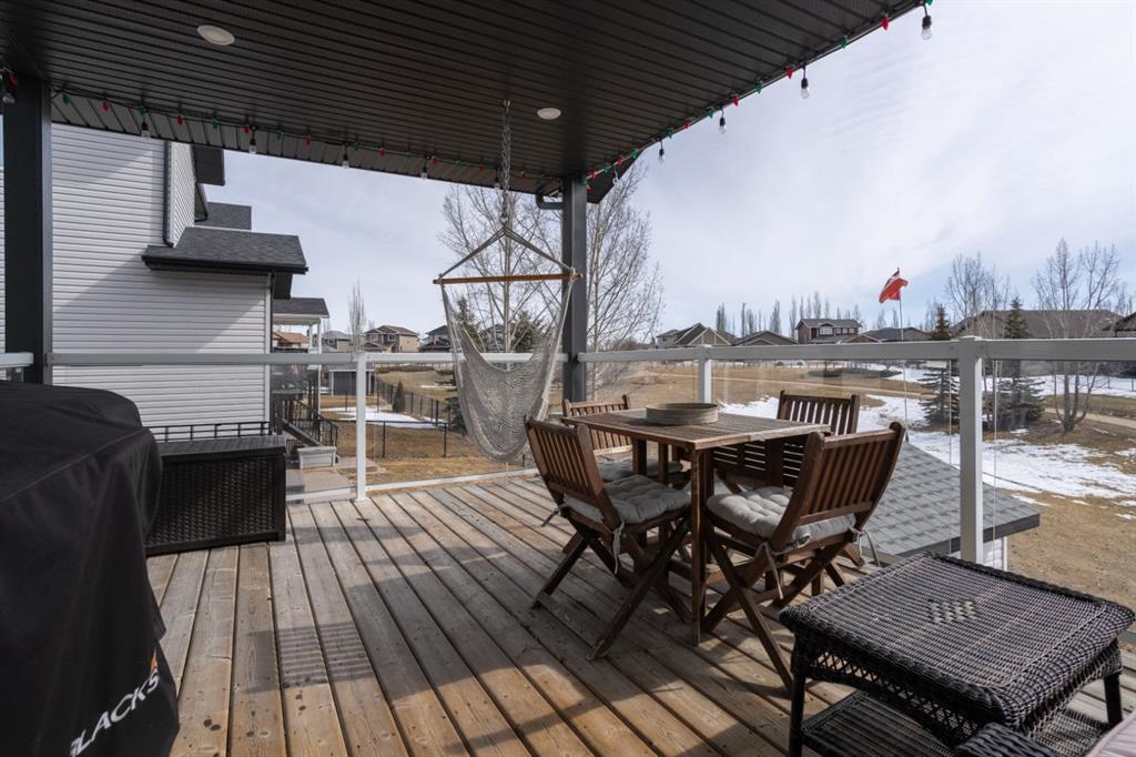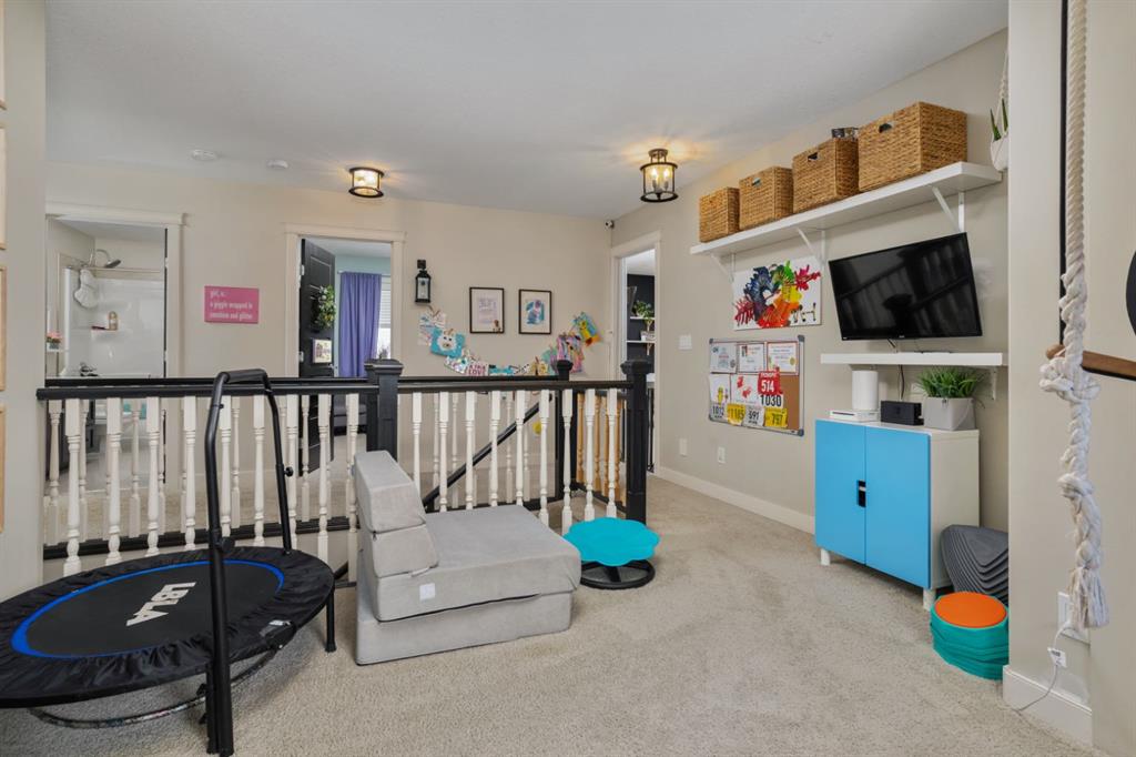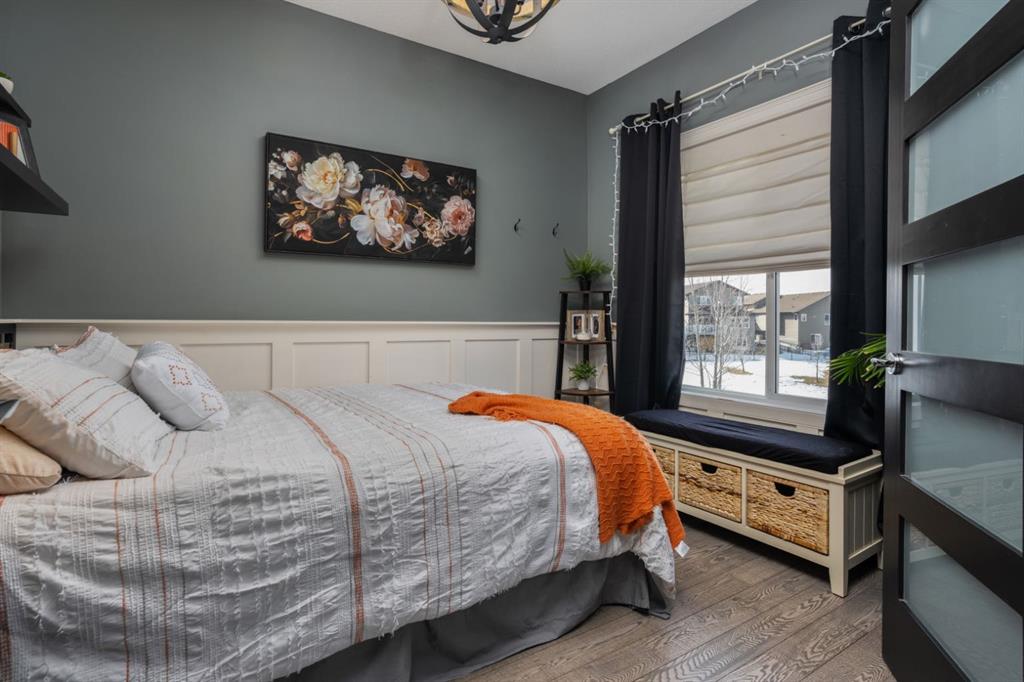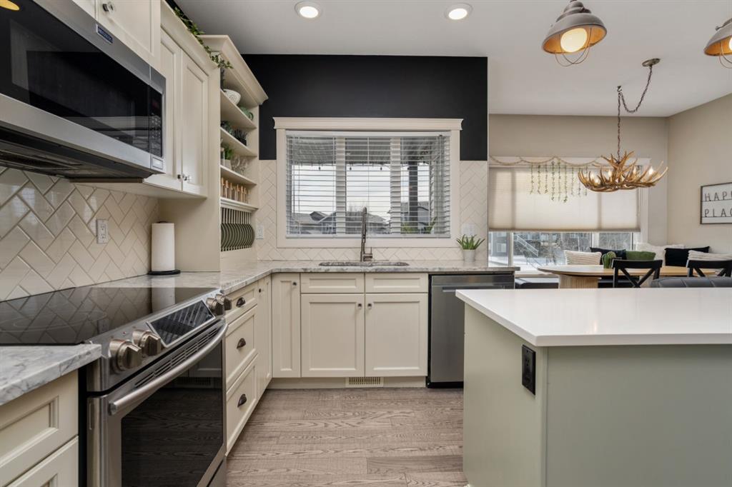 Exceptional and stunning 2,244 sq ft custom walkout two-story home, perfectly positioned backing onto green space, a nearby park, and scenic walking trails. Ideal for nature lovers and outdoor enthusiasts. Step inside to warm hardwood floors flowing seamlessly throughout the main level, elegant wainscoting, and a sophisticated flex room framed by frosted French doors-perfect for a home office, den, or quiet retreat. The heart of the home is the remarkable kitchen, boasting granite and quartz countertops, maple cabinets with soft-close drawers, a generous island, stainless steel appliances, and an exceptional walk-through pantry for effortless organization and entertaining. Adjacent, a unique coffee bar adds character and functionality, flowing into a cozy living room and a bright dining area with garden door opening to your covered deck-ideal for year-round outdoor enjoyment. Upstairs, retreat to an impressive primary suite featuring a luxurious 5-piece ensuite with heated floors, dual sinks, a spacious walk-in shower, deep soaker tub, makeup vanity, and an organized walk-in closet. A fun filled bonus room equipped with activity equipment will delight the kids and create endless play possibilities. Three additional spacious bedrooms, a 4-piece bath, and a convenient laundry room with ample cabinetry and workspace complete the upper level. The fully developed walkout basement offers independent living at its finest. Thoughtfully reconfigured by removing the stairs for a seamless, private floor plan. It includes a beautiful second kitchen with lovely cabinetry, quartz counters, stainless steel appliances, and an island. A bright family room anchored by an electric fireplace; a large primary bedroom with walk-in closet; a spare bedroom with 2-piece ensuite; dedicated laundry; and an additional 4-piece bath perfect for extended family or guests. Additional highlights include a spacious heated triple car garage with dividing wall, air conditioning, unique light fixtures, granite counters in all upper floor bathrooms, and thoughtful details throughout. This one-of-a-kind residence combines timeless craftsmanship, modern luxury, and unbeatable outdoor access!