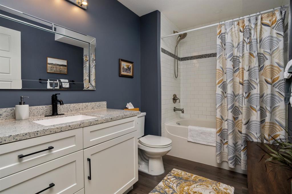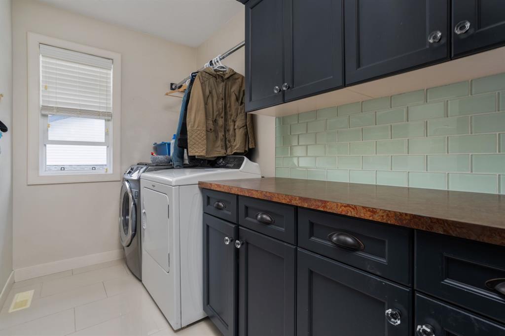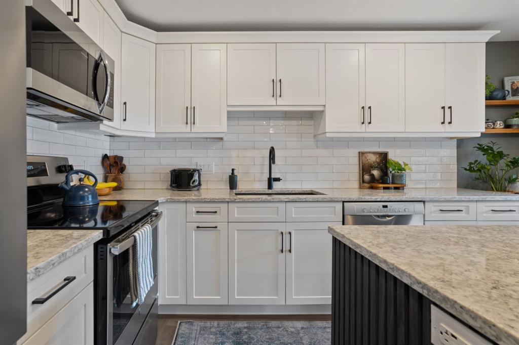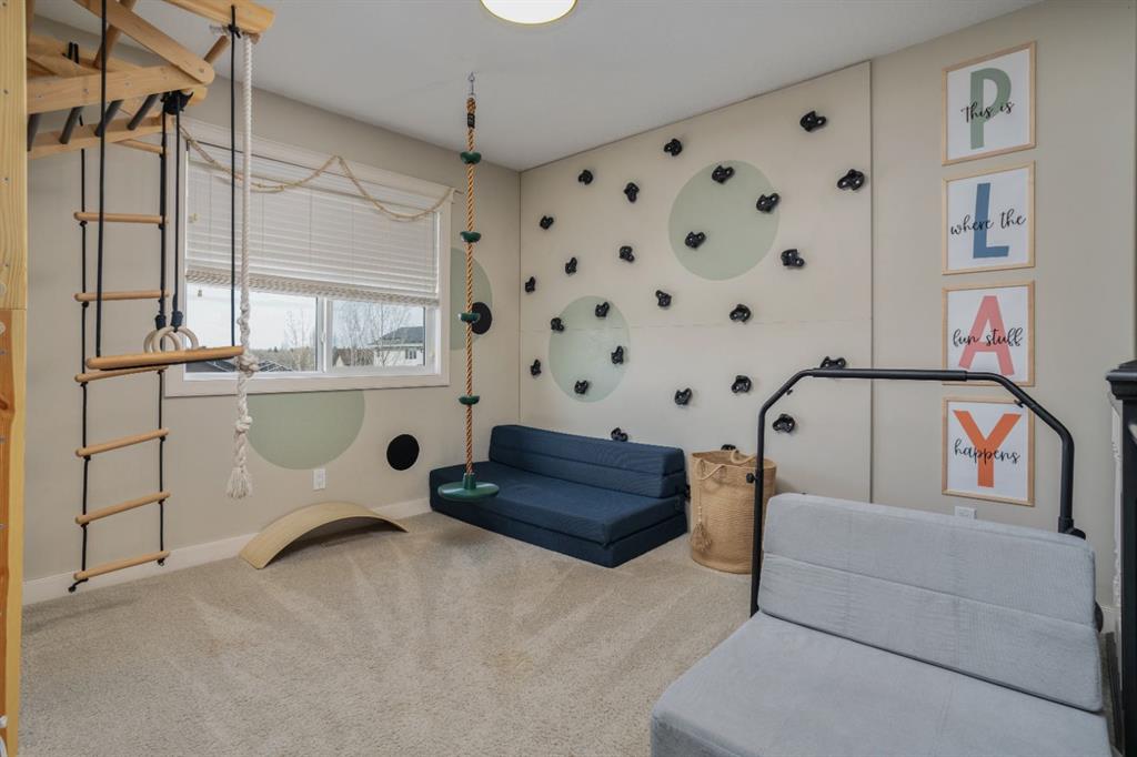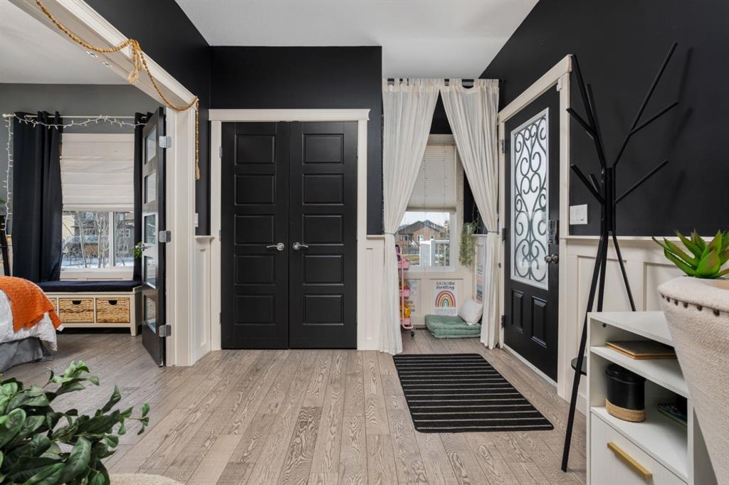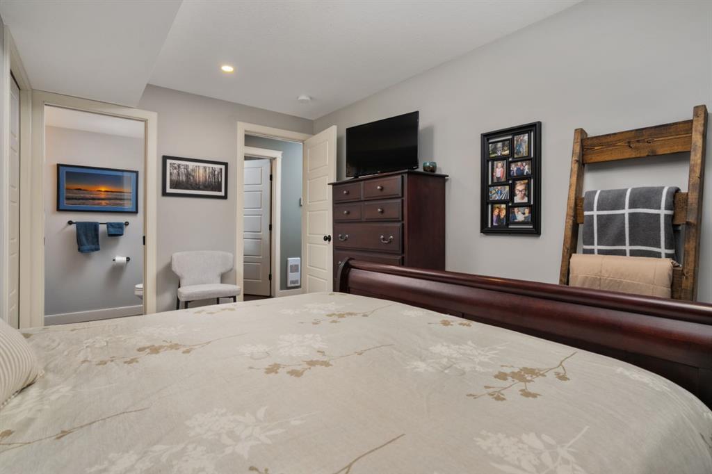 Exceptional and stunning 2,244 sq ft custom walkout two-story home, perfectly positioned backing onto green space, a nearby park, and scenic walking trails. Ideal for nature lovers and outdoor enthusiasts. Step inside to warm hardwood floors flowing seamlessly throughout the main level, elegant wainscoting, and a sophisticated flex room framed by frosted French doors-perfect for a home office, den, or quiet retreat. The heart of the home is the remarkable kitchen, boasting granite and quartz countertops, maple cabinets with soft-close drawers, a generous island, stainless steel appliances, and an exceptional walk-through pantry for effortless organization and entertaining. Adjacent, a unique coffee bar adds character and functionality, flowing into a cozy living room and a bright dining area with garden door opening to your covered deck-ideal for year-round outdoor enjoyment. Upstairs, retreat to an impressive primary suite featuring a luxurious 5-piece ensuite with heated floors, dual sinks, a spacious walk-in shower, deep soaker tub, makeup vanity, and an organized walk-in closet. A fun filled bonus room equipped with activity equipment will delight the kids and create endless play possibilities. Three additional spacious bedrooms, a 4-piece bath, and a convenient laundry room with ample cabinetry and workspace complete the upper level. The fully developed walkout basement offers independent living at its finest. Thoughtfully reconfigured by removing the stairs for a seamless, private floor plan. It includes a beautiful second kitchen with lovely cabinetry, quartz counters, stainless steel appliances, and an island. A bright family room anchored by an electric fireplace; a large primary bedroom with walk-in closet; a spare bedroom with 2-piece ensuite; dedicated laundry; and an additional 4-piece bath perfect for extended family or guests. Additional highlights include a spacious heated triple car garage with dividing wall, air conditioning, unique light fixtures, granite counters in all upper floor bathrooms, and thoughtful details throughout. This one-of-a-kind residence combines timeless craftsmanship, modern luxury, and unbeatable outdoor access!
