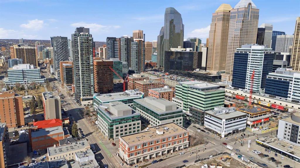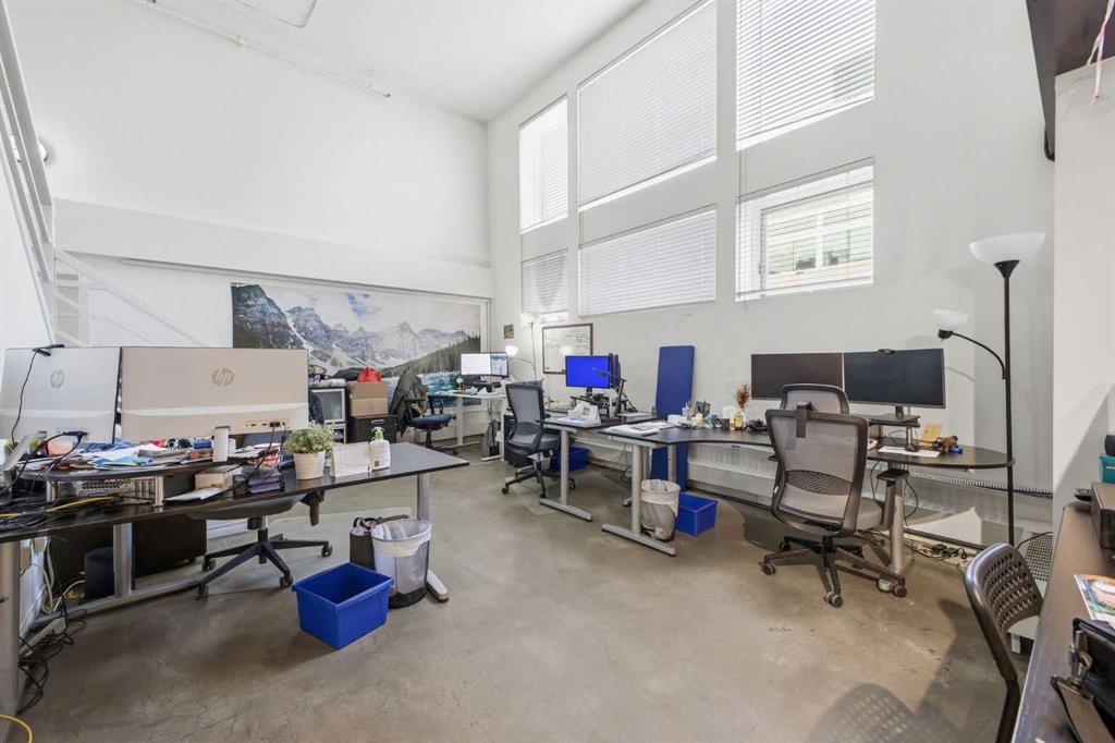 Have you ever dreamed of living or working in Manhattan? This is Calgary’s answer to that iconic urban lifestyle. With flexible zoning that permits both residential and commercial use, this exceptional two storey loft can be your home, your office, or a seamless blend of both. Currently configured as office space, the unit offers soaring 16’ ceilings and over 1,200 sq ft of living space that can easily be reimagined into a sophisticated loft residence. The main level features an expansive living/dining area with an industrial aesthetic, open to the kitchen for effortless flow. A convenient 2 piece powder room and generous storage complete this level. A striking staircase leads to the lofted upper floor, where you’ll find a spacious bedroom, a versatile den or office, and a 5 piece bath. Units 301 and 303 are being sold separately; however, if purchased together, they can be seamlessly connected to create a truly spectacular space. If only one unit is purchased, the access point between them will be professionally sealed. Additional highlights include in suite laundry, a west-facing balcony, one assigned parking stall, and one assigned storage locker. Set in the heart of Calgary’s premier dining and entertainment district—and just a short walk to the downtown core—this location delivers the ultimate urban convenience and energy.