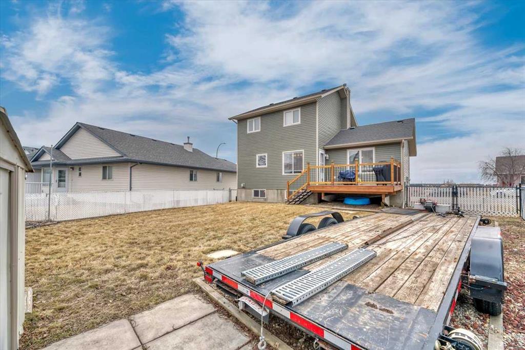 Set on a spacious lot, this home delivers the kind of outdoor space that’s hard to find—complete with RV parking, a full-size deck, and plenty of room to actually use your yard. Inside, the layout is functional and open. A wide front entry gives you space to come and go comfortably, leading into a bright living area anchored by large windows. The kitchen is designed for real life—loads of cabinetry, generous prep space, and a dining area that connects directly to the backyard for easy indoor/outdoor flow. A convenient 2-piece bath finishes the main level. Upstairs, you’ll find three well-proportioned bedrooms, including a primary retreat with its own ensuite and excellent closet space. A second full bathroom serves the additional bedrooms. The basement is unfinished with a bathroom rough-in already in place—ready for whatever direction you want to take it. Extras that matter: double attached garage, central air conditioning, and rare RV parking. Solid layout, great lot, and room to grow—this one checks the right boxes. a Dreamy 2 storey for your next chapter! Located in amazing community of Strathmore a full service community with a Hospital, Rec centres, Swimming pool, Shopping, Banks Grocery stores amazing walking paths and tonnes of parks! Great access to Calgary perfect for commuters!