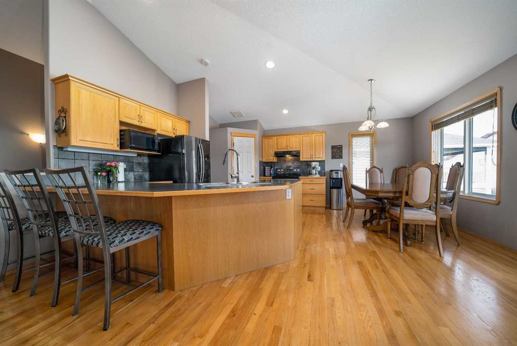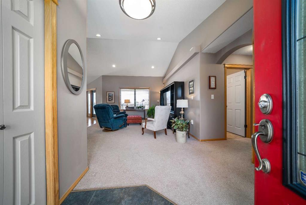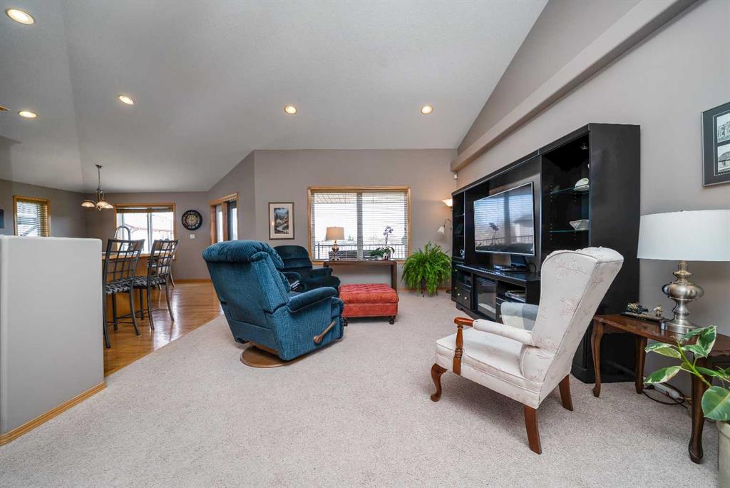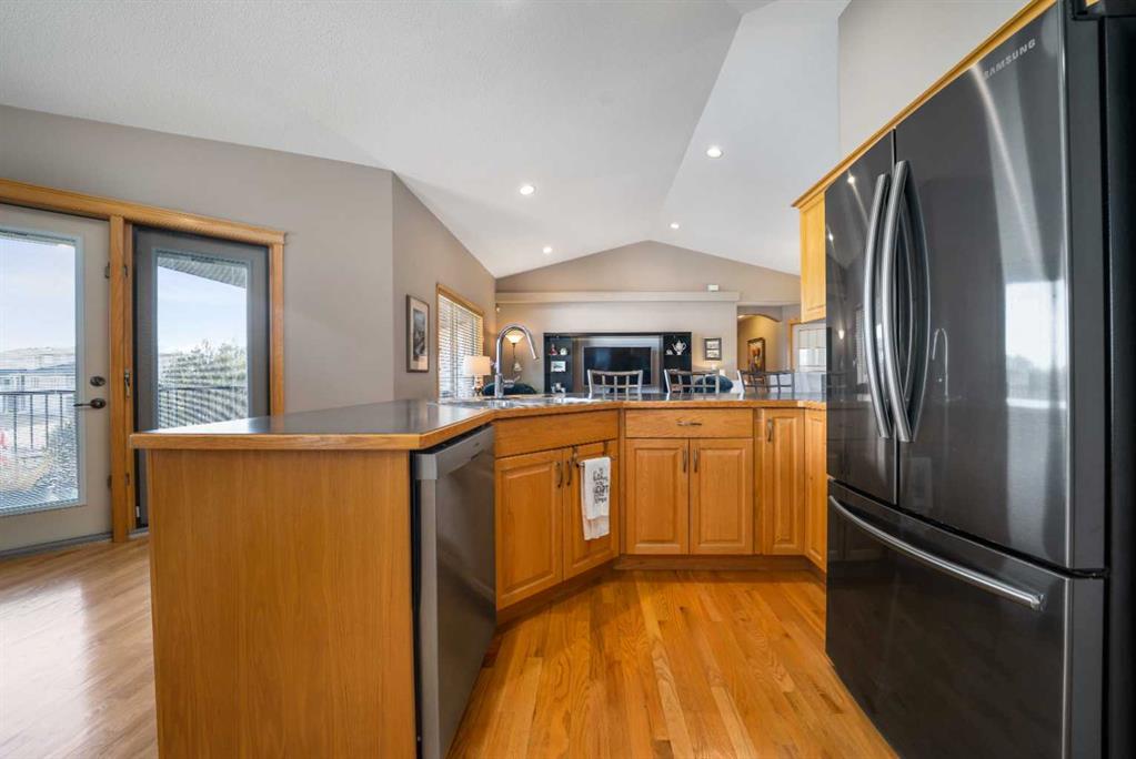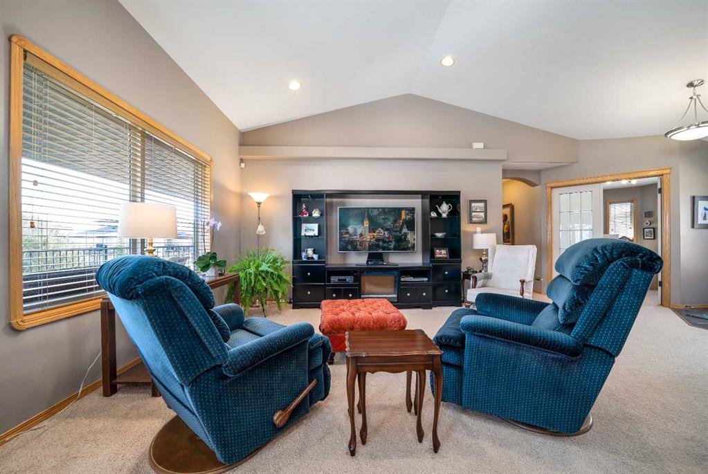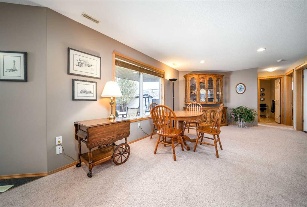 Welcome to 158 Sunrise Road, a beautifully maintained fully developed walkout bungalow offering incredible space, thoughtful updates, and stunning views. Nestled in a quiet neighbourhood and backing directly onto the Sierra Coulee walking and biking paths, this home truly delivers on location and lifestyle. Spanning 1445 sq ft, the main floor welcomes you with vaulted ceilings and a bright, open concept design that creates an immediate sense of space. The great room flows seamlessly into the kitchen and dining area, featuring a breakfast bar, corner walk in pantry, and newer appliances. From here, step out onto the large partially covered deck and take in the expansive, fully landscaped yard and beautiful coulee views. The primary bedroom is generously sized and offers private access to the deck, along with a walk in closet and a 4 piece ensuite complete with double sinks and a large shower. The main floor also includes a second bedroom, a full bathroom, and a den with French doors, perfect for a home office or flex space. Downstairs, the fully developed walkout basement offers a spacious recreation room with a cozy gas fireplace and direct access to the covered patio and backyard. Two additional large bedrooms, a 3 piece bathroom, and excellent storage space including a walk in closet complete the lower level. This home has been exceptionally well cared for over the years, with important updates including shingles, eaves and downspouts in 2020, exterior maintenance with professional painting, newer appliances, a newer hot water tank, and central vacuum with attachments. With its double attached garage, attractive stucco and brick exterior, massive yard, and direct access to the coulee pathway system, this is a home that truly stands out. Pride of ownership is evident throughout, making it move in ready and a fantastic opportunity in a sought after location.
