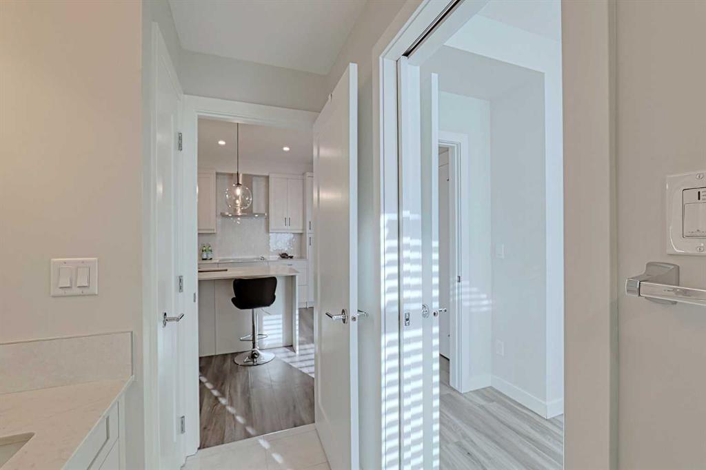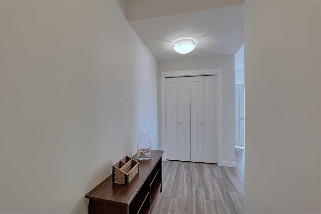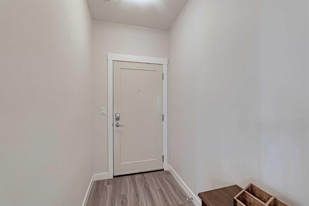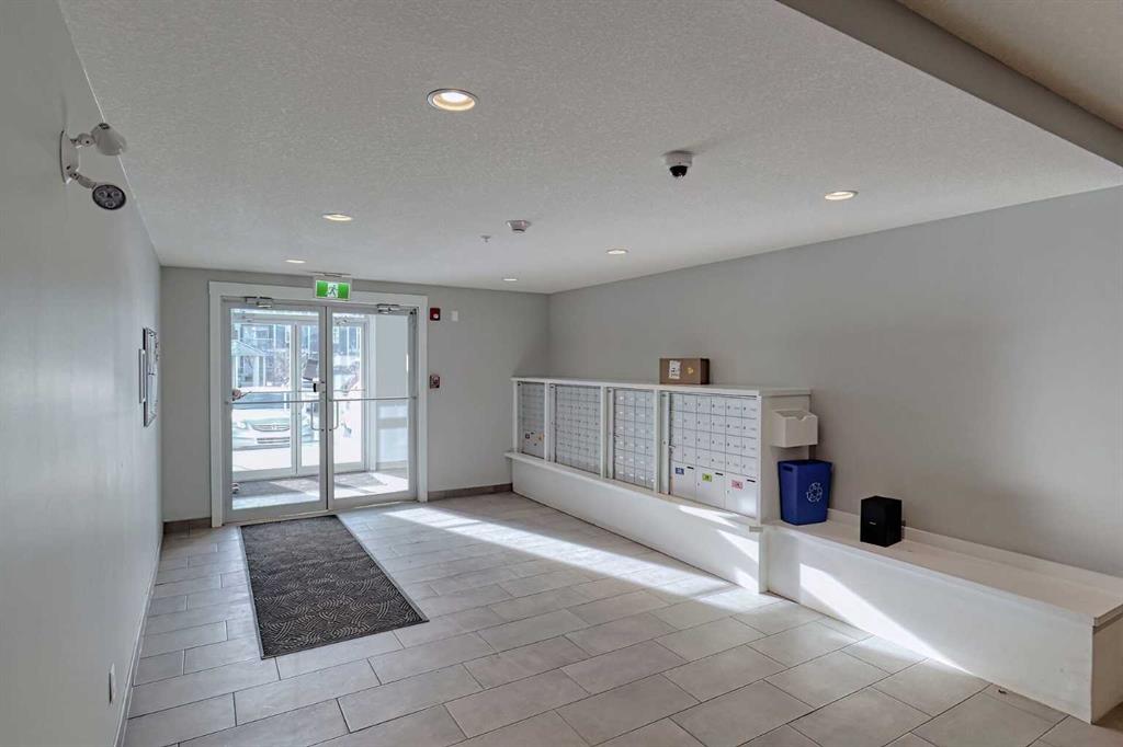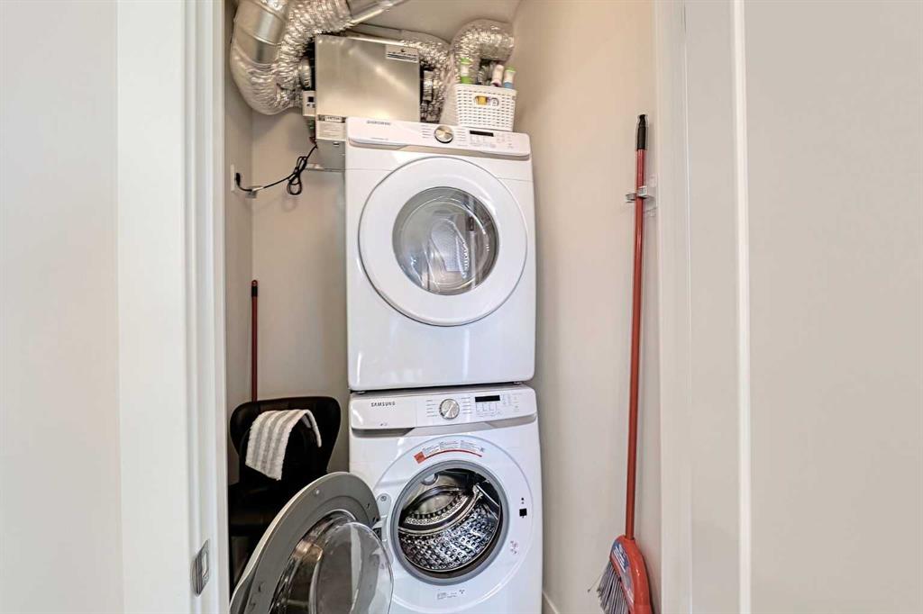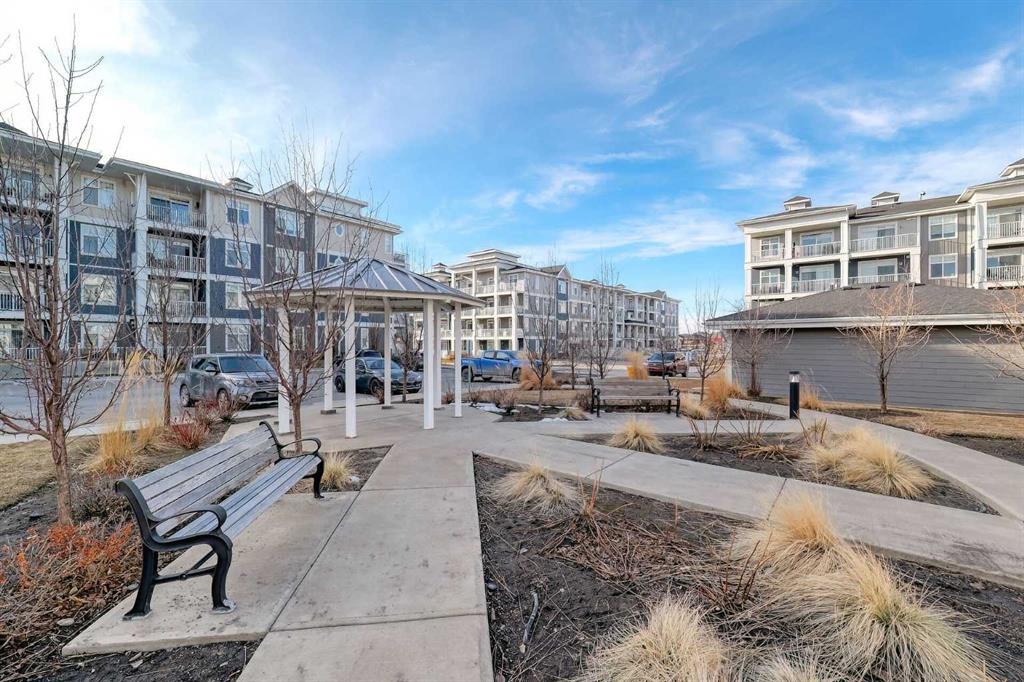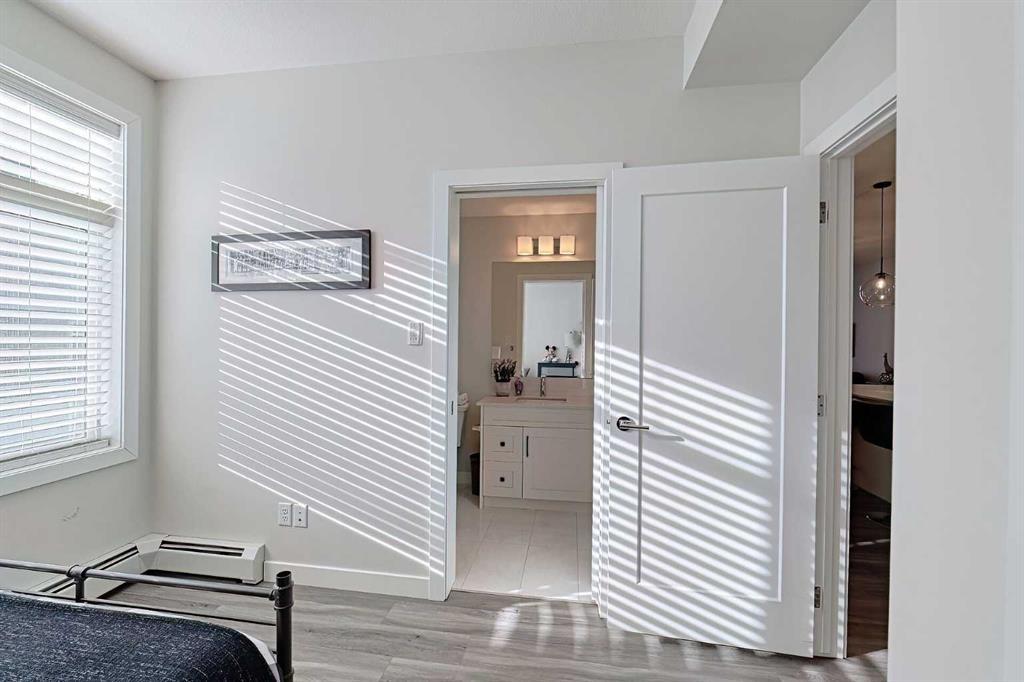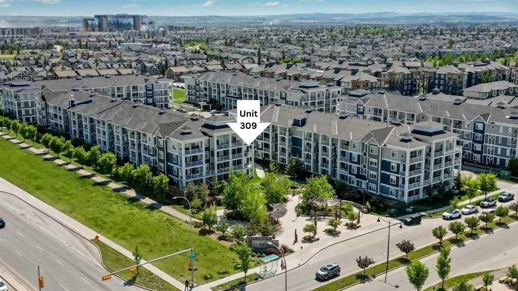 Bright and spacious end unit with 25 foot balcony and extra windows for bright, warm, natural light! You'll love this 2-bed 2-bath Atwood model by quality builder Logel Homes, one of the largest units in the complex. Fabulous open floor plan with a huge balcony overlooking the courtyard. Oversized entry way with coat closet and room for a bench or additional shoe storage. Lovely white kitchen with quartz counters, tiled backsplash and contemporary lighting. Stainless steel appliance package includes electric cooktop, wall oven, built-in microwave, industrial-style hood fan, dishwasher, fridge with ice and water line and bottom-mount freezer. Primary Suite with big walk-in closet and 4-piece ensuite. Cheater ensuite opens to second bedroom with second door to the main living area. Easy-clean vinyl plank flooring throughout. Stacked washer and dryer in-unit. Wall unit air conditioning keeps you cool in summer. Heated underground parking 4309 is titled. Assigned storage locker 4309 located at the front end of the parking stall. Mailboxes are in the lobby, garage and recycling are in a separate building just steps away. Pets allowed with written board approval and must be licensed and vaccinated. Very walkable to major shopping and amenities. Easy access to Stoney and Deerfoot Trails. Auburn Rise is clearly a cut above. Come see for yourself. We can't wait to show you around. Love where you live!