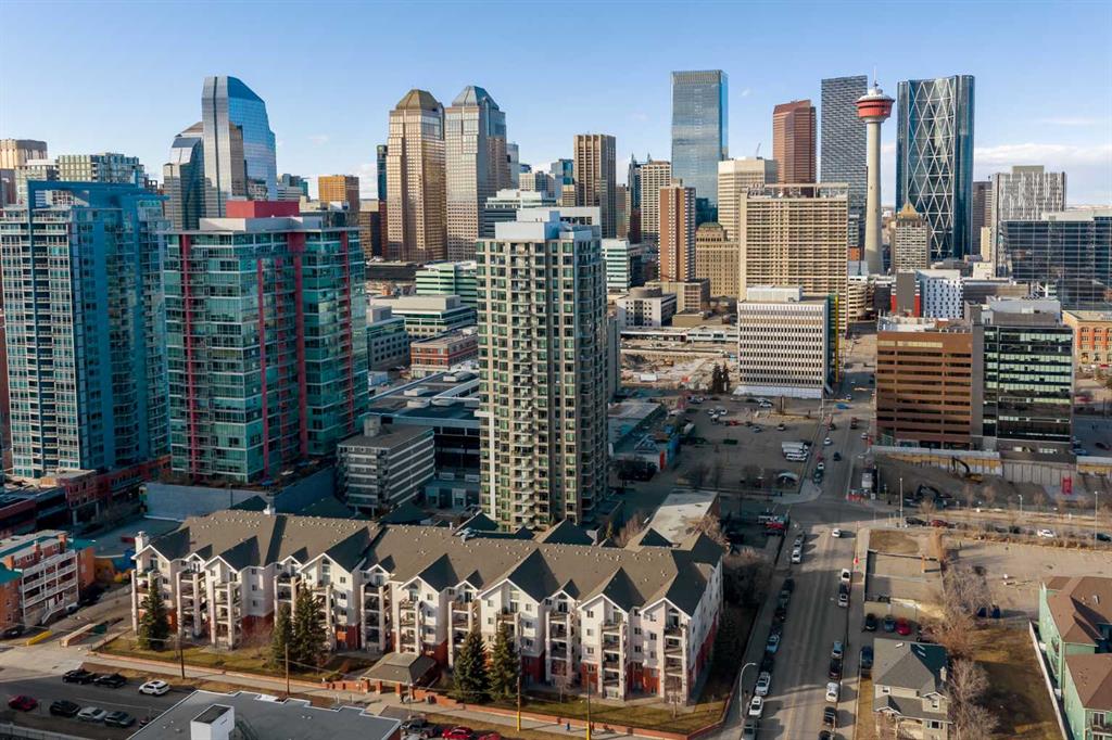 Enjoy stunning downtown views from this spacious and thoughtfully designed 2-bedroom, 2-bathroom condo in Polo Terrace, offering 882 sq ft of stylish inner-city living in the heart of Beltline. This bright, open-concept unit features 9’ ceilings, a welcoming kitchen with ample white cabinetry and matching appliances, and a cozy corner gas fireplace in the living area, opening directly onto a covered balcony. The generously sized primary bedroom includes a walk-through closet and private 4-piece ensuite, while the second bedroom is ideally positioned on the opposite side of the unit for added privacy. Additional highlights include in-suite laundry, in-unit storage, and titled heated underground parking. Whether you’re looking to upsize, downsize, or invest, this move-in ready condo offers flexible living in one of Calgary’s most vibrant inner-city neighbourhoods and is a true gem in a pet-friendly, well-managed building. Perfectly located just steps from the Calgary CTrain, shops, restaurants, and green spaces such as Central Memorial Park and Lindsay Park, with quick access to Stampede Park and the Scotiabank Saddledome, this home delivers the ultimate combination of comfort, convenience, and vibrant urban living.