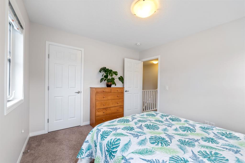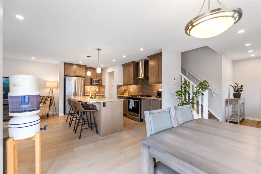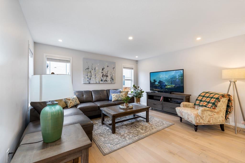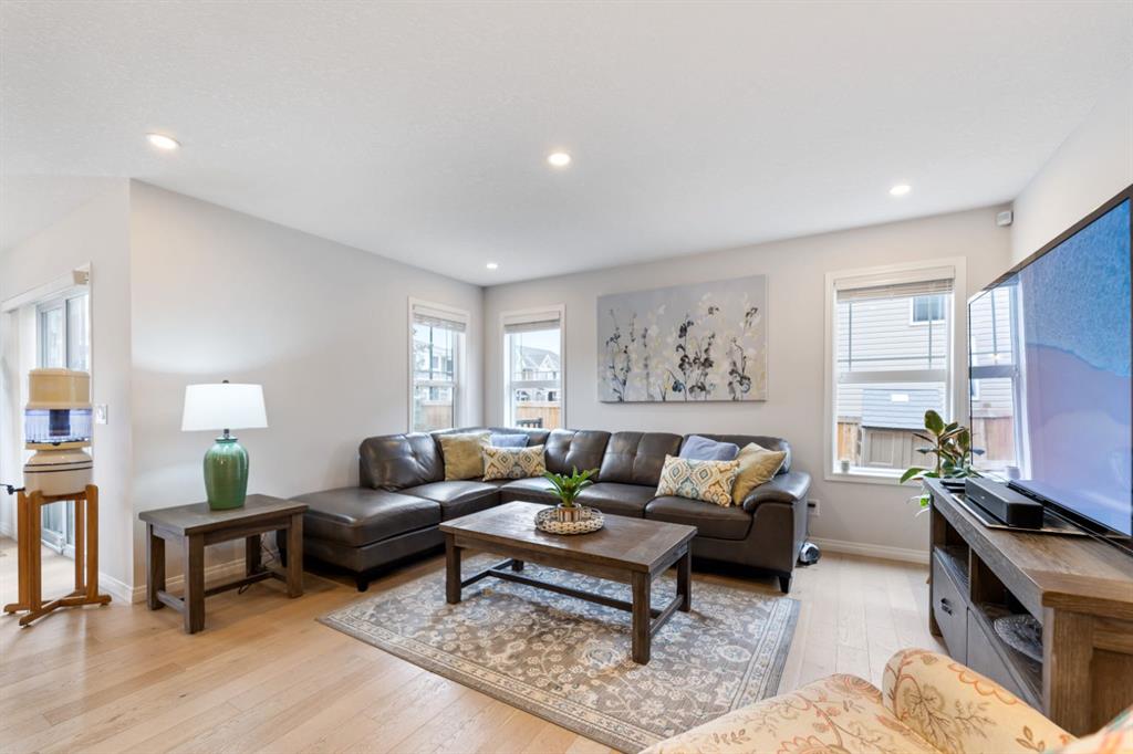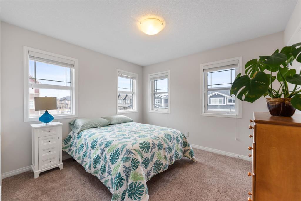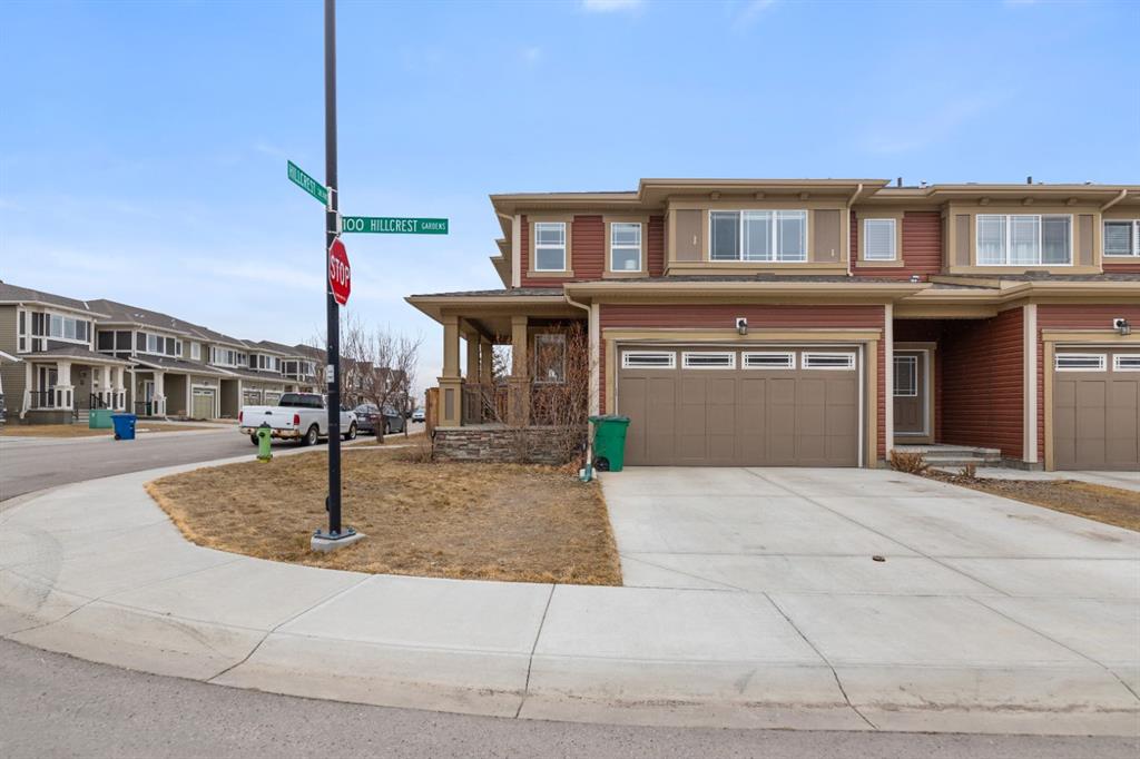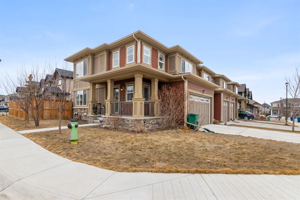 LIKE NEW | NO CONDO FEES | RARE CORNER LOT | CENTRAL A/C | WEST-FACING BACKYARD. Welcome to this stunning, fully upgraded townhouse situated on one of the largest and most desirable corner lots in the community. With only a limited number of end units available, this home offers added privacy, extra windows, and an abundance of natural light throughout—all with NO condo fees. Step inside to a bright and elegant interior featuring luxury hardwood flooring throughout and a chef-inspired kitchen designed to impress. Enjoy custom stone countertops, natural wood cabinetry, and premium stainless steel appliances, including a gas stove. The functional layout, generous storage, and added gas line for BBQ on the back deck make this home perfect for both everyday living and entertaining. Upstairs, you’ll find three spacious bedrooms, two full bathrooms, and a convenient upper-level laundry area with ample storage. The primary suite serves as a private retreat, complete with a walk-in closet and a well-appointed ensuite. This home is loaded with value-added upgrades, including: Central air conditioning; Hunter Douglas blinds throughout and custom vertical patio blinds; Security system with doorbell camera, motion sensors, and window alarms; Keypad entry for front door, back door, and garage; Fresh paint touch-ups throughout; The undeveloped basement provides a blank canvas, offering excellent potential to customize additional living space to suit your needs. Step outside to enjoy your private deck and expansive west-facing backyard, fully fenced and ideal for relaxing evenings, entertaining, or family time. The larger lot size is a rare find and a standout feature in the neighborhood. Located in a safe, quiet, and family-oriented community, this home is just minutes from schools, parks, and bus stops, with convenient access to shopping and major routes including Highway 2. Enjoy being only 10 minutes from CrossIron Mills and close to growing retail hubs in southwest Airdrie, with a new recreation centre planned nearby (target completion 2028). This is a rare opportunity to own a bright, upgraded end-unit townhouse with a double attached garage, larger yard, and no condo fees—a combination that is increasingly hard to find.