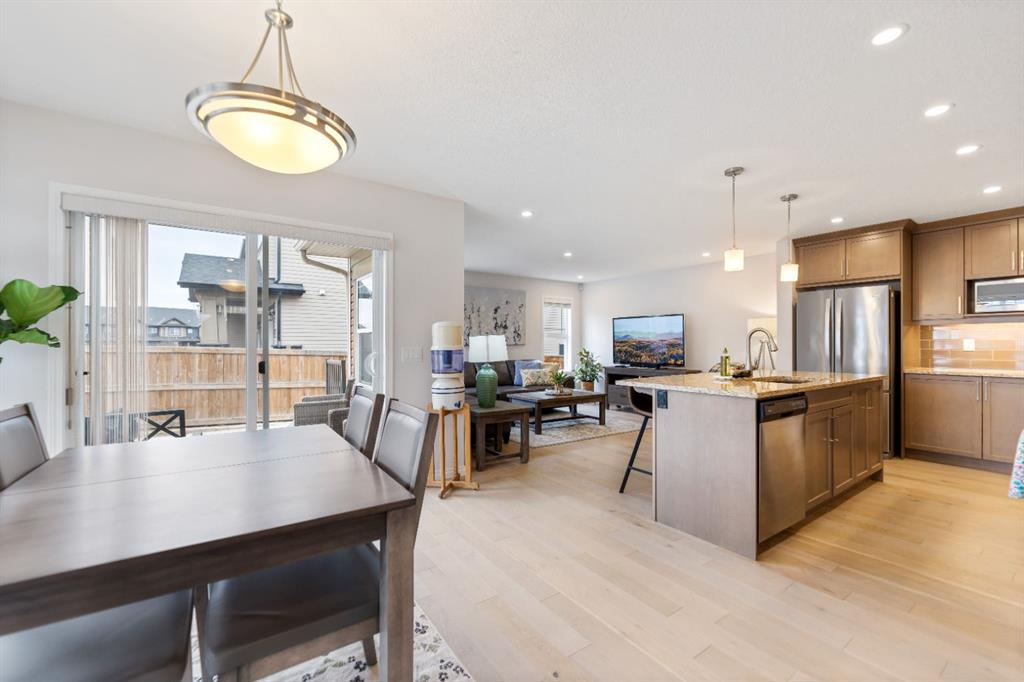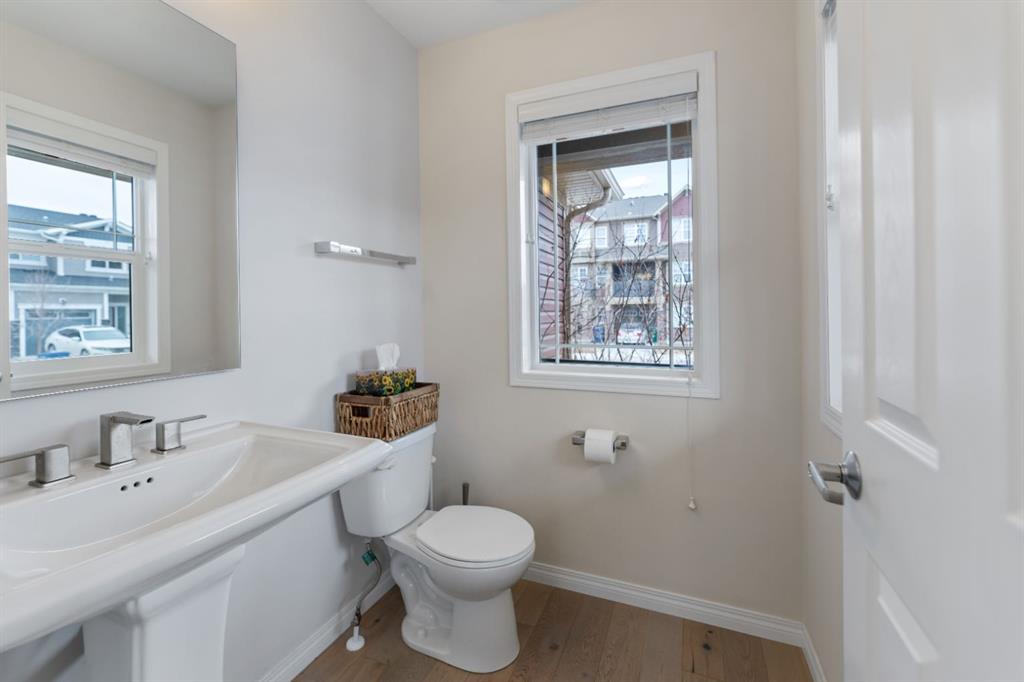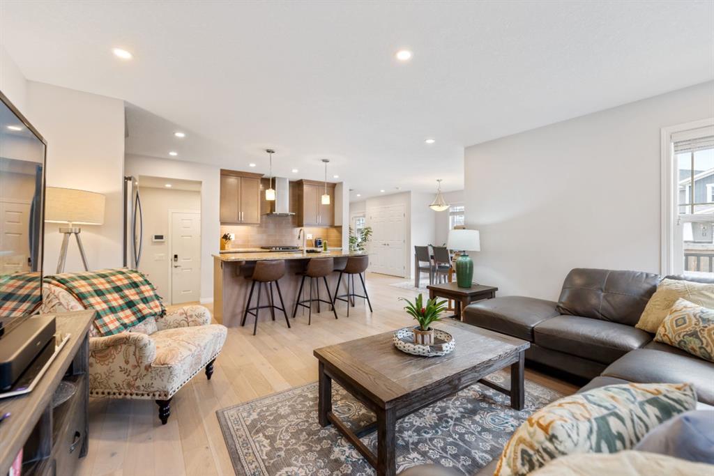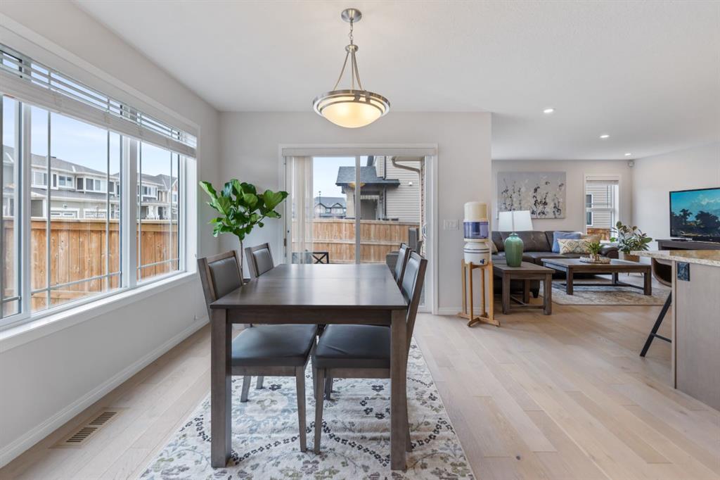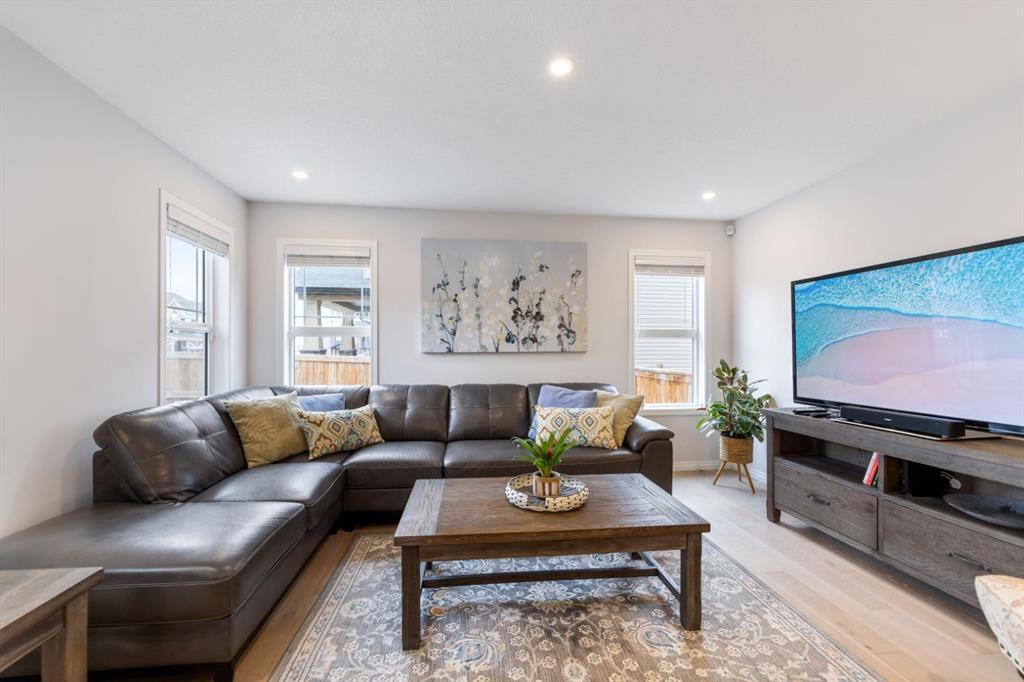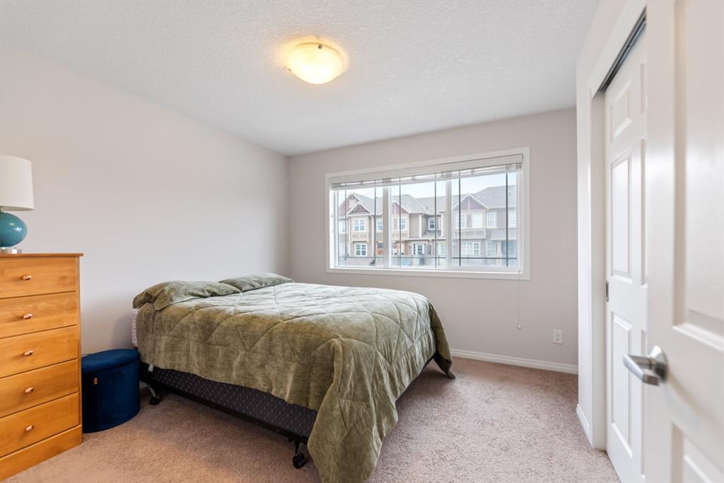 LIKE NEW | NO CONDO FEES | RARE CORNER LOT | CENTRAL A/C | WEST-FACING BACKYARD. Welcome to this stunning, fully upgraded townhouse situated on one of the largest and most desirable corner lots in the community. With only a limited number of end units available, this home offers added privacy, extra windows, and an abundance of natural light throughout—all with NO condo fees. Step inside to a bright and elegant interior featuring luxury hardwood flooring throughout and a chef-inspired kitchen designed to impress. Enjoy custom stone countertops, natural wood cabinetry, and premium stainless steel appliances, including a gas stove. The functional layout, generous storage, and added gas line for BBQ on the back deck make this home perfect for both everyday living and entertaining. Upstairs, you’ll find three spacious bedrooms, two full bathrooms, and a convenient upper-level laundry area with ample storage. The primary suite serves as a private retreat, complete with a walk-in closet and a well-appointed ensuite. This home is loaded with value-added upgrades, including: Central air conditioning; Hunter Douglas blinds throughout and custom vertical patio blinds; Security system with doorbell camera, motion sensors, and window alarms; Keypad entry for front door, back door, and garage; Fresh paint touch-ups throughout; The undeveloped basement provides a blank canvas, offering excellent potential to customize additional living space to suit your needs. Step outside to enjoy your private deck and expansive west-facing backyard, fully fenced and ideal for relaxing evenings, entertaining, or family time. The larger lot size is a rare find and a standout feature in the neighborhood. Located in a safe, quiet, and family-oriented community, this home is just minutes from schools, parks, and bus stops, with convenient access to shopping and major routes including Highway 2. Enjoy being only 10 minutes from CrossIron Mills and close to growing retail hubs in southwest Airdrie, with a new recreation centre planned nearby (target completion 2028). This is a rare opportunity to own a bright, upgraded end-unit townhouse with a double attached garage, larger yard, and no condo fees—a combination that is increasingly hard to find.
