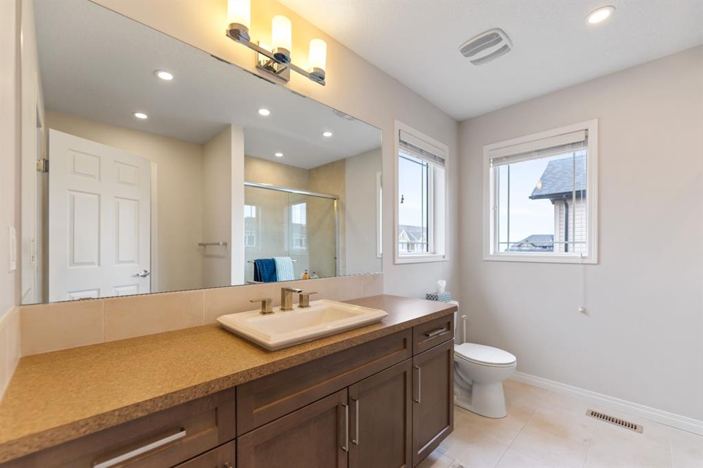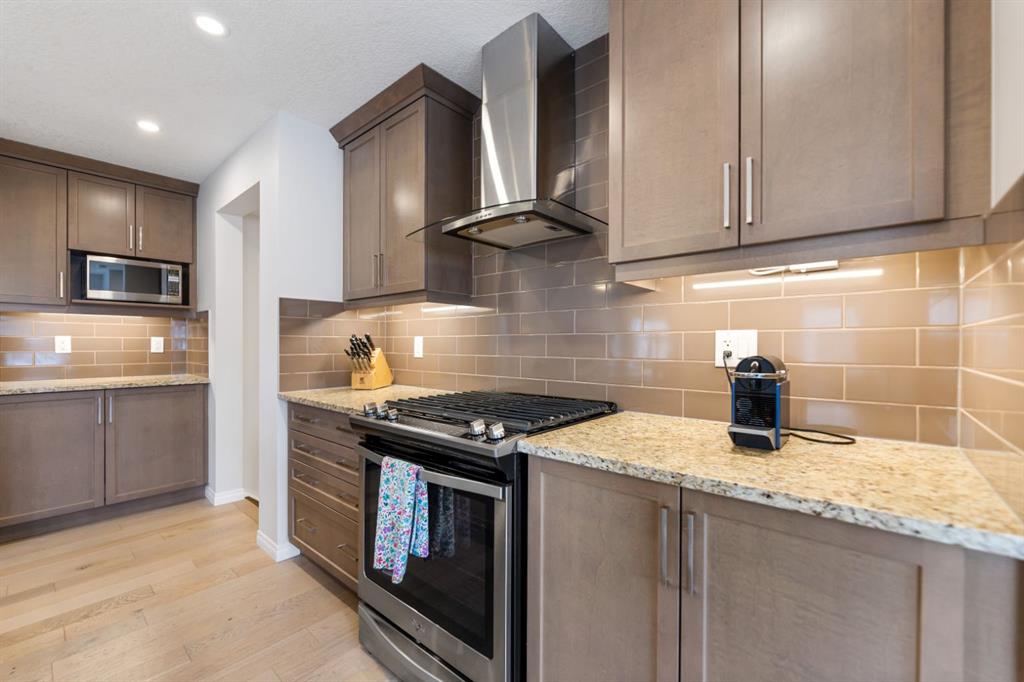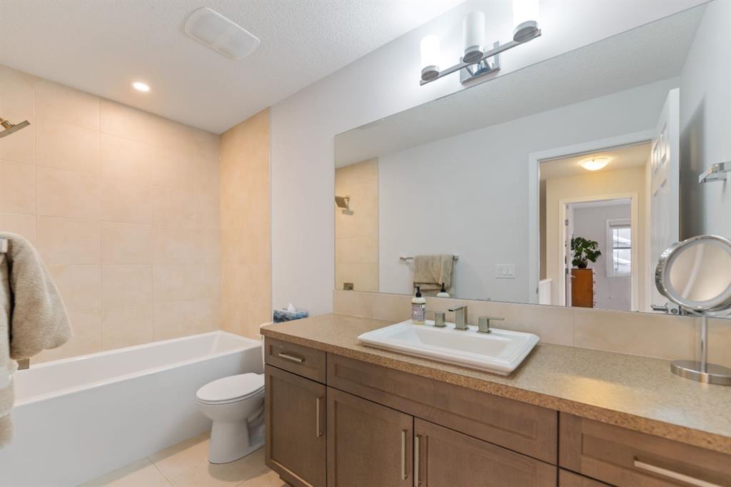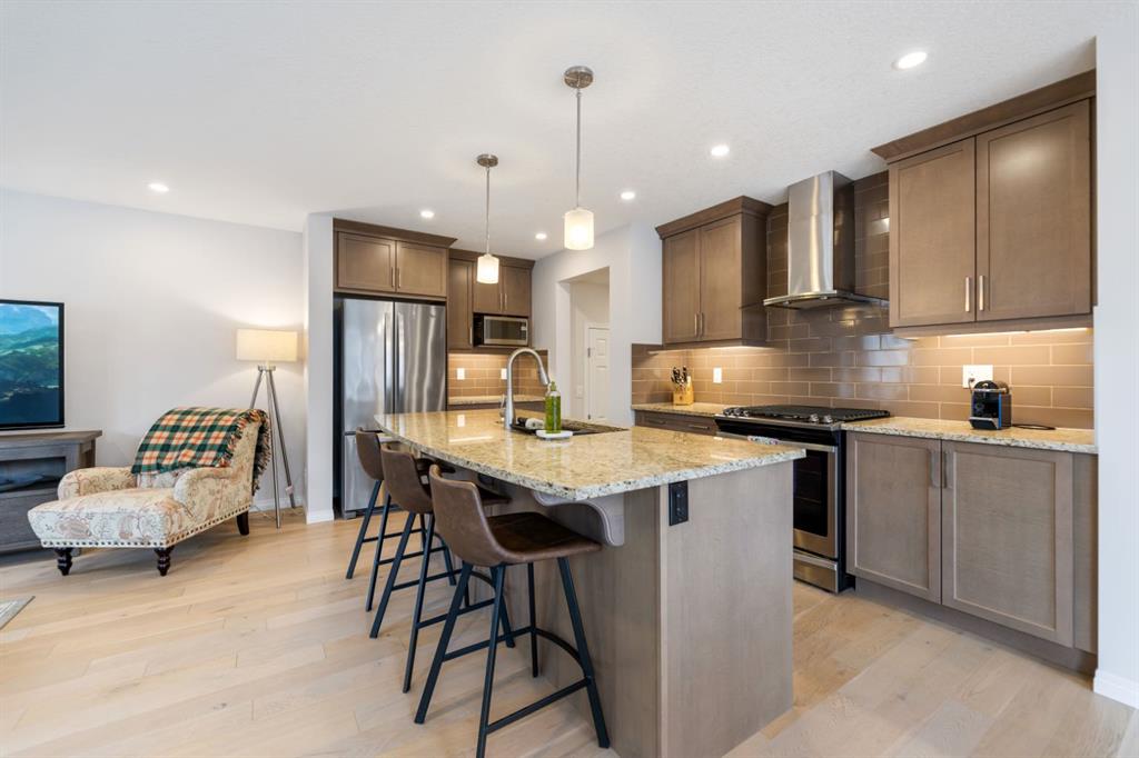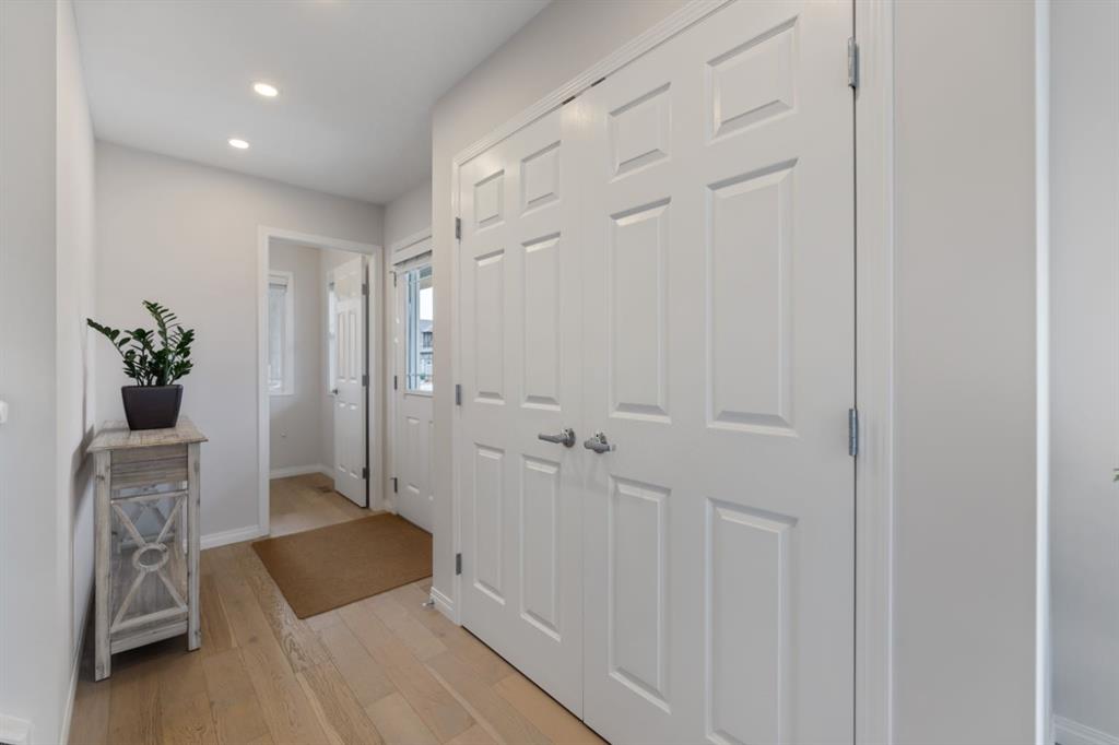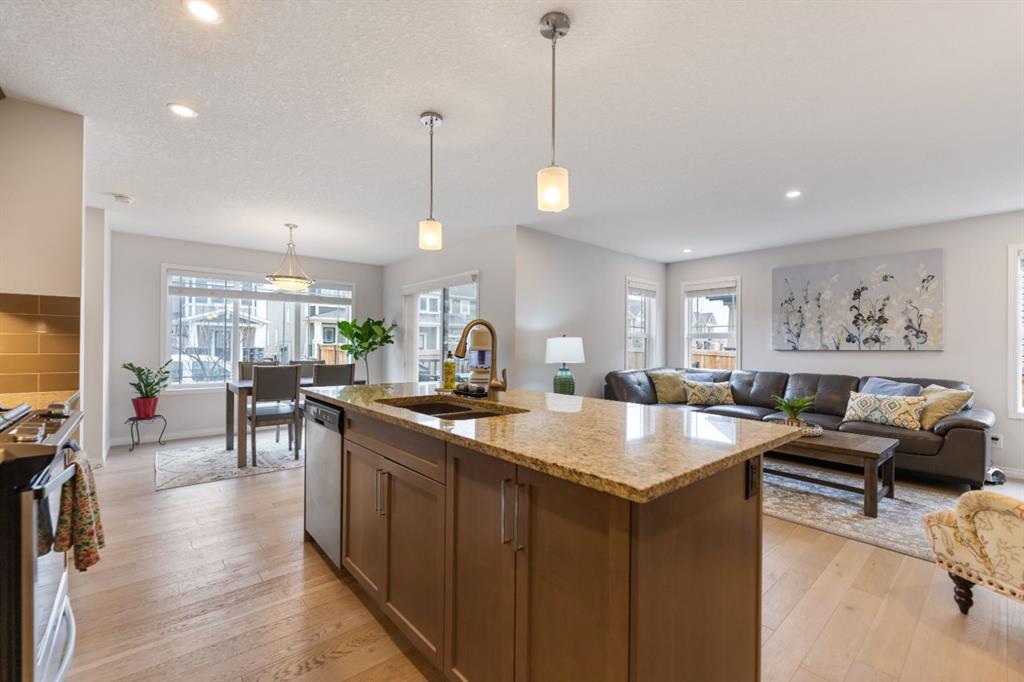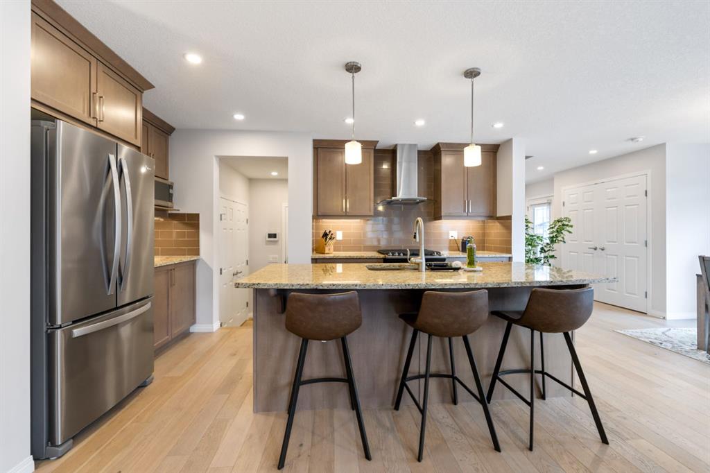 LIKE NEW | NO CONDO FEES | RARE CORNER LOT | CENTRAL A/C | WEST-FACING BACKYARD. Welcome to this stunning, fully upgraded townhouse situated on one of the largest and most desirable corner lots in the community. With only a limited number of end units available, this home offers added privacy, extra windows, and an abundance of natural light throughout—all with NO condo fees. Step inside to a bright and elegant interior featuring luxury hardwood flooring throughout and a chef-inspired kitchen designed to impress. Enjoy custom stone countertops, natural wood cabinetry, and premium stainless steel appliances, including a gas stove. The functional layout, generous storage, and added gas line for BBQ on the back deck make this home perfect for both everyday living and entertaining. Upstairs, you’ll find three spacious bedrooms, two full bathrooms, and a convenient upper-level laundry area with ample storage. The primary suite serves as a private retreat, complete with a walk-in closet and a well-appointed ensuite. This home is loaded with value-added upgrades, including: Central air conditioning; Hunter Douglas blinds throughout and custom vertical patio blinds; Security system with doorbell camera, motion sensors, and window alarms; Keypad entry for front door, back door, and garage; Fresh paint touch-ups throughout; The undeveloped basement provides a blank canvas, offering excellent potential to customize additional living space to suit your needs. Step outside to enjoy your private deck and expansive west-facing backyard, fully fenced and ideal for relaxing evenings, entertaining, or family time. The larger lot size is a rare find and a standout feature in the neighborhood. Located in a safe, quiet, and family-oriented community, this home is just minutes from schools, parks, and bus stops, with convenient access to shopping and major routes including Highway 2. Enjoy being only 10 minutes from CrossIron Mills and close to growing retail hubs in southwest Airdrie, with a new recreation centre planned nearby (target completion 2028). This is a rare opportunity to own a bright, upgraded end-unit townhouse with a double attached garage, larger yard, and no condo fees—a combination that is increasingly hard to find.