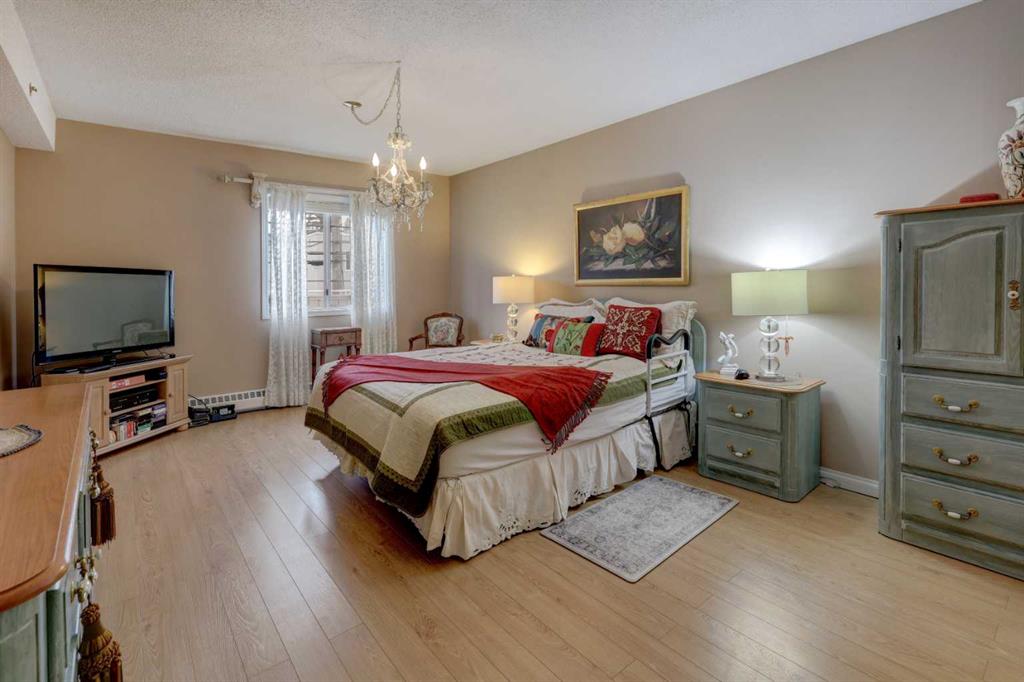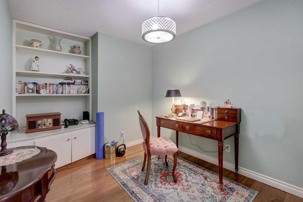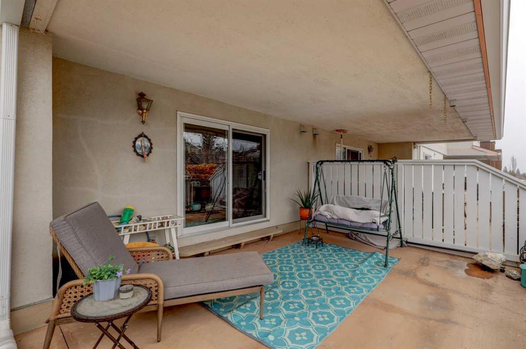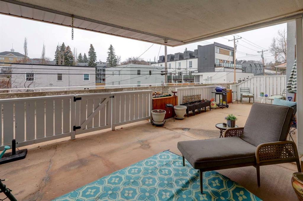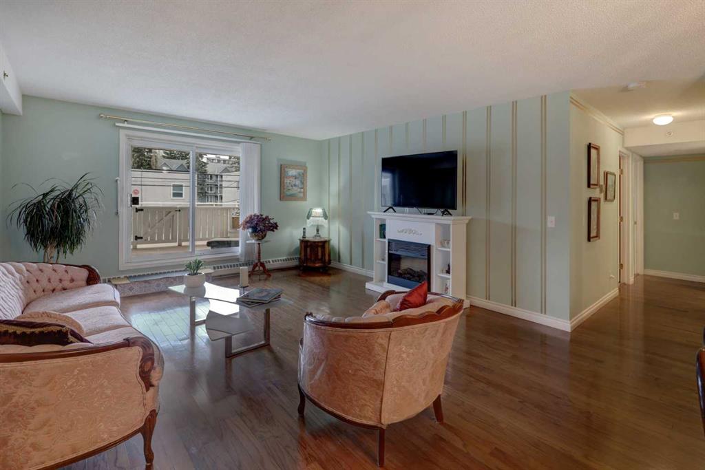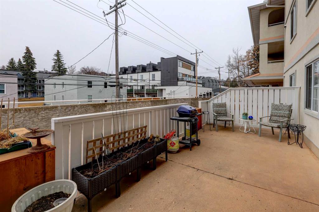 OPEN HOUSE - SATURDAY APRIL 4 - 1:00-4:00pm. Step into this wonderful home and you are immediately struck by its openness and flow. Enter through a gracious foyer, accessing the office/den and the large dining room/living room, and you are immediately impressed with the expansive open plan space. The dining room and living room are welcoming and accommodating to any style or arrangement. There is still room to escape or get some work done as well with the spacious den/office just off the foyer. The updated kitchen is very functional. It has plenty of room to create and move around … and the appliances are immaculate. It has a passthrough to the dining room as well, which is quite convenient. Down the hall you will find the bright and sunny primary suite, which is very large. In addition to the well-proportioned bedroom, it offers a walk-in closet and 4-piece ensuite. The second bedroom is generous as well with plenty of room for furniture and to move around. Across the hall, a pleasant 3-piece bathroom and very functional laundry room complete the floor plan. One of the most stunning features of this home is the massive, 37’ x 12’11”, south facing patio. At 45% covered, this patio is ideal for entertaining, perfecting your green thumb, putting the dog out or simply relaxing. It expands your living space tremendously. With over 1,327 square feet of living space, plus another 410 sf of partially covered patio space, you’ve got room to roam! Click on the 3D Tour icon above and you will see what we mean! Another special and unique feature of this offering is the 2 underground parking spaces included with the unit, one of which is titled for your ownership. The other is assigned. A handy, assigned, storage locker is only steps away from your car park. South Calgary is a fantastic, walkable, community to live in. With easy access to shopping and parks, Marda Loop and downtown, this location is hard to beat. Units in Leaton Place don’t come available very often and this south facing unit is one of the largest in the building. Now is your opportunity to own this gem in one of the most sought-after buildings in the area.