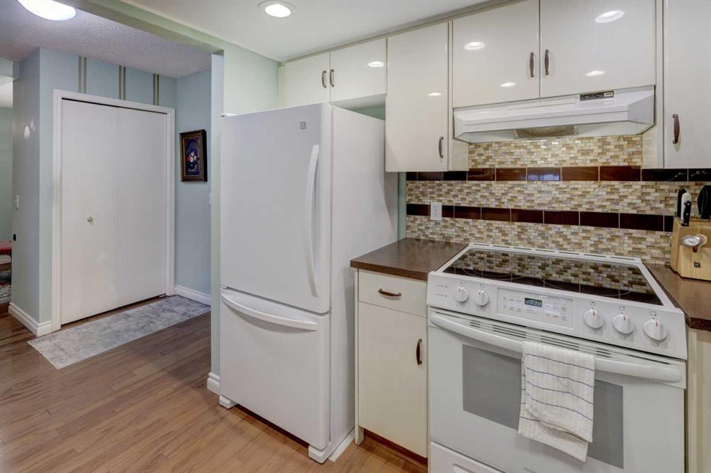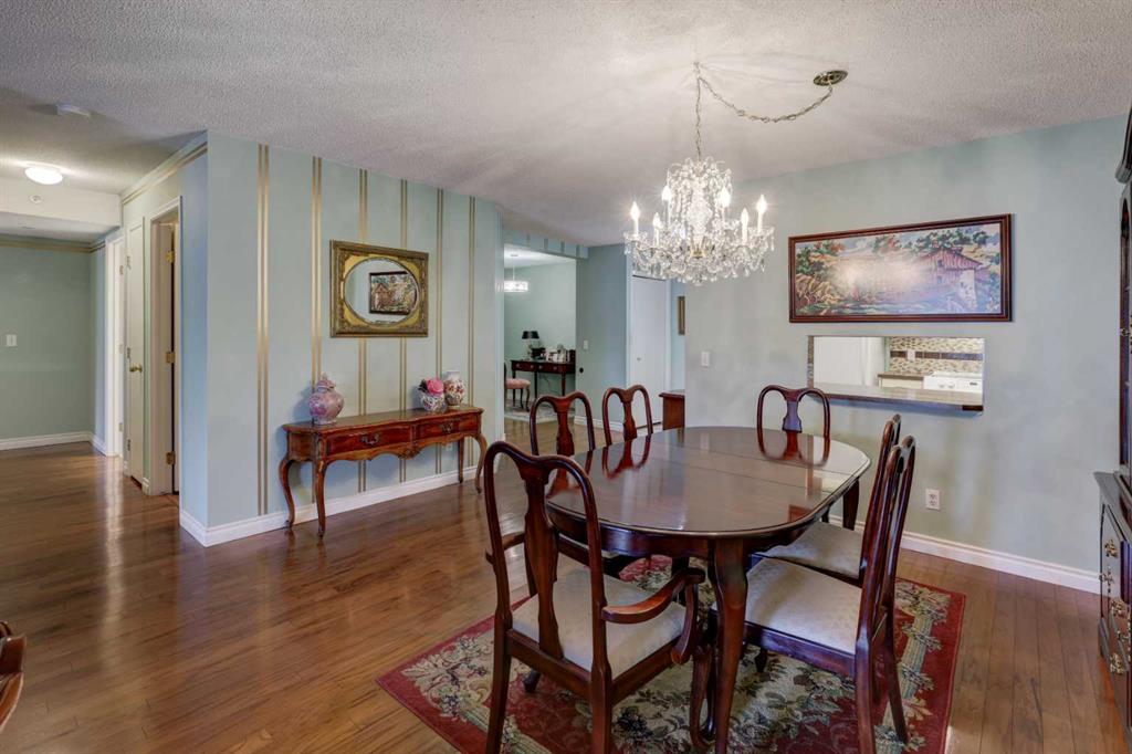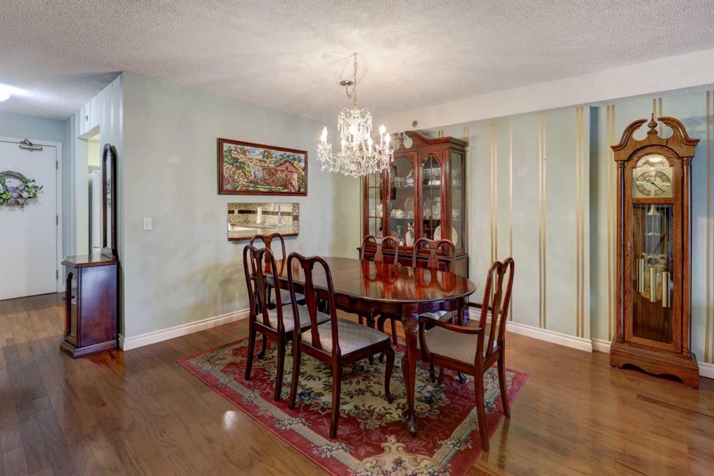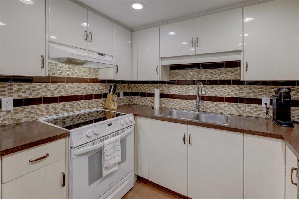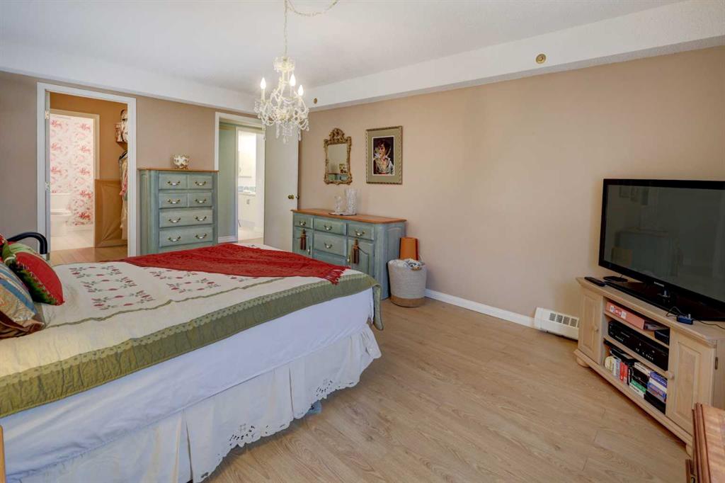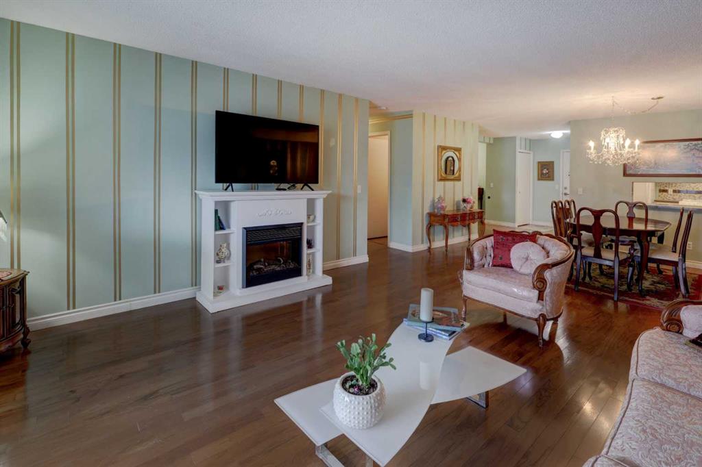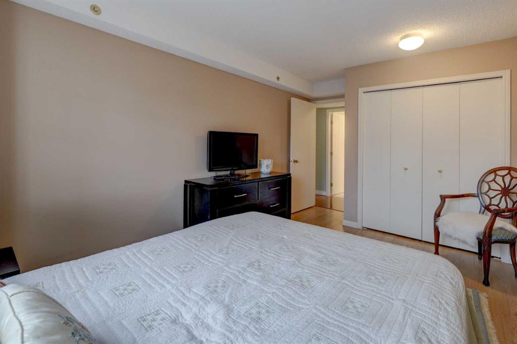 OPEN HOUSE - SATURDAY APRIL 4 - 1:00-4:00pm. Step into this wonderful home and you are immediately struck by its openness and flow. Enter through a gracious foyer, accessing the office/den and the large dining room/living room, and you are immediately impressed with the expansive open plan space. The dining room and living room are welcoming and accommodating to any style or arrangement. There is still room to escape or get some work done as well with the spacious den/office just off the foyer. The updated kitchen is very functional. It has plenty of room to create and move around … and the appliances are immaculate. It has a passthrough to the dining room as well, which is quite convenient. Down the hall you will find the bright and sunny primary suite, which is very large. In addition to the well-proportioned bedroom, it offers a walk-in closet and 4-piece ensuite. The second bedroom is generous as well with plenty of room for furniture and to move around. Across the hall, a pleasant 3-piece bathroom and very functional laundry room complete the floor plan. One of the most stunning features of this home is the massive, 37’ x 12’11”, south facing patio. At 45% covered, this patio is ideal for entertaining, perfecting your green thumb, putting the dog out or simply relaxing. It expands your living space tremendously. With over 1,327 square feet of living space, plus another 410 sf of partially covered patio space, you’ve got room to roam! Click on the 3D Tour icon above and you will see what we mean! Another special and unique feature of this offering is the 2 underground parking spaces included with the unit, one of which is titled for your ownership. The other is assigned. A handy, assigned, storage locker is only steps away from your car park. South Calgary is a fantastic, walkable, community to live in. With easy access to shopping and parks, Marda Loop and downtown, this location is hard to beat. Units in Leaton Place don’t come available very often and this south facing unit is one of the largest in the building. Now is your opportunity to own this gem in one of the most sought-after buildings in the area.