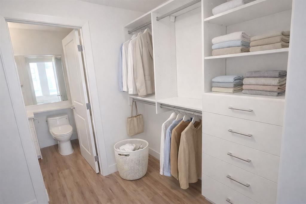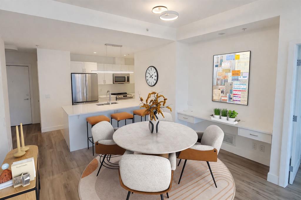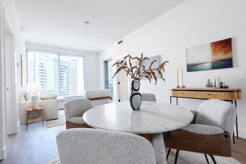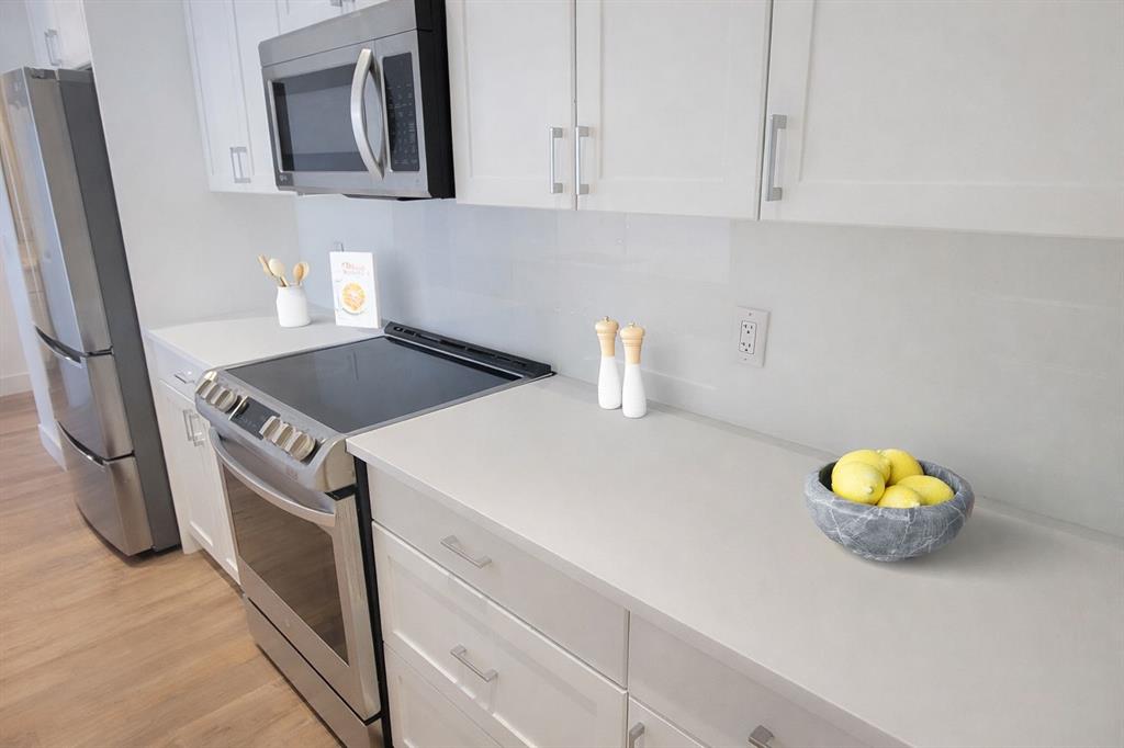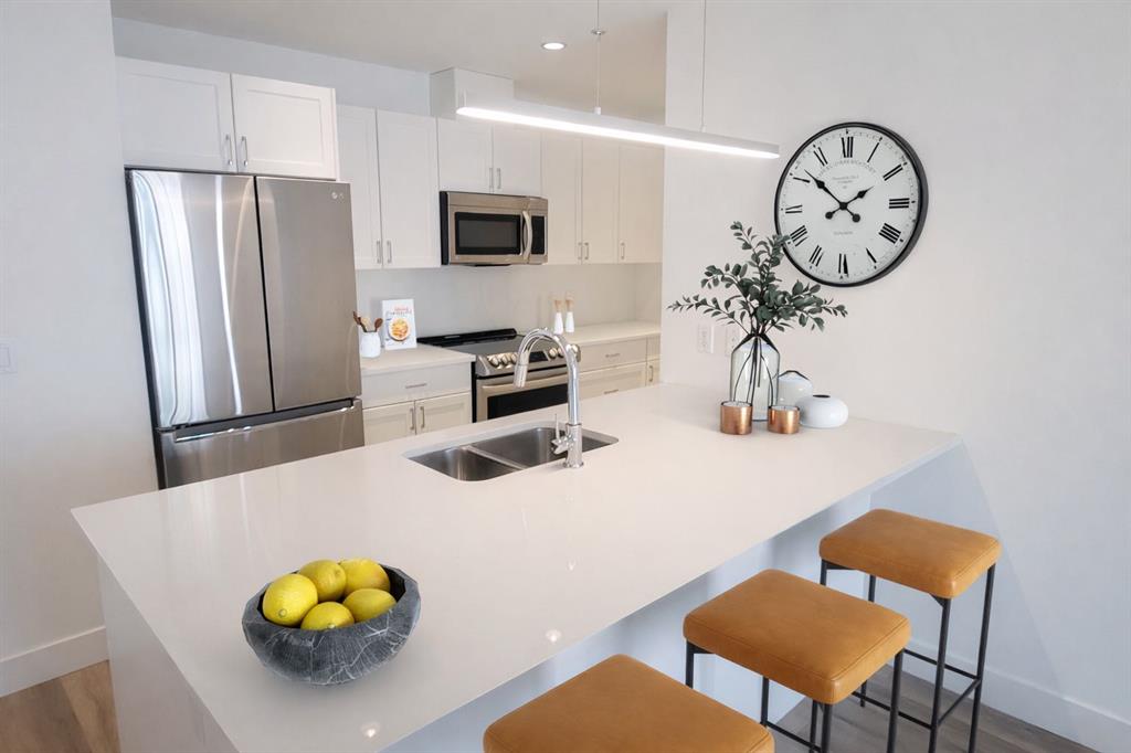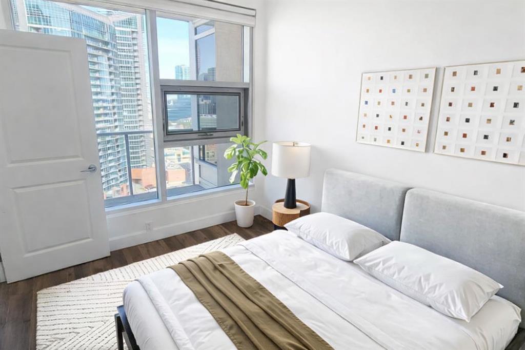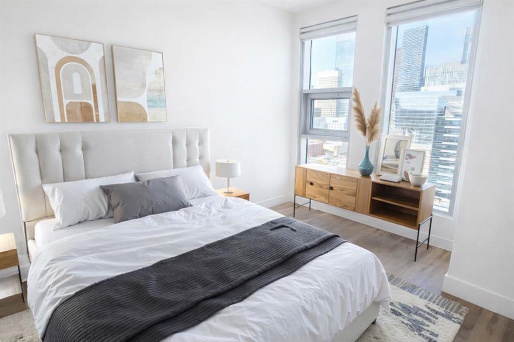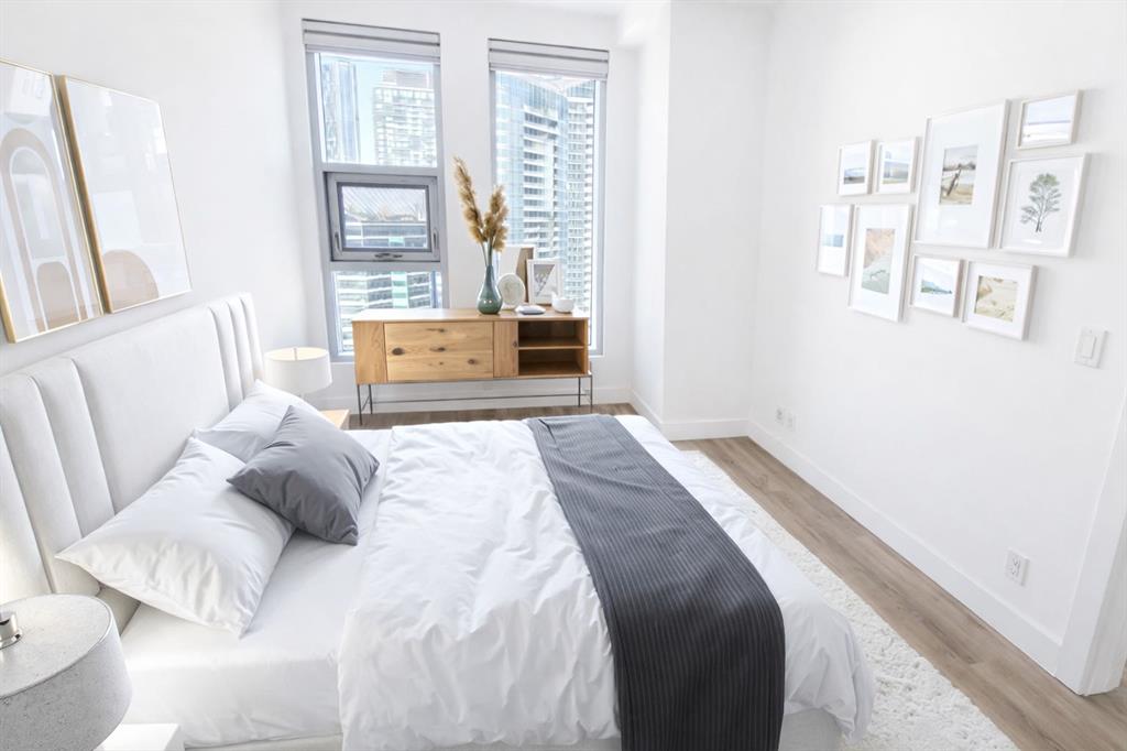 A Room with a VIEW! OVER $40,000 worth of upgrades. Welcome to this stunning 16th-floor home in NUERA, where breathtaking views of the Calgary Tower and Telus Sky create an unforgettable backdrop for everyday living. With a bright north-facing exposure, you’ll enjoy a spectacular downtown skyline from the living room and both bedrooms, offering a truly elevated urban experience. This beautifully updated 2-bedroom, 2-bathroom suite features a thoughtful open-concept layout designed for both comfort and style. Soaring 9-foot ceilings and central air conditioning add to the sense of space, while upgraded luxury vinyl plank flooring brings a modern, cohesive feel throughout most of the home. The kitchen is both functional and inviting, showcasing quartz countertops, a large island with eating bar, and newer stainless-steel appliances—perfect for entertaining or casual meals at home. The spacious primary bedroom offers a relaxing retreat with a walk-through closet customized by California Closets and a private, spa-inspired ensuite complete with a deep soaker tub. A second well-sized bedroom and a full bathroom with a walk-in shower provide flexibility for guests, family, or a home office. The convenience of in-suite laundry adds to the ease of everyday living. Step out onto your private balcony and take in the vibrant energy of downtown Calgary. This home also includes a titled underground parking stall and a separate storage locker, along with upgraded closet systems throughout for added organization. Residents of NUERA enjoy access to exceptional amenities, including a 15,000 sq. ft. fitness and yoga facility with commercial-quality equipment, a beautifully landscaped rooftop garden patio, visitor parking, and daytime concierge service. Perfectly located in the heart of Victoria Park, you’re just steps to the LRT, river pathways, Stampede Grounds, Saddledome, and an incredible selection of restaurants, cafés, and shops along 17th Avenue. Everyday essentials like Sunterra Market, H-Mart, Shoppers Drug Mart, and major banks are all within easy walking distance. Urban convenience meets elevated comfort—this is downtown living at its finest. Some photos have been virtually staged.