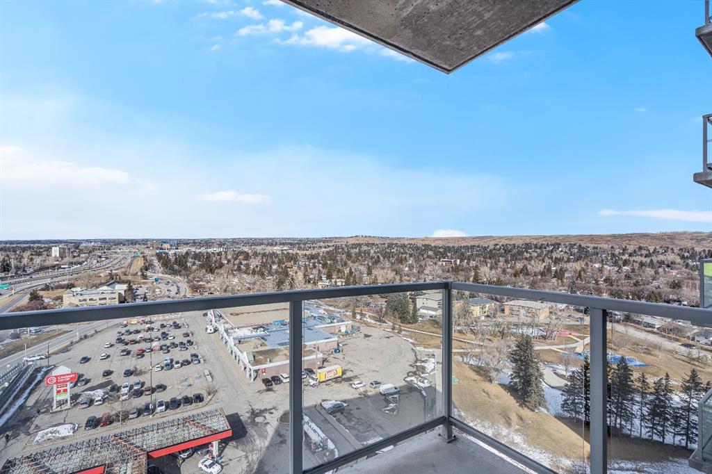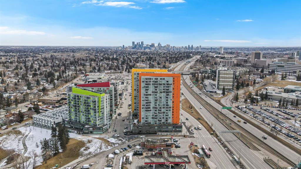 Welcome to University City, where style, convenience, and unbeatable location come together. Perched on the 14th floor of the sought-after Orange Building, this bright one-bedroom unit showcases stunning west-facing mountain views and expansive north city views through floor-to-ceiling windows. Designed with functionality in mind, the open-concept layout features a spacious living area, a well-appointed kitchen with dining space, and a modern four-piece bathroom. Thoughtful upgrades include durable laminate flooring and a refreshed kitchen complete with updated countertops and a sleek contemporary backsplash, creating a clean and move-in-ready feel. This unit also offers in-suite laundry, central air conditioning for year-round comfort, a titled underground parking stall, and an assigned storage locker. Residents enjoy access to excellent amenities including a fitness centre, meeting room, secure bike storage, and heated visitor parking. Located just steps from the University of Calgary and less than a 10-minute walk to Brentwood LRT, this unbeatable location places you close to Brentwood Village Mall, Co-op, Safeway, Market Mall, restaurants, cafes, SAIT, Foothills Hospital, and more. Whether you’re a student, professional, or investor, this is an exceptional opportunity in one of Calgary’s most connected communities.