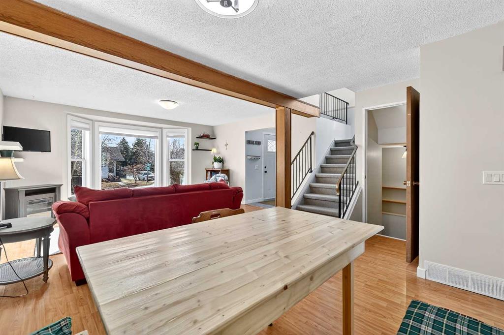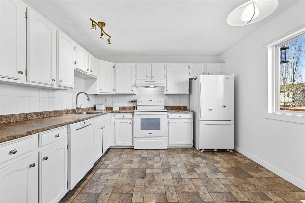 Welcome to this well-maintained and thoughtfully updated two-storey home, ideally situated on a quiet, tree-lined street in the heart of Woodbine. Offering exceptional value in a family-friendly neighbourhood, this home is just steps from a shopping plaza featuring a grocery store, pharmacy, bakery, and more—plus close proximity to schools, playgrounds, and the endless pathways of Fish Creek Park. The main level features a bright and functional open-concept layout, seamlessly connecting the spacious living and dining areas—perfect for everyday living and entertaining. Fresh paint in the living room enhances the inviting atmosphere, while upgraded light switches, outlets, and GFCI protection where needed add modern convenience. The kitchen is both practical and stylish, complete with composite countertops, a large window allowing for abundant natural light, and a charming coffee bar feature. Flooring throughout the main level includes durable laminate, with vinyl in the porch and ceramic tile in the bathroom for added functionality. Main floor is complete with a 2 piece bathroom and mudroom. Upstairs, you’ll find three generously sized bedrooms, including a refreshed primary retreat featuring new paint, baseboards, and a thoughtfully designed wardrobe solution. The full bathroom has been tastefully updated with a new bathtub, vinyl flooring, and updated toilet and taps. The upper level showcases a blend of vinyl plank and engineered hardwood flooring, while the stairs are finished in carpet for added comfort. The fully developed basement offers additional living space, including a renovated 100 sq ft room complete with new flooring, baseboards, and fresh paint—ideal for a home office, hobby room, or guest space. The basement stairs have also been updated with engineered wood flooring and new paint, creating a cohesive and modern feel throughout the lower level. Step outside to a large, mature yard—perfect for kids, pets, or relaxing under the shade of established trees. The yard is fully fenced (new fence installed in 2020) and offers plenty of space for outdoor entertaining, including BBQs and gatherings. With rear lane access, there is ample room to add a future garage if desired. Additional updates include resealed windows and a newer hot water tank, providing peace of mind for years to come. An excellent opportunity to own a comfortable and updated home in one of Calgary’s most desirable established communities—book your private showing today!