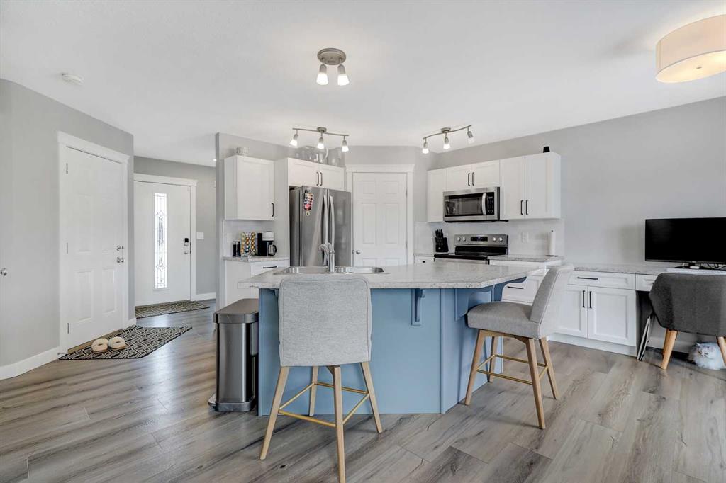 Thoughtfully designed and built in 2022 by Monarch Homes, this beautiful duplex in Lakeland is perfect for first-time home buyers or as an investment property. Featuring 3 bedrooms and 3.5 bathrooms, this home offers a bright open-concept layout filled with lots of natural light. The welcoming entry leads to a convenient powder room, while the spacious island kitchen boasts stainless steel appliances, an abundance of stylish two-tone cabinetry, and direct access to the backyard from the dining area—ideal for everyday living and entertaining. Upstairs, you’ll find a generously sized primary bedroom with a walk-through closet leading to a private 3-piece ensuite. Two additional bedrooms and a full 4-piece bathroom complete the upper level. The fully developed basement offers a large family room perfect for entertaining, along with a 4-piece bathroom and a storage/laundry area. Outside, enjoy a fully fenced and landscaped backyard with recently planted trees, featuring a 10' x 14' pressure-treated deck and a large shed that matches the home. Conveniently located close to schools, walking trails, parks, and shopping amenities, this home also comes with an existing New Home Warranty transferable to you! Don’t miss out—book your showing today!