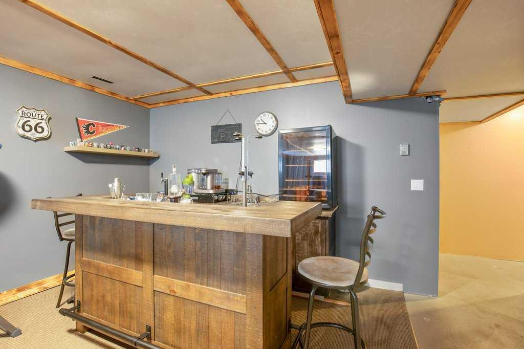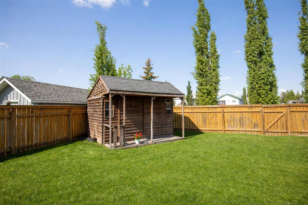 Carstairs is a lovely community offering family friendly neighborhoods and easy access to Calgary. This beautiful bungalow is nestled on a quaint and quiet street. Bordering on a walking path and backing on to a peaceful green space. The handsome exterior features recently updated stucco and stonework. The double attached garage provides plenty of indoor parking with the bonus of in floor heating. Once inside, you will appreciate the open floor plan and natural light streaming thru several large windows. Cuddle up around the gas fireplace and relax in the cozy comfort of the living room. The kitchen offers a large island for additional seating, updated stainless steel appliances, and warm wood cabinetry complimented by a crisp new backsplash. Dine inside or step thru the garden door to enjoy the expansive deck. The backyard is fully fenced for the kids and pets to safely play. The spacious primary bedroom boasts a 3-piece ensuite and wonderful walk-in closet. Two more bedrooms, a 3-piece bathroom, and the luxury of main level laundry complete this floor plan. The basement is partially finished and offers the comfort of in floor heating. The family room is fantastic for entertaining, adjacent to the attractive bar area. Two additional bedrooms and a 3-piece bathroom provide a perfect space for company or older children. With room for the entire family, this home has so much to offer. Schedule your showing today!