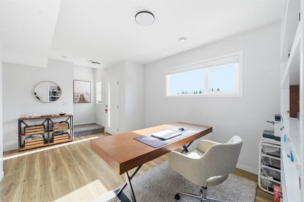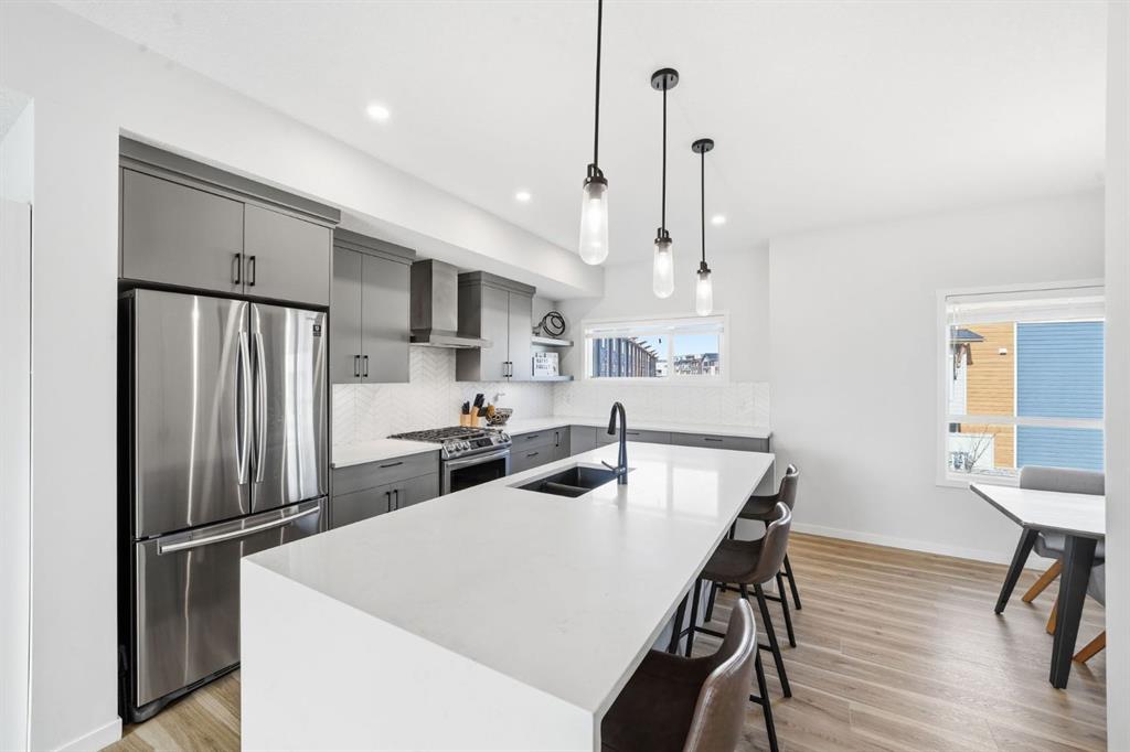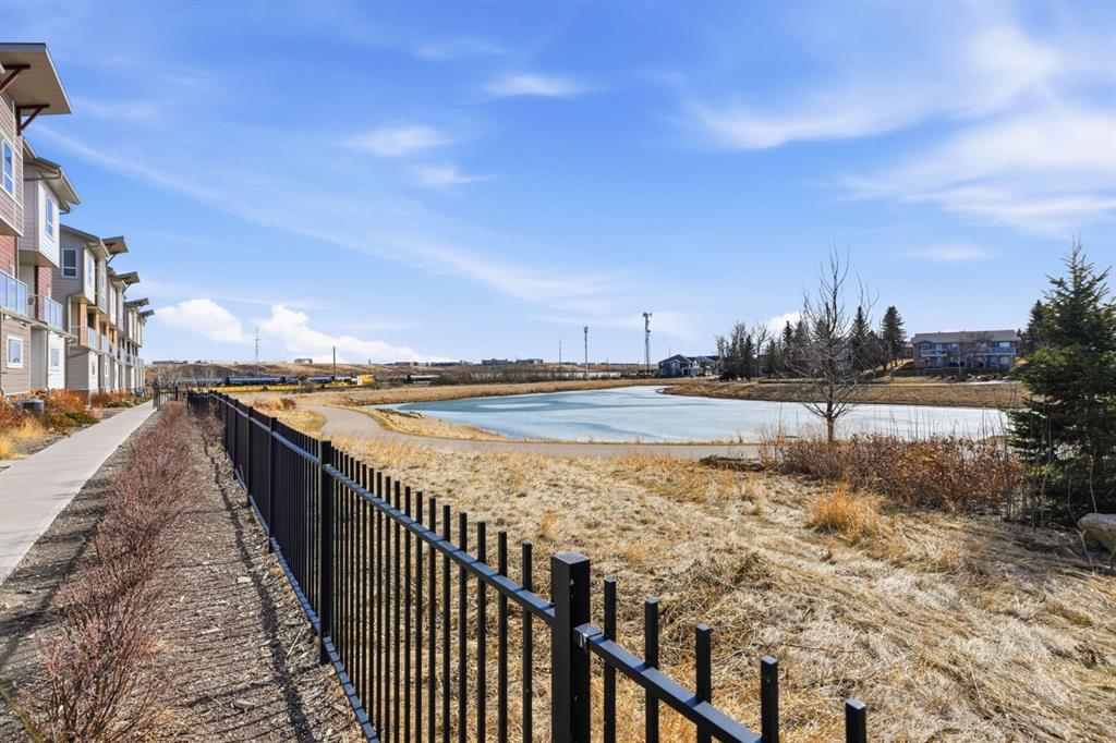 Welcome to this beautifully designed townhome in the highly sought-after community of Harvest Hills. Offering thoughtful layout, elegant finishes, and an exceptional location with serene pond views. Built with premium features from the builder, this home showcases quality and style from the moment you walk in. You’re greeted by a spacious office/den—perfect for working from home or creating a quiet retreat. The second level features a bright, south-facing living room overlooking the pond, filled with natural light and designed for both relaxation and entertaining. From the living room, step out onto your spacious patio, perfectly positioned to take in the tranquil pond views. Complete with a gas line for your BBQ, this outdoor space is ideal for summer entertaining, morning coffee, or simply unwinding in nature’s backdrop. The gourmet kitchen flows seamlessly from the living area, complete with stainless steel appliances, a gas range, a stunning waterfall island, and a spacious dining area ideal for hosting family and friends. A convenient 2-piece powder room completes this level. Upstairs, you’ll find a gorgeous primary bedroom retreat with a beautifully appointed 4-piece ensuite, featuring a double vanity at an accessible height and a large walk-in closet. Two additional generously sized bedrooms, a second well-appointed 4-piece bathroom, and a convenient upper-floor laundry room provide excellent functionality for families or guests. Additional highlights include a double attached garage with an electric heater, panel LED lighting in the garage, central air conditioning, and a Culligan water softener, enhancing comfort and convenience throughout the home. Located close to Harvest Hills Crossing and Country Hills Town Centre, you have shopping, groceries, restaurants, services, and everyday conveniences just minutes away. Quality schools are nearby including Ascension of Our Lord School, Northern Lights School, and Notre Dame High School, making this community ideal for families. With easy access to major routes like Stoney Trail and Deerfoot Trail, commuting across Calgary is quick and convenient. Enjoy a scenic walking path that wraps around the pond, right outside your front door, perfect for morning strolls, evening walks, or jogging. Harvest Hills is known for its family-friendly atmosphere, peaceful lakes, and abundant green space. Offering lifestyle, location, and convenience all in one. A rare opportunity to own a pond-facing townhome with seamless indoor-outdoor flow in one of Calgary’s most desirable north communities, book your showing today!