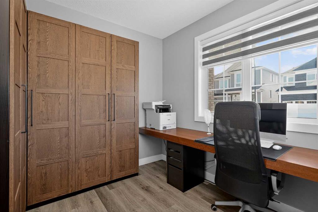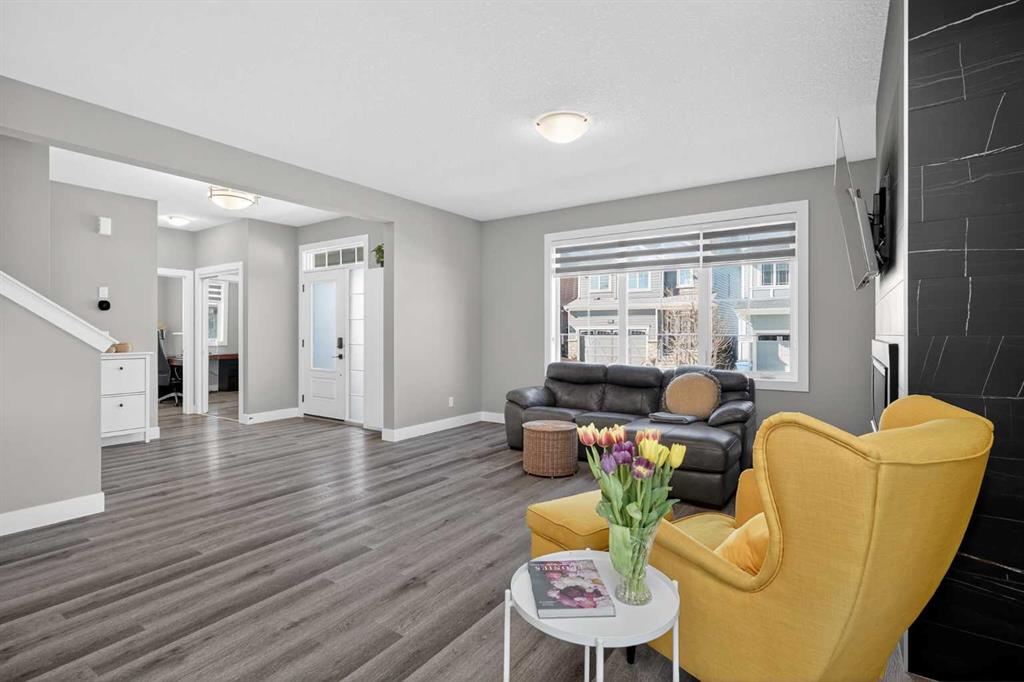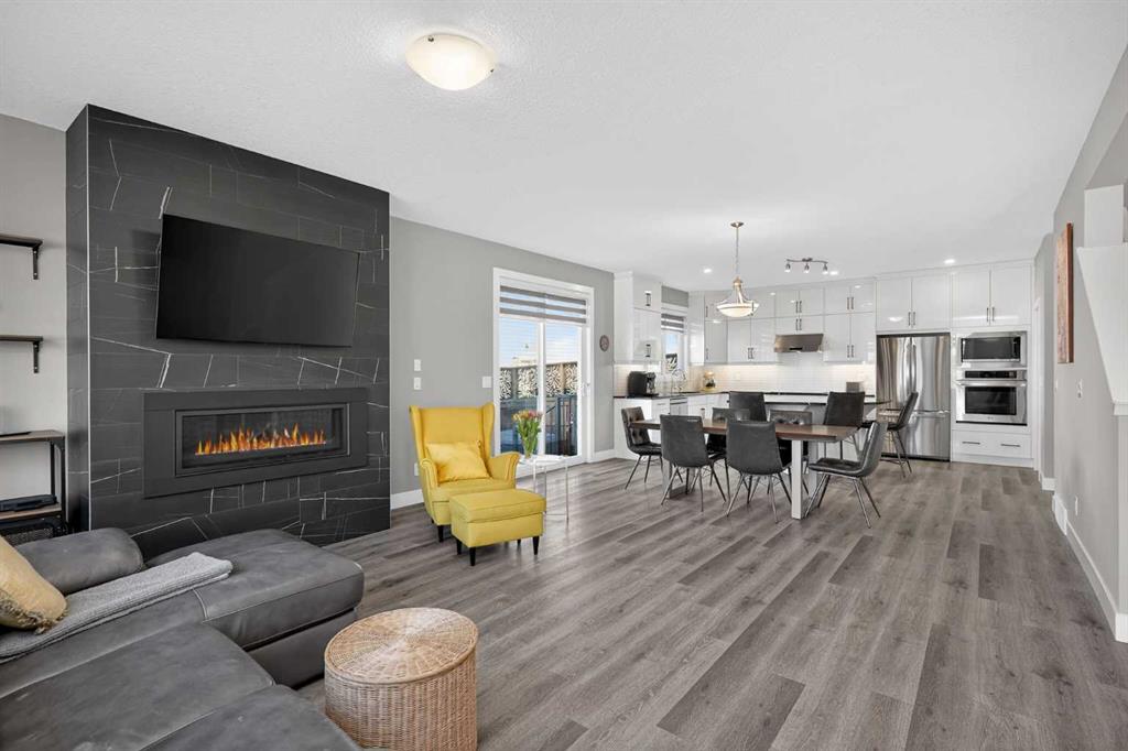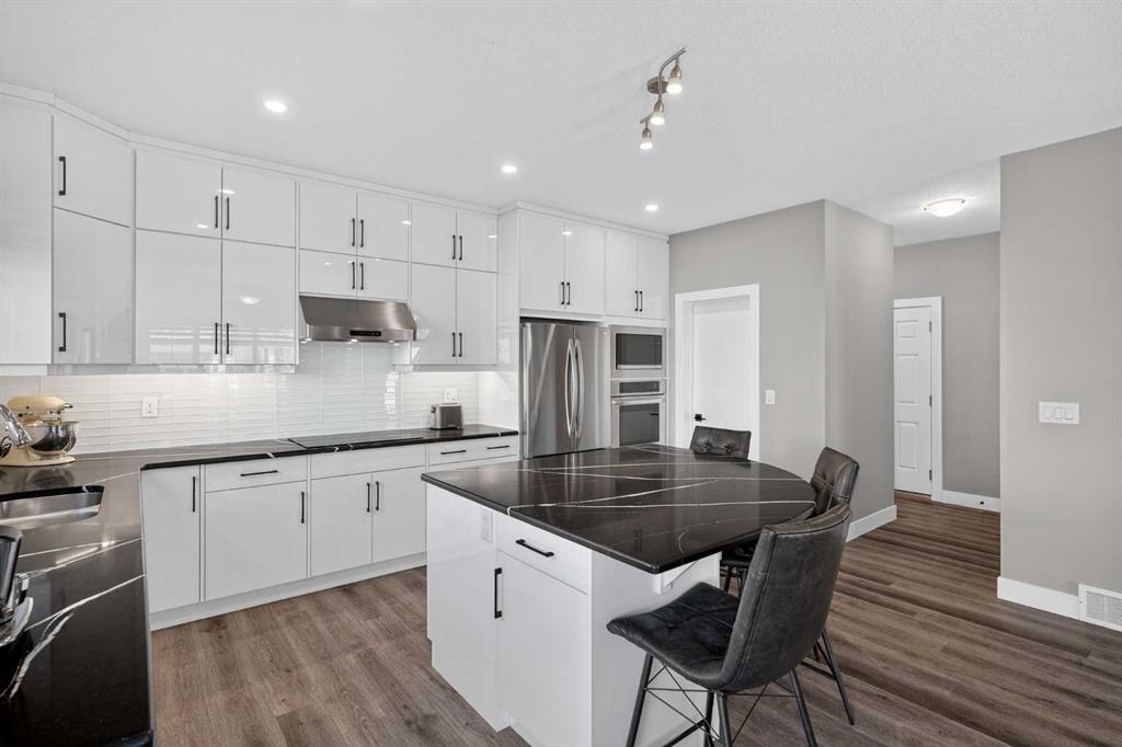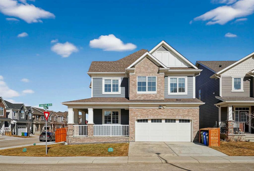 Set on a prominent corner lot in Yorkville, this fully finished 2,414 sq ft home makes a strong first impression with its upgraded Georgian Colonial exterior—an elegant blend of brick and Hardie board, complemented by a welcoming wraparound front porch that adds both charm and usable outdoor space. Inside, the layout is both functional and refined. The main level features 9’ ceilings and durable LVP flooring, with a spacious kitchen designed to anchor the home. Quartz countertops, full-height cabinetry, a built-in wall oven, and a distinctive curved island bring both style and practicality together. The living room is warm and inviting, centred around a 45" fireplace with a full-height tile surround, while the dining area offers a natural space for everyday meals or hosting. There’s a main floor office with a built-in desk and cabinetry that stays, and a mudroom that goes beyond standard—with a built-in dog wash that doubles as the perfect spot for muddy boots or cleanup after a long day. Upstairs, enjoy the grand feeling of 9’ ceilings with four well-proportioned bedrooms, including a primary suite with a 5-piece ensuite and walk-in closet. There’s even a bright bonus room, adding flexibility for relaxing or gathering, and the laundry room is finished with custom-built-in cabinetry for added convenience. A second full 5-piece bathroom, with an additional central cabinet, completes the upper level. The builder professionally finished the basement, extending the living space with a large family room, a fifth bedroom, a 3-piece bathroom, and a substantial storage area. The pool table can be included, creating an easy transition into a fully usable lower level. Outside, the landscaping is complete and thoughtfully designed, featuring a large low-maintenance deck, stonework, and a fully fenced yard that’s ready to enjoy. The corner lot provides additional light and space, complemented by a double-attached garage, driveway, and ample street parking. The home is also equipped with a Kinetico water system, adding an extra layer of everyday comfort and quality. Yorkville is a growing southwest Calgary community known for its wide streets, planned green spaces, and pathway connections. With convenient access to Macleod Trail and Stoney Trail, along with nearby shopping, dining, and everyday amenities, it offers a balanced lifestyle with both accessibility and room to grow. A well-executed home with meaningful upgrades, a functional layout, and a finished outdoor space that’s ready from day one.