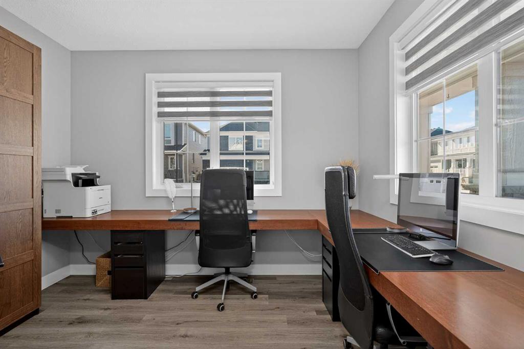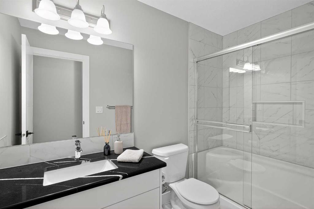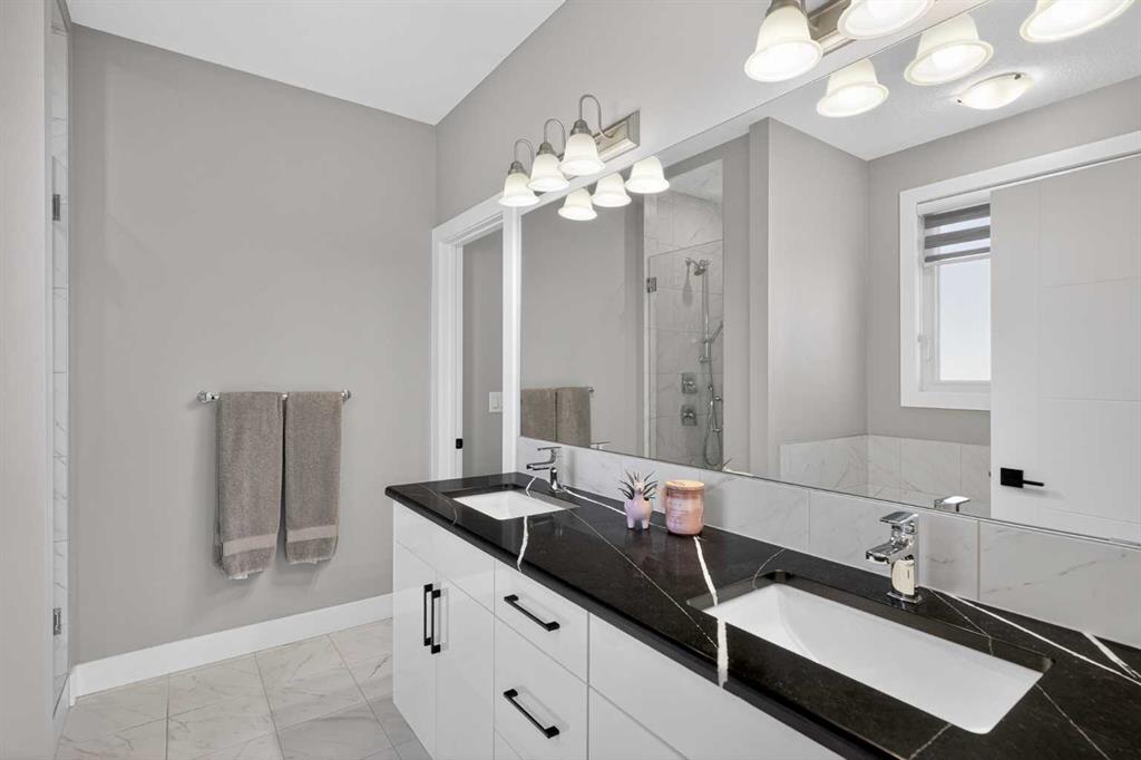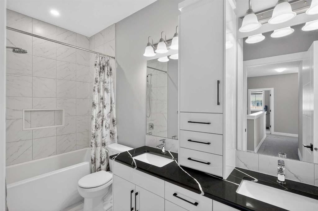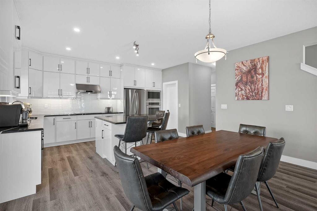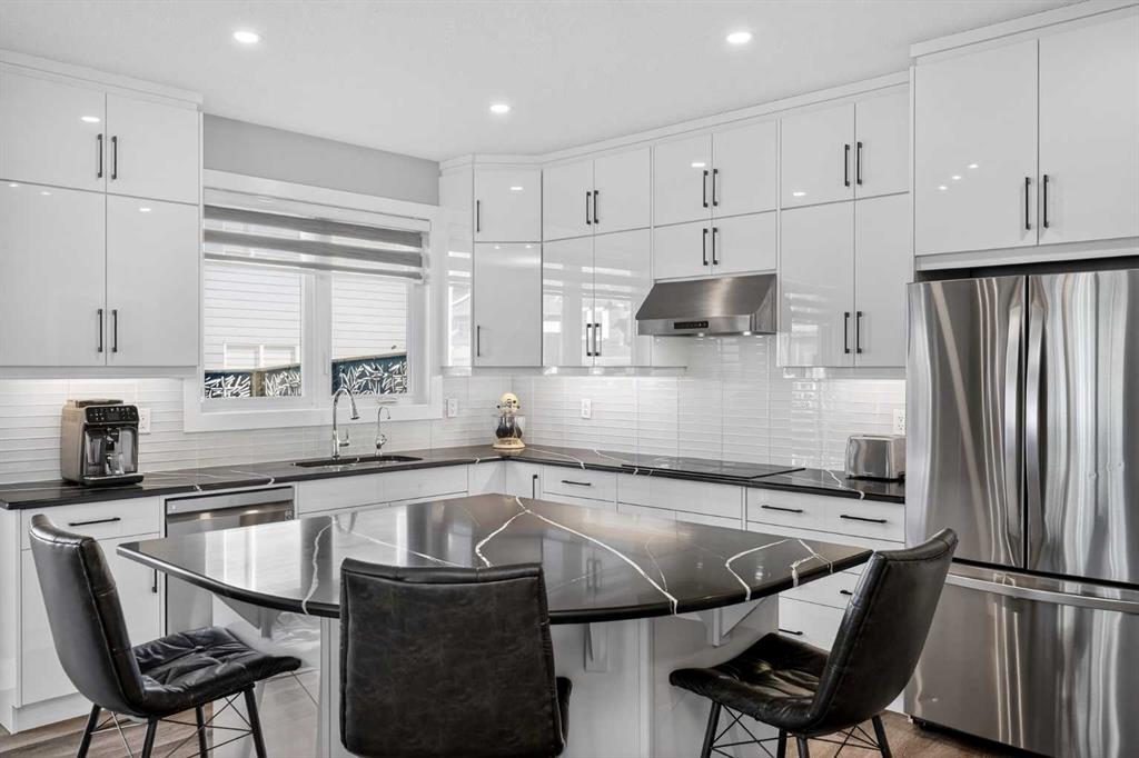 Set on a prominent corner lot in Yorkville, this fully finished 2,414 sq ft home makes a strong first impression with its upgraded Georgian Colonial exterior—an elegant blend of brick and Hardie board, complemented by a welcoming wraparound front porch that adds both charm and usable outdoor space. Inside, the layout is both functional and refined. The main level features 9’ ceilings and durable LVP flooring, with a spacious kitchen designed to anchor the home. Quartz countertops, full-height cabinetry, a built-in wall oven, and a distinctive curved island bring both style and practicality together. The living room is warm and inviting, centred around a 45" fireplace with a full-height tile surround, while the dining area offers a natural space for everyday meals or hosting. There’s a main floor office with a built-in desk and cabinetry that stays, and a mudroom that goes beyond standard—with a built-in dog wash that doubles as the perfect spot for muddy boots or cleanup after a long day. Upstairs, enjoy the grand feeling of 9’ ceilings with four well-proportioned bedrooms, including a primary suite with a 5-piece ensuite and walk-in closet. There’s even a bright bonus room, adding flexibility for relaxing or gathering, and the laundry room is finished with custom-built-in cabinetry for added convenience. A second full 5-piece bathroom, with an additional central cabinet, completes the upper level. The builder professionally finished the basement, extending the living space with a large family room, a fifth bedroom, a 3-piece bathroom, and a substantial storage area. The pool table can be included, creating an easy transition into a fully usable lower level. Outside, the landscaping is complete and thoughtfully designed, featuring a large low-maintenance deck, stonework, and a fully fenced yard that’s ready to enjoy. The corner lot provides additional light and space, complemented by a double-attached garage, driveway, and ample street parking. The home is also equipped with a Kinetico water system, adding an extra layer of everyday comfort and quality. Yorkville is a growing southwest Calgary community known for its wide streets, planned green spaces, and pathway connections. With convenient access to Macleod Trail and Stoney Trail, along with nearby shopping, dining, and everyday amenities, it offers a balanced lifestyle with both accessibility and room to grow. A well-executed home with meaningful upgrades, a functional layout, and a finished outdoor space that’s ready from day one.
