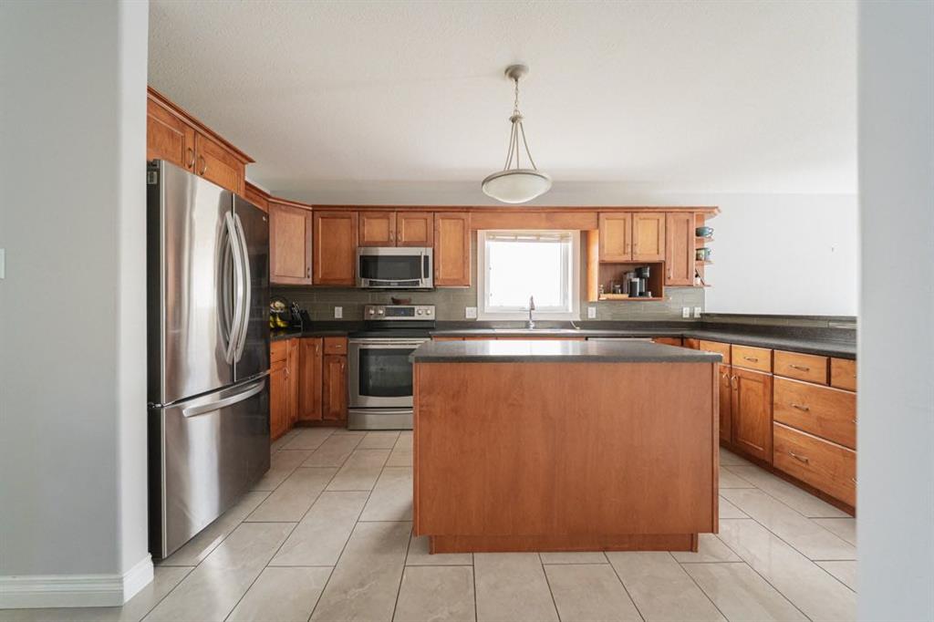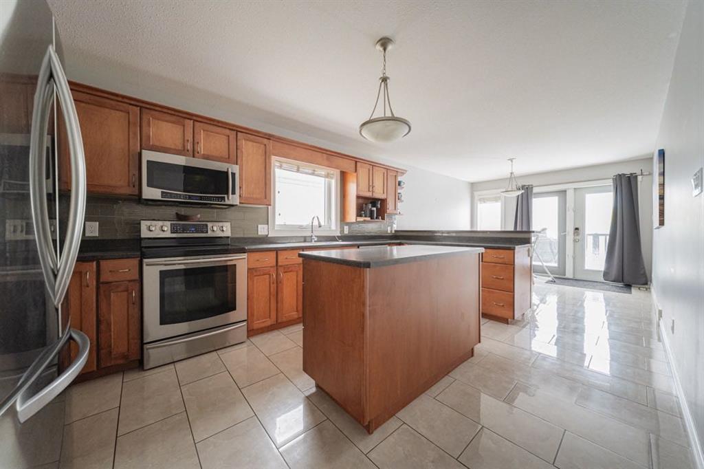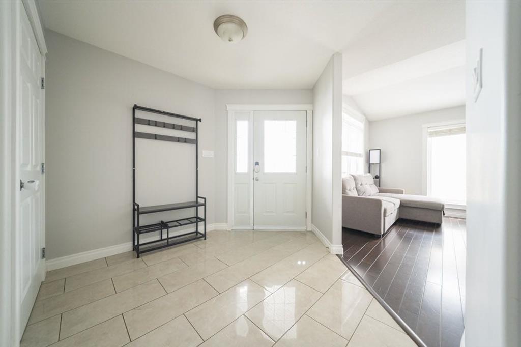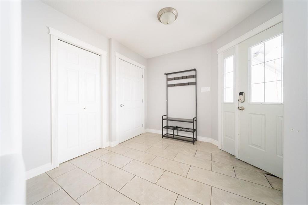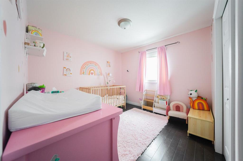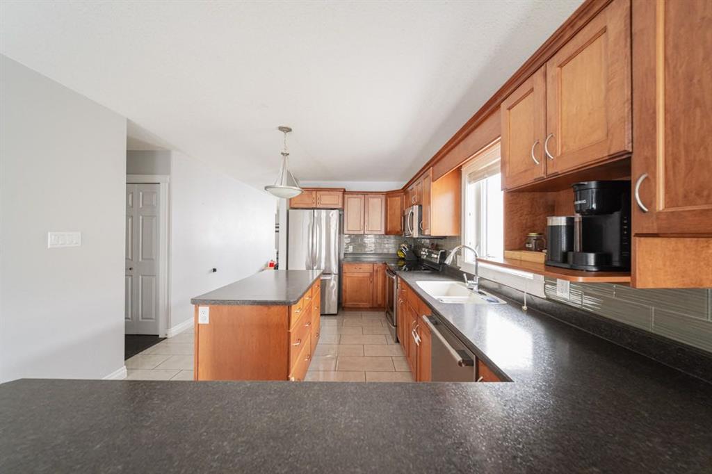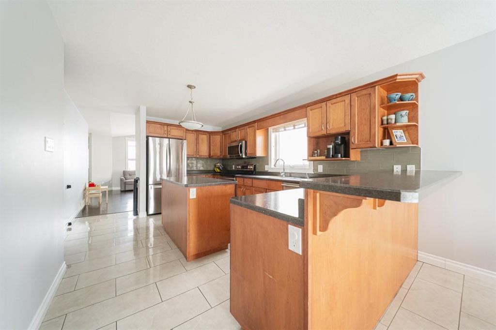Welcome to 241 Crown Creek Lane, a well maintained raised bungalow offering modern curb appeal, a spacious layout, and one of the standout garage setups in the neighbourhood. With its white vinyl exterior, black trim, and dual overhead garage doors, this home makes a strong first impression from the moment you arrive. The covered front porch welcomes you inside to a bright main level featuring hardwood flooring and large windows that fill the living room with natural light. The kitchen offers a functional layout with plenty of cabinet and counter space, a subway tile backsplash, stainless steel appliances, and both an island and eat up peninsula for everyday convenience. Tile flooring runs through the kitchen, dining area, entry, and bathrooms for a clean and cohesive look. Main floor laundry adds to the home’s practicality. On the main level, you will find three bedrooms including a spacious primary suite with both a walk in closet and additional wall closet, along with a private ensuite featuring a two person tub and separate shower. The additional bedrooms are well sized, and a full bathroom completes the main level. Hardwood flooring continues through the bedrooms, offering a low maintenance and modern feel throughout. The separate entry fully developed basement offers even more expansive living space with a large family room, wet bar with eat up area, three additional bedrooms, and a three piece bathroom. With its side entry, this level provides excellent flexibility for guests, extended family, or future use options. Outside, enjoy a large two tiered deck overlooking the fully fenced yard that backs directly onto a school with convenient gate access. A shed provides additional storage, and the yard offers a great space for families or entertaining. One of the home’s most impressive features is the massive attached double garage. Heated with high ceilings, epoxy floors, built in upper and lower cabinetry, and a workbench, this space is ideal for projects, storage, or anyone needing a true functional garage. Additional highlights include central air conditioning installed in 2025 and a layout designed for comfortable everyday living. 241 Crown Creek Lane offers space, functionality, and an incredible garage in a family friendly location close to schools and amenities. Schedule your private showing today.