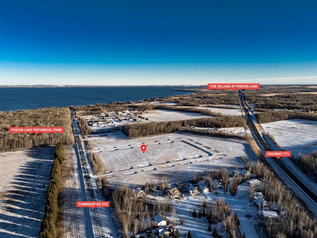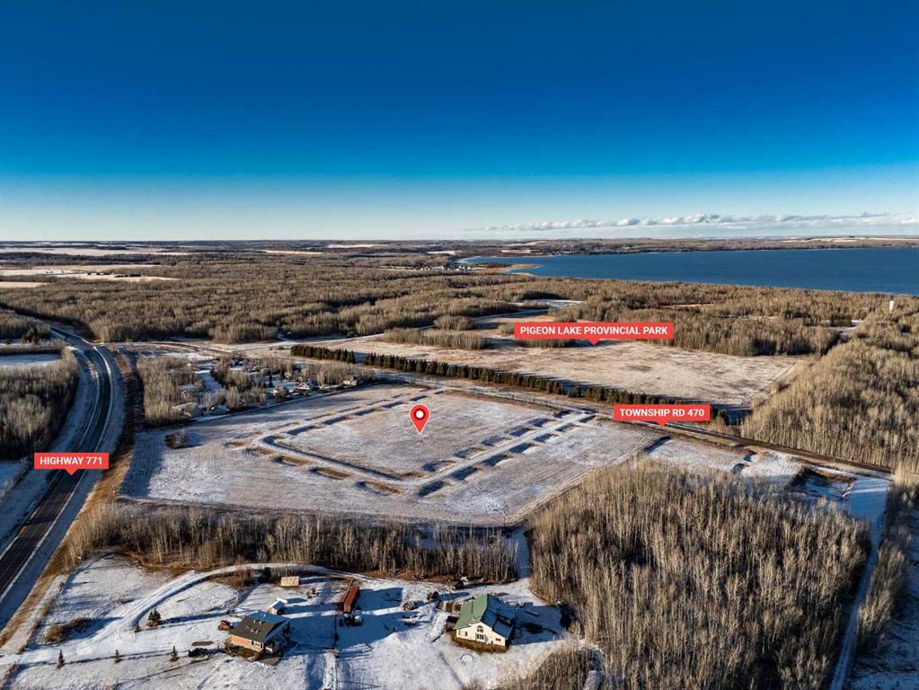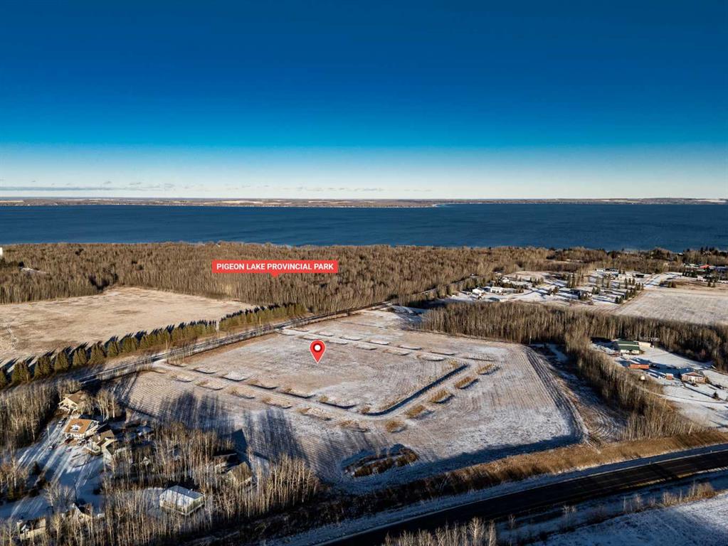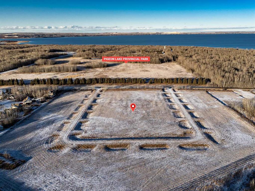Start the Car!! Experience this Unique Investment Opportunity where this Expansive Acreage meets an Enviable Lake-Area Lifestyle! A 19+/- acre parcel is a rare find of this size in a Prime Location, making it a compelling land investment in a high-potential area. It is Well Positioned in a Four Season Vibrant Recreational Area just minutes to Pigeon Lake Provincial Park. Water Sports, Golfing & Amenities at The Village at Pigeon Lake near by. This is a remarkable opportunity to shape something truly special and is ideal for those seeking flexibility or long-term value as a legacy property. Whether your vision be for a Personal Estate or the Start of Something Bigger, the undeniable appeal of the backdrop of elevated views of Pigeon Lake will capture you on this blank canvas parcel. This parcel is well suited for future development nestled between 2 established friendly subdivisions. Currently roads, approaches and culverts are in place for a 30 lot subdivision concept. (subject to approvals).