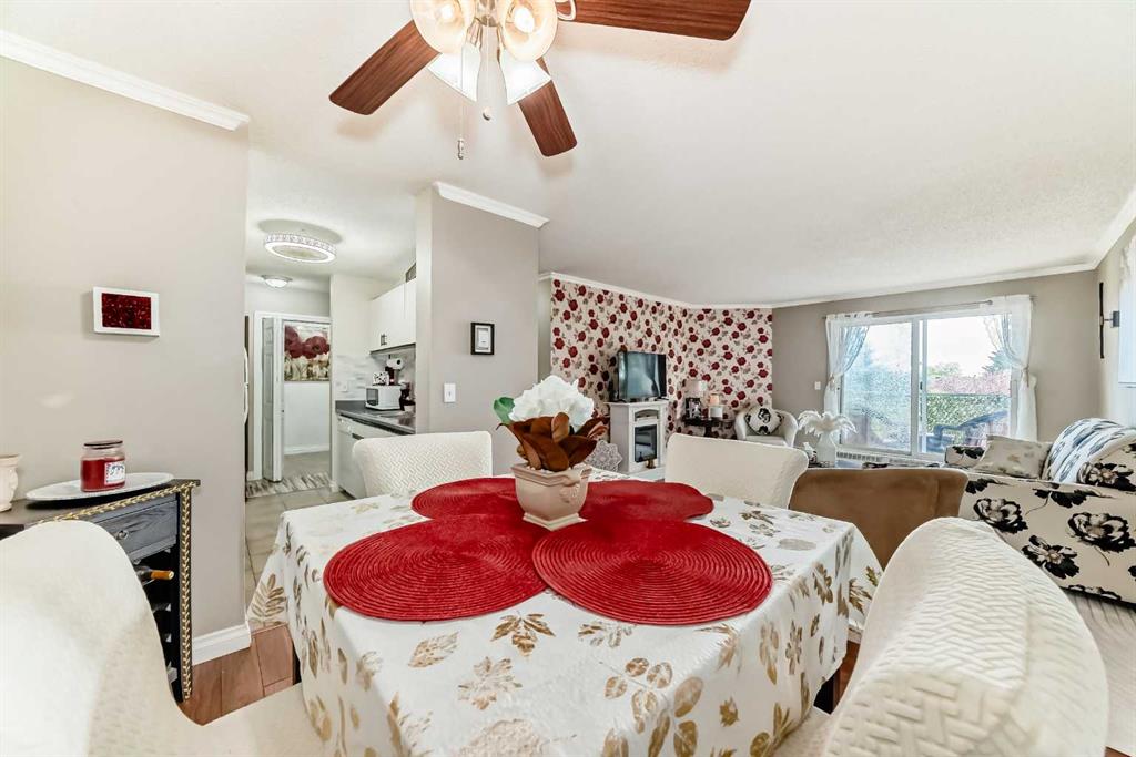 Enjoy unbeatable connectivity with quick access to downtown, Deerfoot Trail, and Stoney Trail — an ideal location for commuters and city explorers alike. Welcome to Dover Pointe, where homeownership becomes an attainable and rewarding step forward. This bright and thoughtfully updated two-bedroom, one-bath condo is perfectly situated on the third floor, offering beautiful southwest-facing views from your private balcony — the perfect place to enjoy your morning coffee or unwind at the end of the day. Inside, a functional galley-style kitchen has been tastefully refreshed with new tile, a new hood fan, ceiling fan, and a newer stove, blending everyday practicality with modern updates. The adjacent dining area flows seamlessly into a spacious, sun-filled living room, creating an inviting space for both entertaining and relaxing. The home features durable laminate flooring throughout the main areas, elegant crown moulding, and brand-new carpet in both bedrooms for added comfort. Each bedroom offers generous closet space, while the convenience of in-suite laundry enhances day-to-day living. This well-managed, pet-friendly complex includes heat and water in the condo fees, along with an assigned outdoor parking stall. Enjoy nearby green space at Southview Off-Leash Park just a short walk away, plus easy access to a variety of local dining options and the extensive amenities of Deerfoot Meadows, including IKEA, Costco, and more. Whether you're a first-time buyer or looking to downsize, this home offers exceptional value, comfort, and convenience — a smart alternative to renting.
