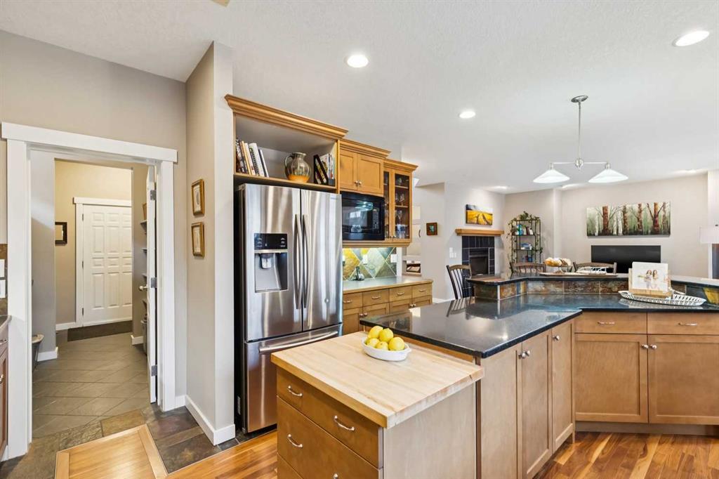 Located in the highly desirable neighbourhood of Wentworth, one of Calgary’s most sought-after southwest neighborhoods, this exceptional property offers the perfect blend of space, comfort, and convenience. Known for its family-friendly atmosphere, top-rated schools, and quick access to amenities and major routes, West Springs is an ideal place to call home. Proudly offered by the original owners, this home showcases classic curb appeal true to the area, highlighted by a well-maintained exterior, exposed aggregate driveway, and an oversized double attached garage. The roof was replaced in November 2023 with hail-resistant shingles, and central A/C was installed in summer 2023, offering year-round comfort and peace of mind. Boasting over 3,460 sq ft of developed living space, the interior features rich walnut hardwood flooring, recessed lighting, and a stunning two-sided gas fireplace that creates a warm and inviting atmosphere throughout the main living areas. The spacious kitchen is designed for both function and style, complete with a breakfast bar and a generous nook—perfect for family living and entertaining. Upstairs, you’ll find well-appointed bedrooms with walk-in closets and custom closet organizers. The primary suite offers a relaxing retreat with a five-piece ensuite, including a soaker tub and separate shower. The fully developed lower level is ideal for entertaining, featuring a dry bar with beverage fridge, a cozy corner gas fireplace in the rec room, and plenty of additional living space. Step outside to your private backyard oasis with a large Trex deck, outdoor fireplace with patio, and hot tub with new cover, all within a fully fenced yard with low-maintenance landscaping and added storage. Additional updates include a new washer and dryer installed in summer 2025. Walk to three schools, numerous shops, restaurants, and bars, making this home not only spacious and comfortable but perfectly located for everyday convenience. This is a rare opportunity to own a beautifully maintained, extensively updated home in one of Calgary’s premier communities.