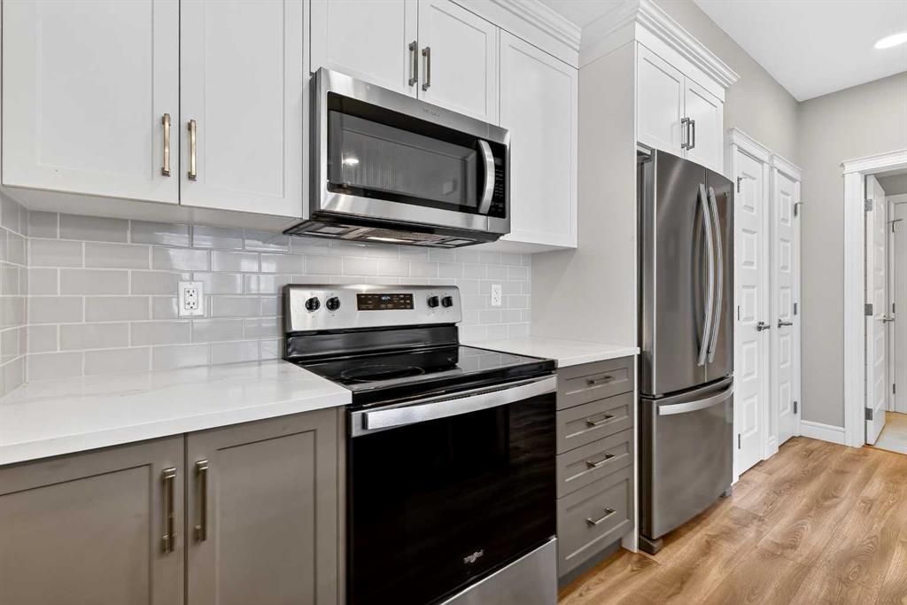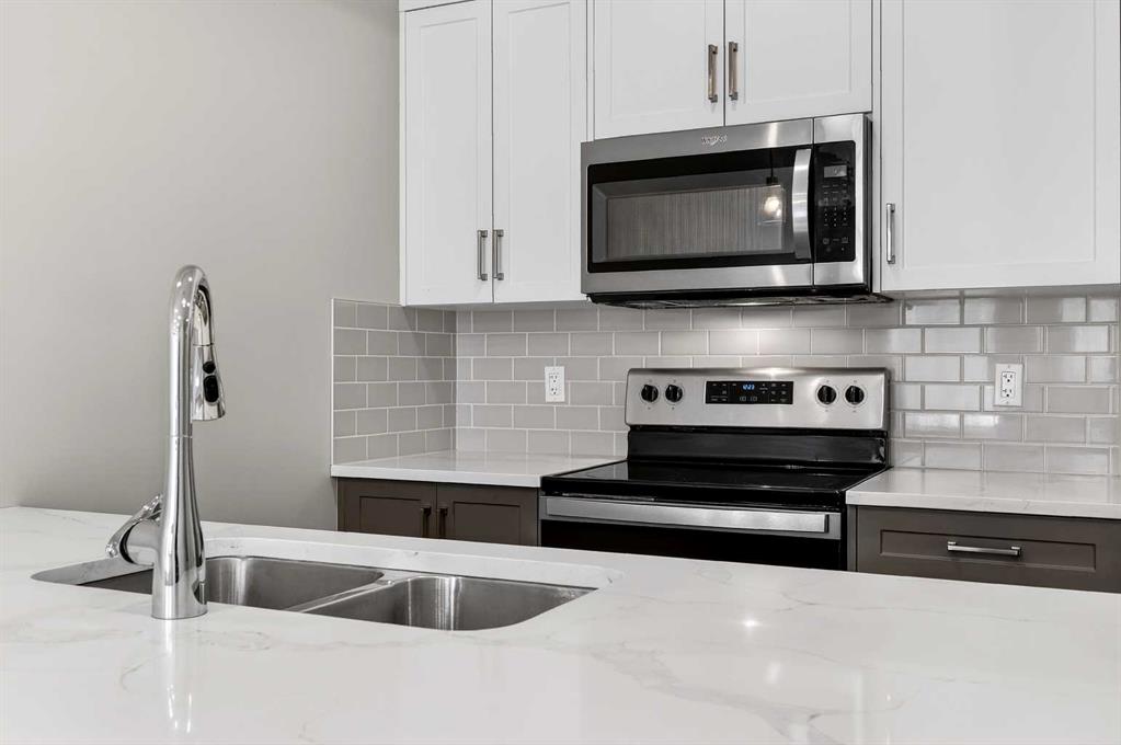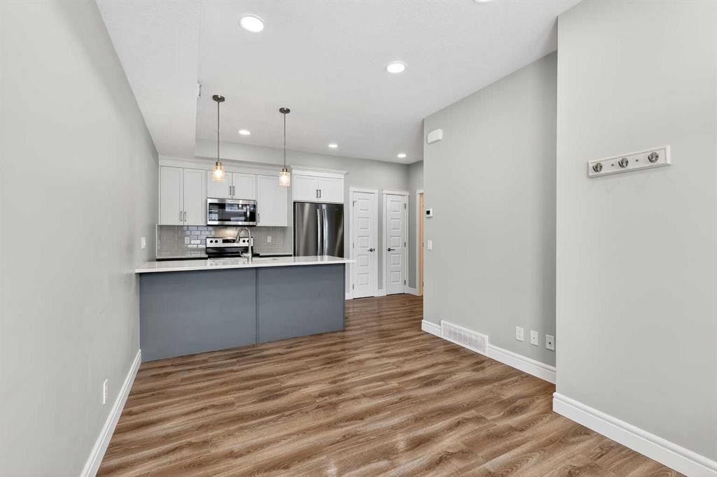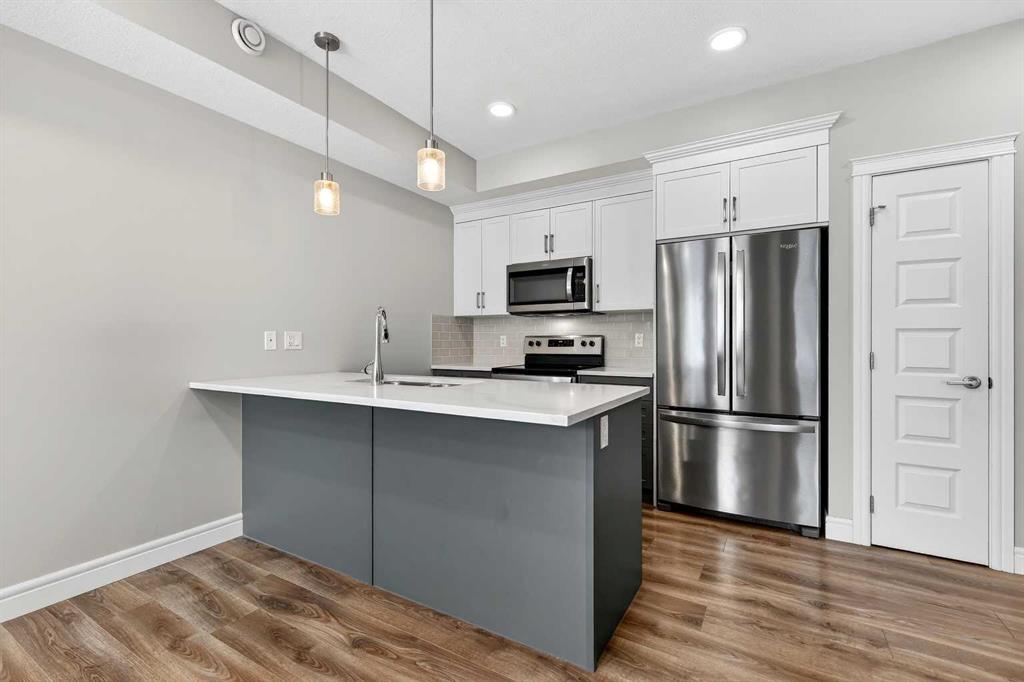 Welcome to this perfect starter home designed with ample living space and a welcoming layout that’s ideal for entertaining - The “Cedar,” built by Rohit Communities. It’s especially well-suited for healthcare professionals or anyone eager to enjoy the vibrant, walkable lifestyle of Seton, with its restaurants, shops, and everyday amenities just steps away. This is a great opportunity to transition from renting to owning a brand-new, low-maintenance home. Showcasing the ‘Contemporary Classic’ Designer Interior, the home features two-tone cabinetry with crisp white uppers and sleek grey lowers, complemented by warm wood accents, plush carpeting, brushed chrome fixtures, and stylish designer lighting. The property also includes a titled parking stall and low condo fees!