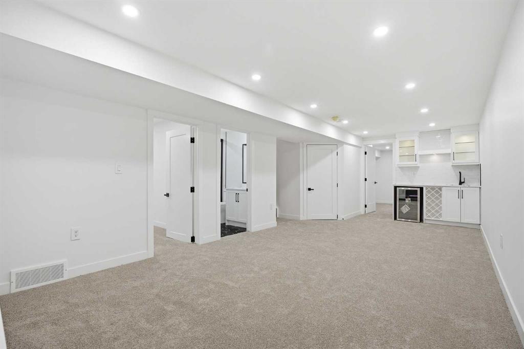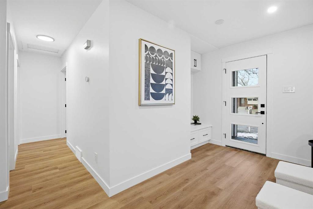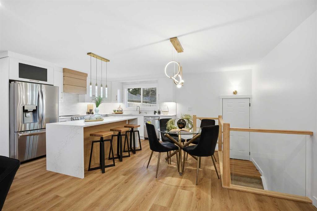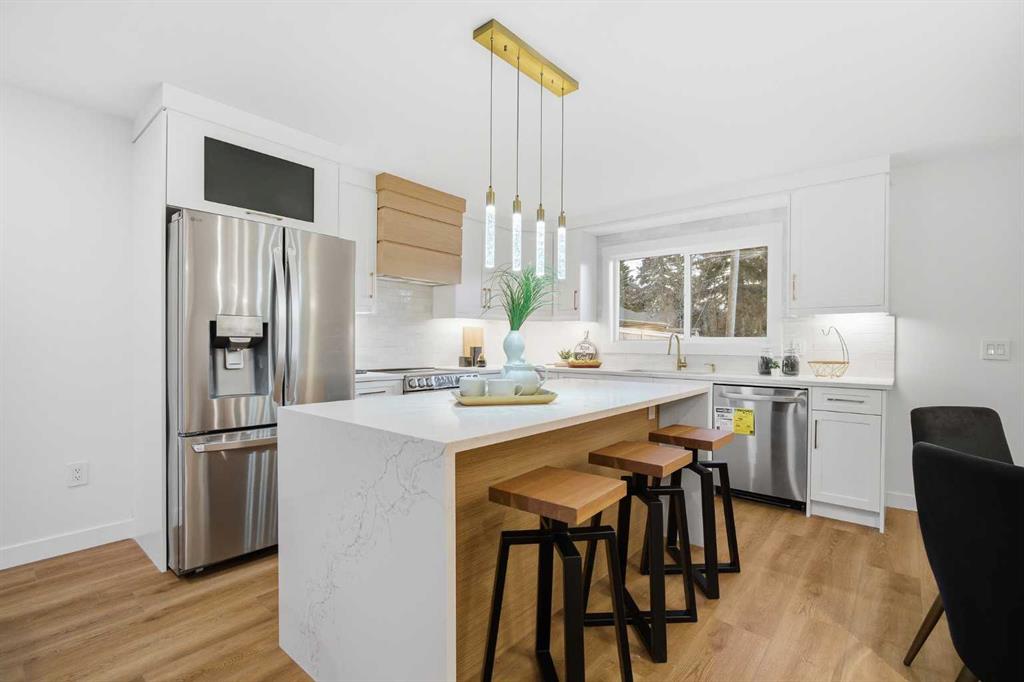 | EXTENSIVELY RENOVATED | ALL PERMITS PULLED | FITNESS ROOM/GYM | WET BAR | NEW DOUBLE GARAGE | Modern living starts here—welcome to this extensively renovated, down-to-the-studs bungalow in the sought-after community of Acadia, where thoughtful design, quality craftsmanship, and luxury finishes come together seamlessly. Completely redone inside and out, this home features a new exterior, brand new garage, furnace, hot water tank, windows, doors, trims, flooring, custom cabinetry, and rough-ins for security cameras. Every detail has been carefully curated to offer both style and functionality for today’s lifestyle. Perfectly situated just steps from schools, parks, and playgrounds, and only minutes to shopping and amenities along Macleod Trail and Heritage Drive, the location offers unbeatable convenience. From the moment you arrive, you’re welcomed by a charming front porch and standout curb appeal with board and batten siding, custom lighting, and large windows that create a clean, modern aesthetic. Inside, a spacious entryway features a built-in front closet and opens into a bright, open-concept main floor finished with warm luxury vinyl plank flooring throughout. The living room is anchored by a tiled fireplace feature wall and a large picture window that fills the space with natural light. The kitchen is designed to impress, showcasing shaker cabinetry, quartz countertops, a statement island, oak finishes and stainless steel appliances. The adjacent dining area is highlighted by a designer light fixture and complimented perfectly by the glass railing. Down the hall, you’ll find a beautifully finished 4-piece bathroom with custom tile work. The primary bedroom offers a true retreat with space for a king-sized bed and a fully built-out closet with custom cabinetry, along with a spa-inspired 5-piece ensuite complete with a dual vanity, freestanding fluted tub, and a glass shower. An additional bedroom with a built closet and large window completes the main level. The fully developed basement adds incredible versatility, featuring a large recreation space, a sleek bar, a modern 3-piece bathroom, and two generously sized bedrooms—perfect for guests, extended family, or multi-generational living. The laundry room is thoughtfully designed to double as a fitness space/gym, adding even more functionality to the home. Outside, enjoy a spacious yard with a concrete patio perfect for summer BBQs. The brand new oversized double garage is perfect for car enthusiasts or additional storage. Stylish, functional, and truly move-in ready, this is a rare opportunity to own a turn-key home in one of Calgary’s most established communities. Book your private showing today.
