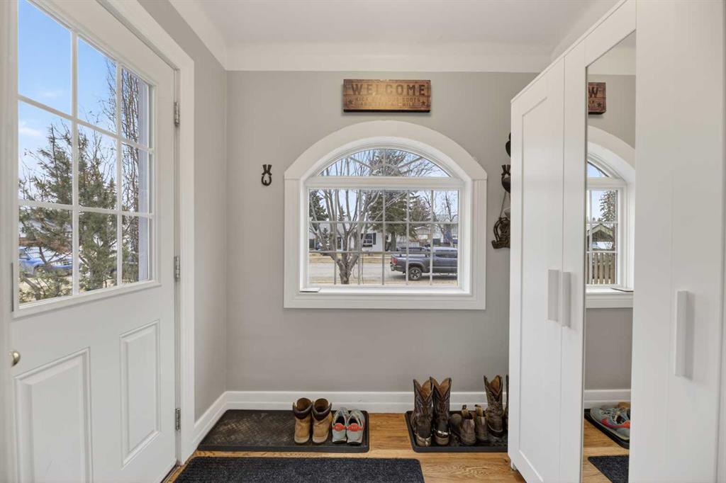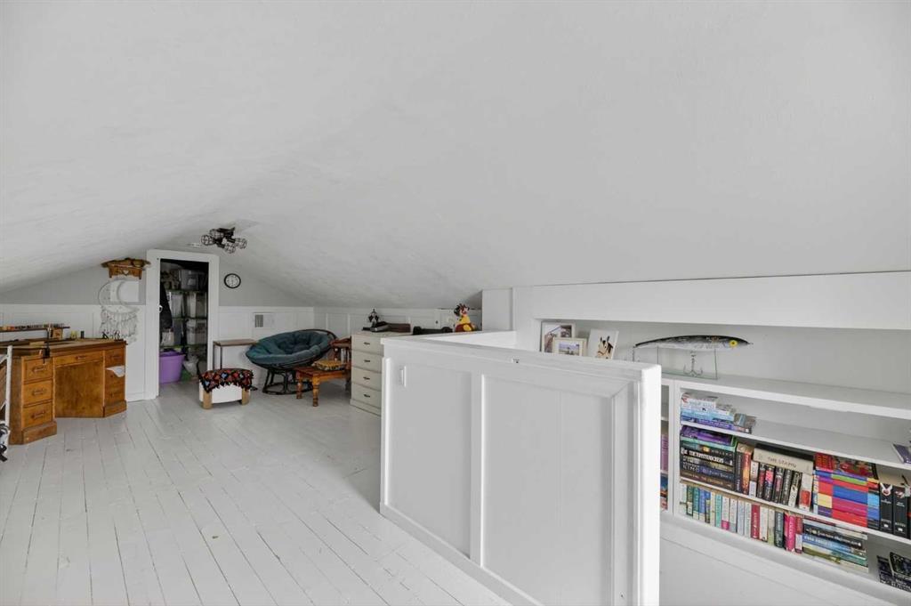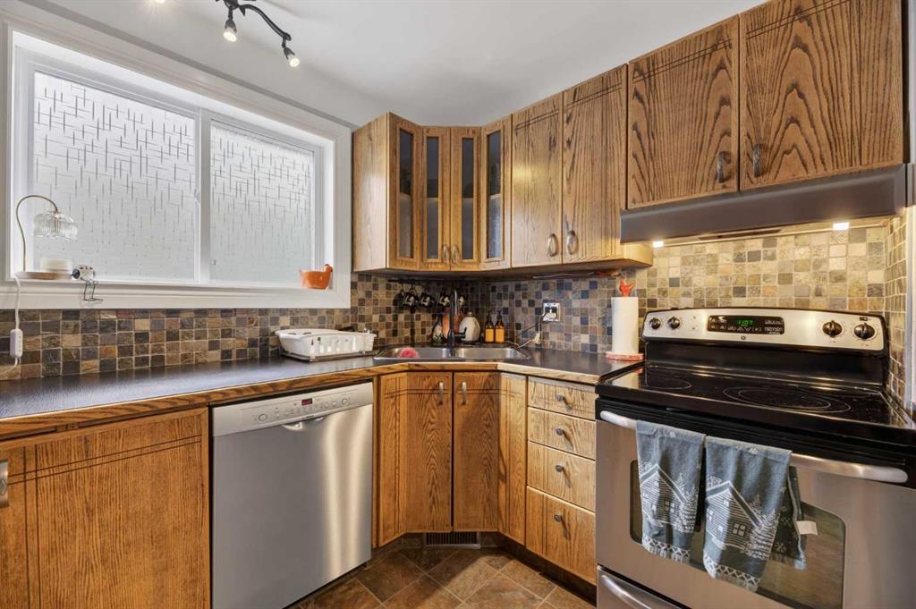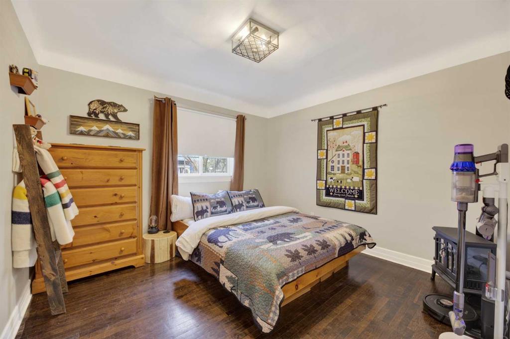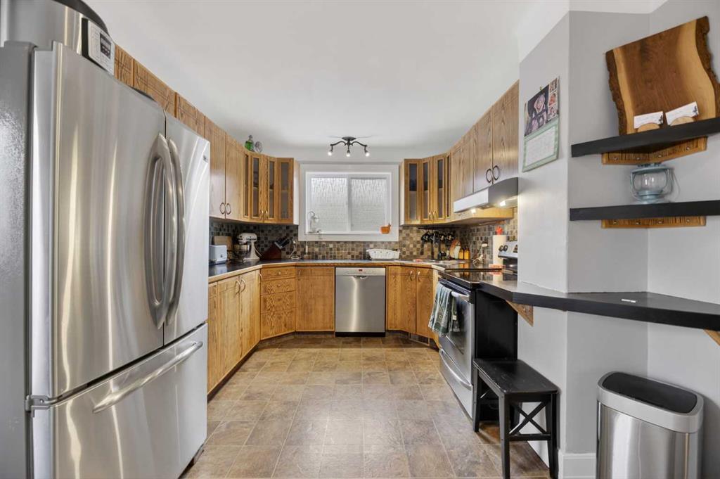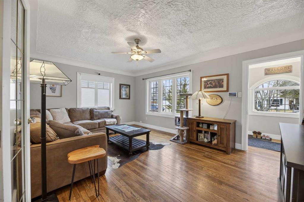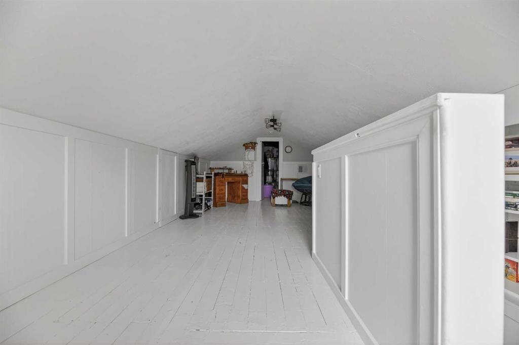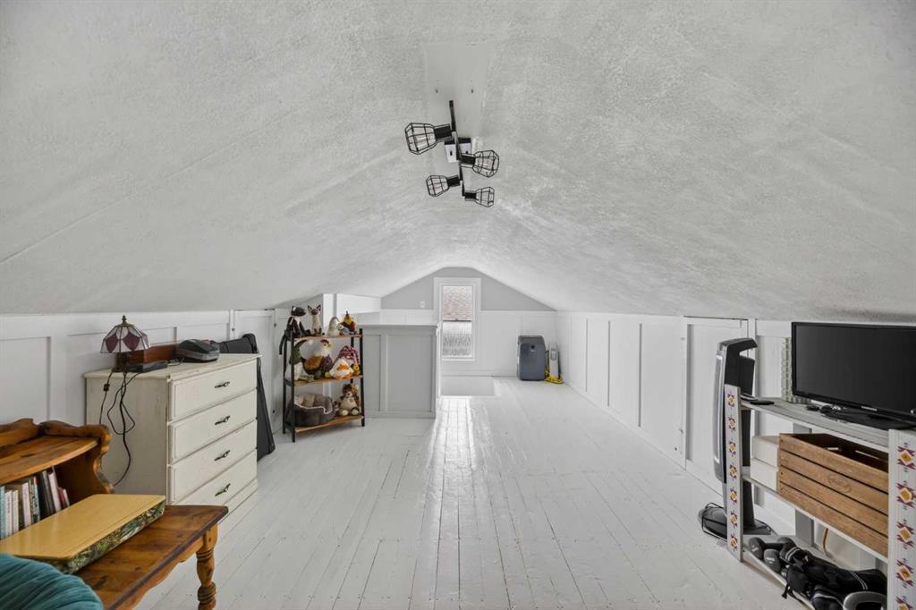 Discover this beautifully updated heritage home, offering a quiet sanctuary in the heart of family-friendly Crossfield. Perfectly located just minutes from schools, a splash park, tennis courts, playgrounds, and an off-leash dog park, this home seamlessly blends original character with modern convenience. Enjoy stunning, refinished hardwood floors, plaster ceilings, and crown moldings, complemented by a high-efficiency furnace, updated electrical, and newer windows/doors. The bright living room invites relaxation, while the renovated kitchen boasts stainless steel appliances, upgraded cabinetry, and a sleek backsplash. The main level offers two spacious bedrooms and a refreshed 4-piece bath. A versatile finished attic works perfectly as an office or playroom, while the massive basement rec room offers ample room for entertainment, & features a 3rd bedroom with a chic barnwood feature wall and a new 3-piece bath. Outside, an expansive deck overlooks an oversized, mature-landscaped yard—perfect for summer BBQs. Walk to amenities, the stocked trout pond, or golf course!