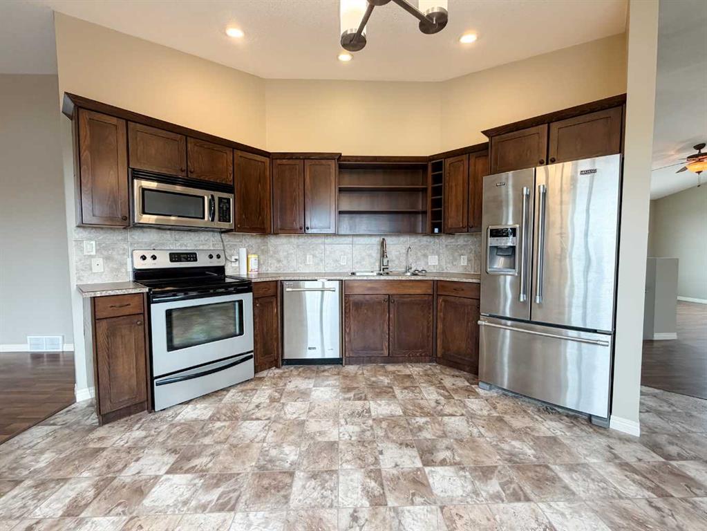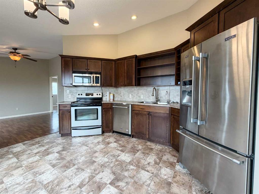 Escape to country living with this beautiful 11-acre property, perfectly set up for horse enthusiasts! This well-maintained 1,344 sq ft home, built in 2008, features a fully developed walkout basement and offers 5 spacious bedrooms and 3 bathrooms. The large primary suite includes a private 4-piece ensuite, creating a comfortable retreat at the end of the day. The walkout basement provides additional living space and easy access to the outdoors—ideal for family living or entertaining. Outside, this property truly shines with a 60x140 shop/barn complete with a riding arena, corrals, and ample space for your horses and equipment. Whether you're an equestrian enthusiast or simply looking for space and privacy, this setup is ready to go. Conveniently located just 20 minutes from Drumheller and 40 minutes to Stettler, you can enjoy peaceful rural living without sacrificing access to nearby amenities. A rare opportunity to own a fully equipped acreage with unbeatable views.