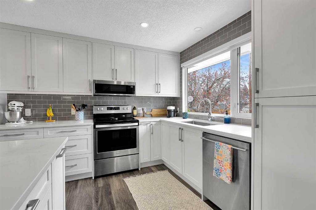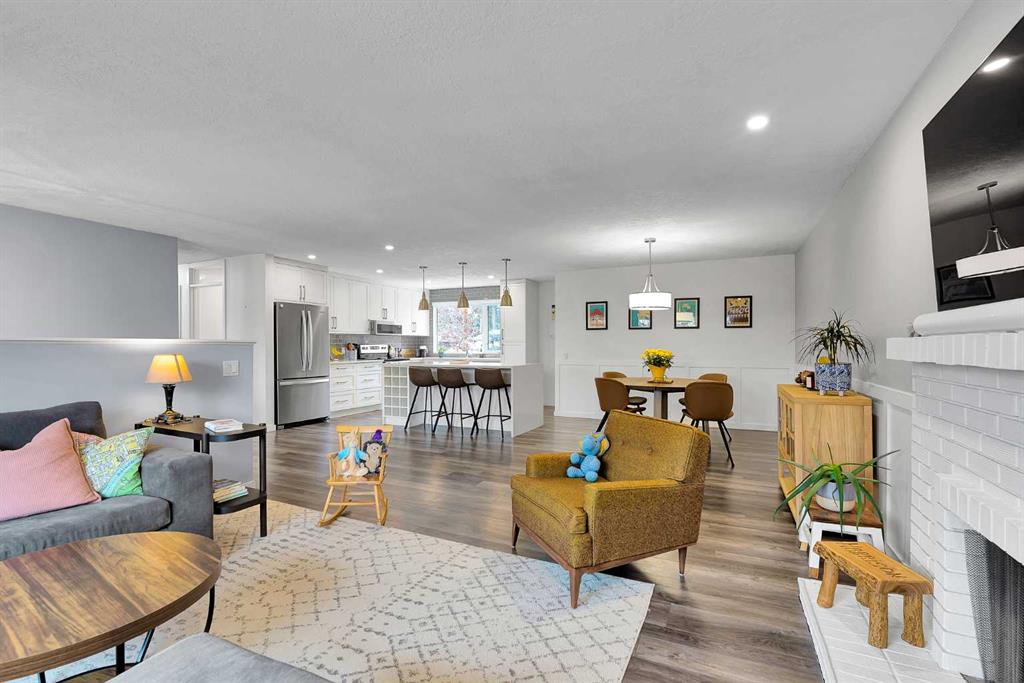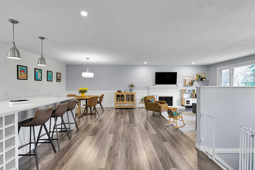 Beautifully updated and move-in ready, this impressive Dalhousie bi-level is ideally located on a quiet street surrounded by upgraded high-end homes and the bike path outside the backyard gate. Set on a huge lot, this home offers the perfect blend of comfort, style, and location in one of NW Calgary's most established old school neighbourhoods. The bright open concept main floor features a fully renovated kitchen with large functional quartz island, upgraded appliances , plenty of space for dining, living and a wood burning fireplace which is a rarity today. Three spacious bedrooms upstairs include a primary with full ensuite ensures space and flexible living. The third bedroom opens up onto a sunny brand new 21ft x 10ft composite deck to enjoy the days of sunshine and for outdoor living. The lower level offers a large family area with additional wood burning fireplace, 4th bedroom and 2pc bathroom. The oversized double attached garage is surprisingly spacious and easily holds 2 vehicles with enough room for a workshop, additional storage and easy access to the home. Outside you will be delighted with a huge yard so rare in new builds. The bike path behind the home is cleared in the winter ideal for walks and for kids to safely play off the street. Everything you could possibly need like C-train, shopping, parks and schools are all here. This turnkey home is an excellent opportunity to get into this desirable neighbourhood in a prime location.