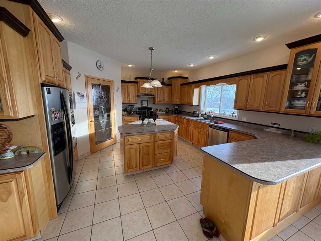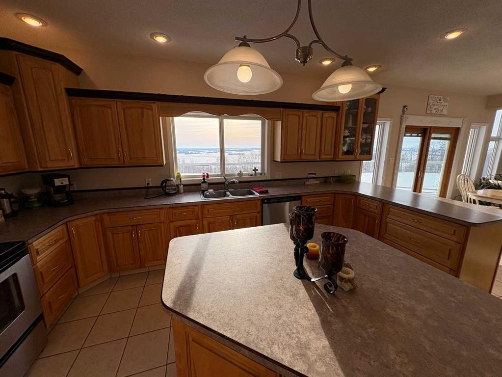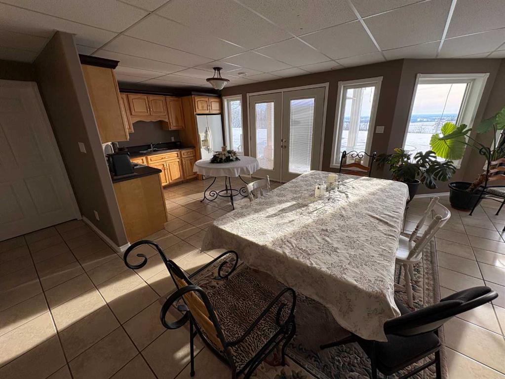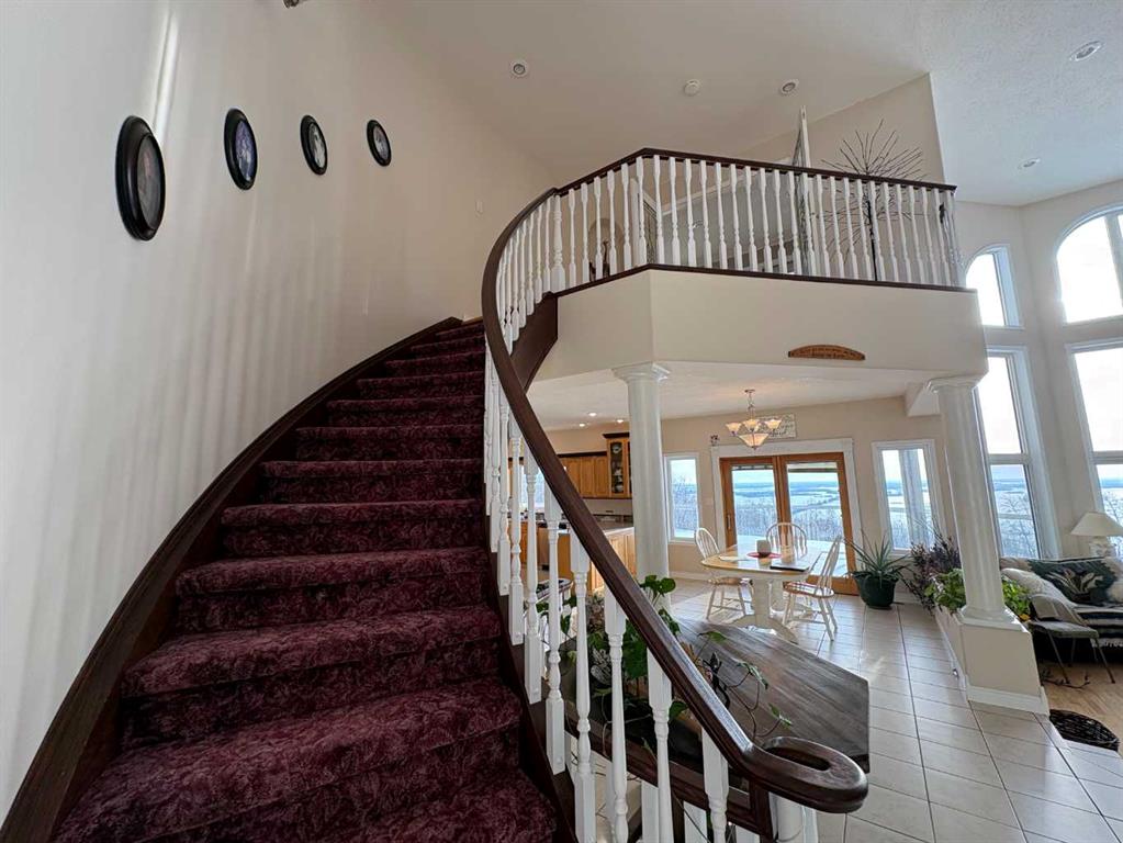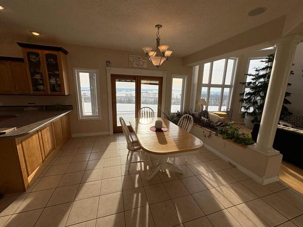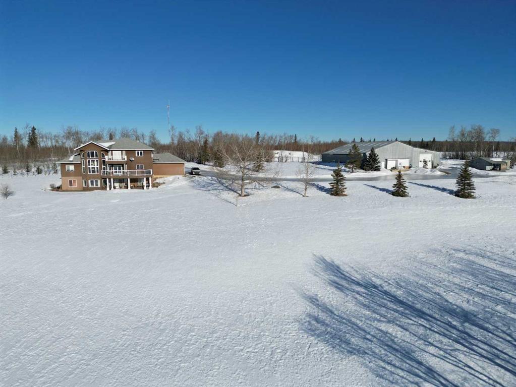 Welcome to this beautiful and private acreage located just north of Hines Creek, offering space, comfort, and breathtaking views that stretch for miles. This impressive storey-and-a-half home with a fully developed walk-out basement is perfectly suited for large families or multi-generational living. Boasting 7 bedrooms including two spacious primary suites and a total of 5 bathrooms, this home provides exceptional flexibility and room for everyone. The upper-level primary retreat features a generous layout and a luxurious 5-piece ensuite bath, creating the perfect place to unwind. The bright, open interior is enhanced by abundant windows and a desirable southern exposure, filling the home with natural light throughout the day. A unique winding staircase adds character and architectural charm, while the additional kitchen in the walk-out basement offers excellent potential for extended family living or guest accommodations. Step outside and enjoy the privacy and peaceful surroundings, along with a large attached garage for convenience. The property also features a substantial barn/workshop which would be ideal for hobbies, storage, livestock, or home-based projects. Located just minutes from Hines Creek and a short drive to Fairview, this exceptional acreage combines rural tranquility with easy access to nearby amenities. A rare opportunity to enjoy space, views, and versatility, all in one remarkable property. Call for your appointment to view.