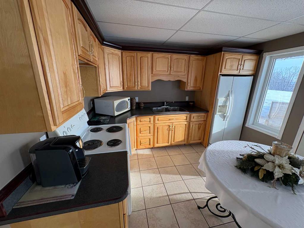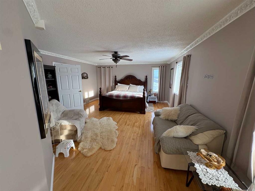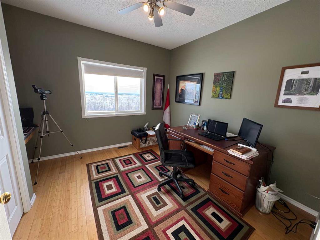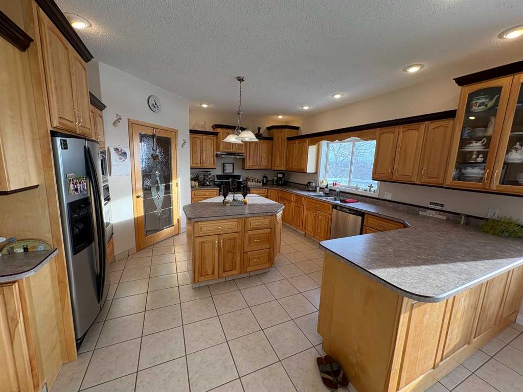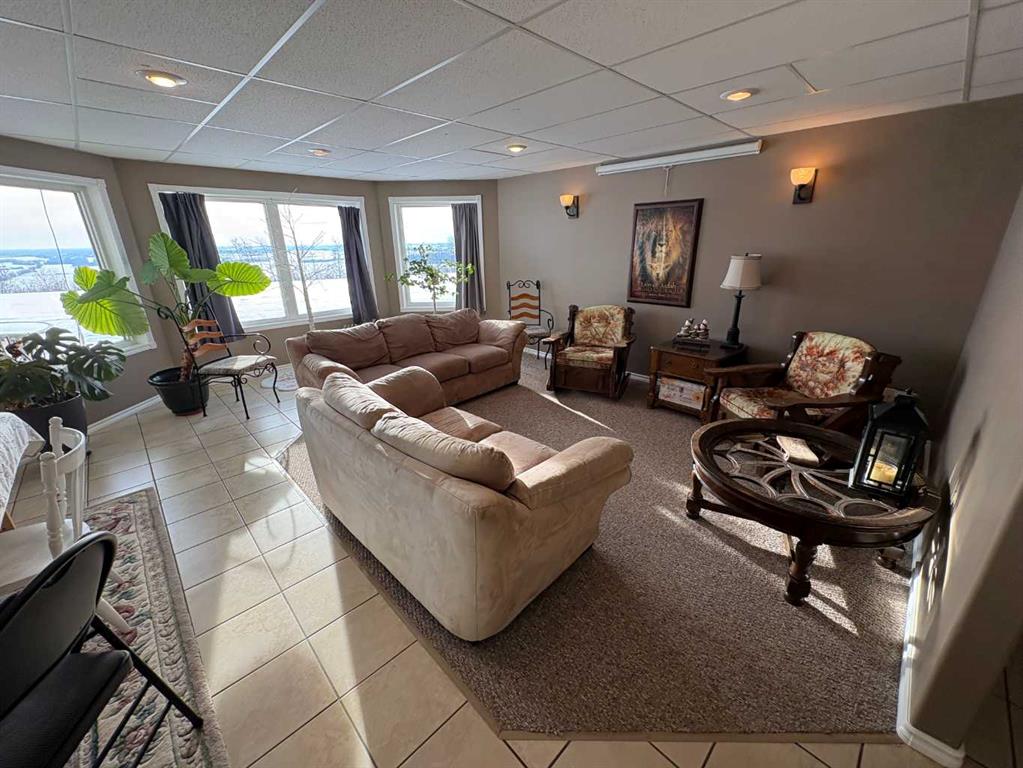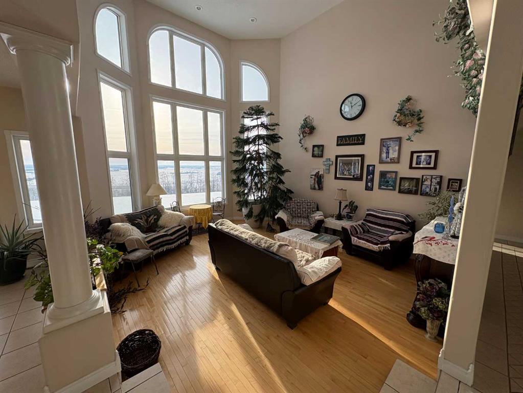 Welcome to this beautiful and private acreage located just north of Hines Creek, offering space, comfort, and breathtaking views that stretch for miles. This impressive storey-and-a-half home with a fully developed walk-out basement is perfectly suited for large families or multi-generational living. Boasting 7 bedrooms including two spacious primary suites and a total of 5 bathrooms, this home provides exceptional flexibility and room for everyone. The upper-level primary retreat features a generous layout and a luxurious 5-piece ensuite bath, creating the perfect place to unwind. The bright, open interior is enhanced by abundant windows and a desirable southern exposure, filling the home with natural light throughout the day. A unique winding staircase adds character and architectural charm, while the additional kitchen in the walk-out basement offers excellent potential for extended family living or guest accommodations. Step outside and enjoy the privacy and peaceful surroundings, along with a large attached garage for convenience. The property also features a substantial barn/workshop which would be ideal for hobbies, storage, livestock, or home-based projects. Located just minutes from Hines Creek and a short drive to Fairview, this exceptional acreage combines rural tranquility with easy access to nearby amenities. A rare opportunity to enjoy space, views, and versatility, all in one remarkable property. Call for your appointment to view.