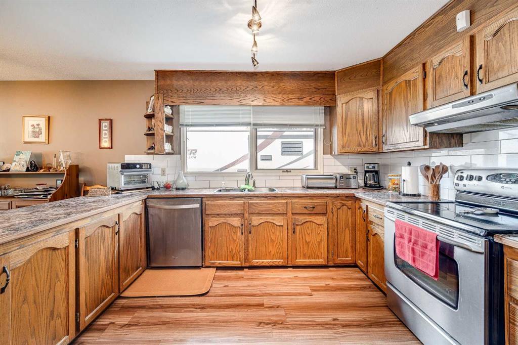 SPRING IS HERE! Make your move to Sylvan Lake! Bring the RV, boat and paddle boards and start enjoying lake life. This 1439 sf bungalow is perfect for a fun seeking family or a wonderful retirement home, located just 1 block from the lake and within walking distance to restaurants, shopping, ice cream shops, and beach activities.The home features 3 bedrooms, 2 bathrooms, a spacious kitchen open to the living room, and an additional family room with a cozy wood burning stove-perfect for relaxing after a day at the lake. Enjoy your morning coffee on the front verandah or host a BBQ on the back deck. The property sits on 2 large 30'x125 lots, offering plenty of space to park an RV, or boat beside the house, plus a detached 24 .6'x 26' garage, for 1 vehicle and extra storage. A perfect opportunity to enjoy everything Sylvan Lake has to offer!