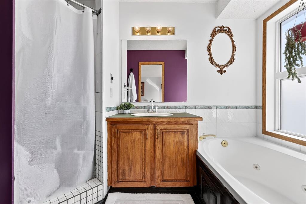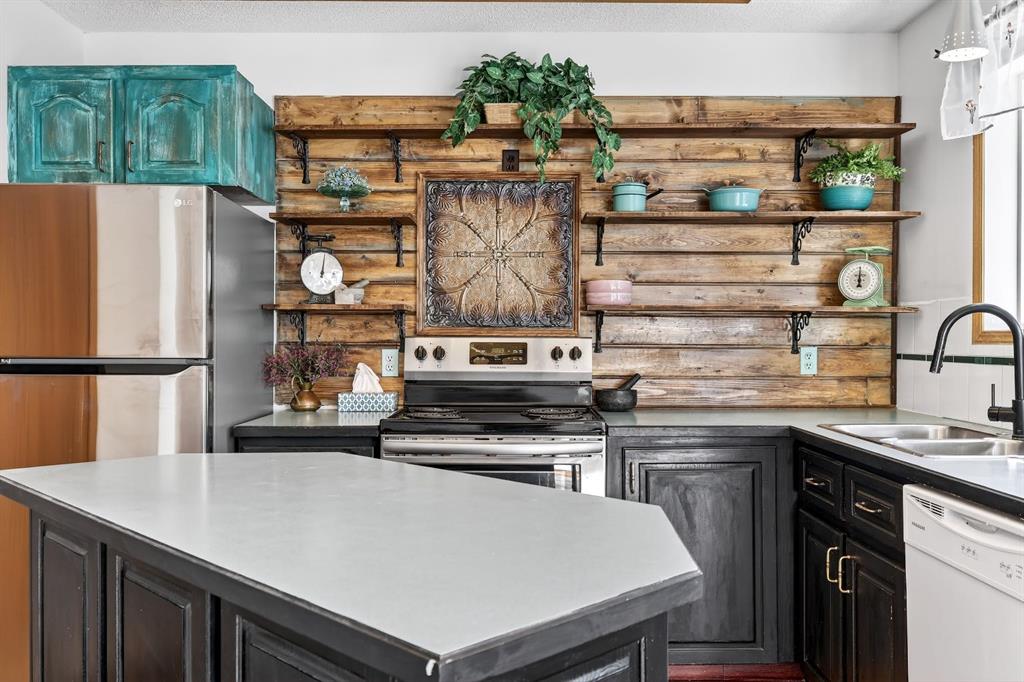 Located in Suntree Heights, one of Okotoks’ most sought-after communities, this 5-bedroom bi-level home offers a wonderful blend of comfort, space, and location. Known for its mature trees, quiet streets, and convenient access to schools, shopping, recreation, and Calgary, Suntree Heights is a favourite for families. The main level is bright and welcoming with large windows, a comfortable living and dining space, and a kitchen with charming rustic touches and open shelving. Step onto the upper deck to enjoy beautiful mountain views, a perfect spot to relax and take in the surroundings. A great opportunity for buyers looking to add their own style over time. The walkout basement benefits from the raised bi-level design, allowing for large windows and plenty of natural light. This level includes two bedrooms, a den, and a spacious family room with a cozy wood-burning stove, creating an ideal second living area for family, guests, or teenagers. Outside, the large backyard features an environmentally friendly garden with rain barrels and raised beds, along with several peaceful outdoor nooks to enjoy the space. With a large double garage, mountain views, a beautiful yard, and a quiet location, this home presents a fantastic opportunity in one of Okotoks’ most established and desirable neighbourhoods.