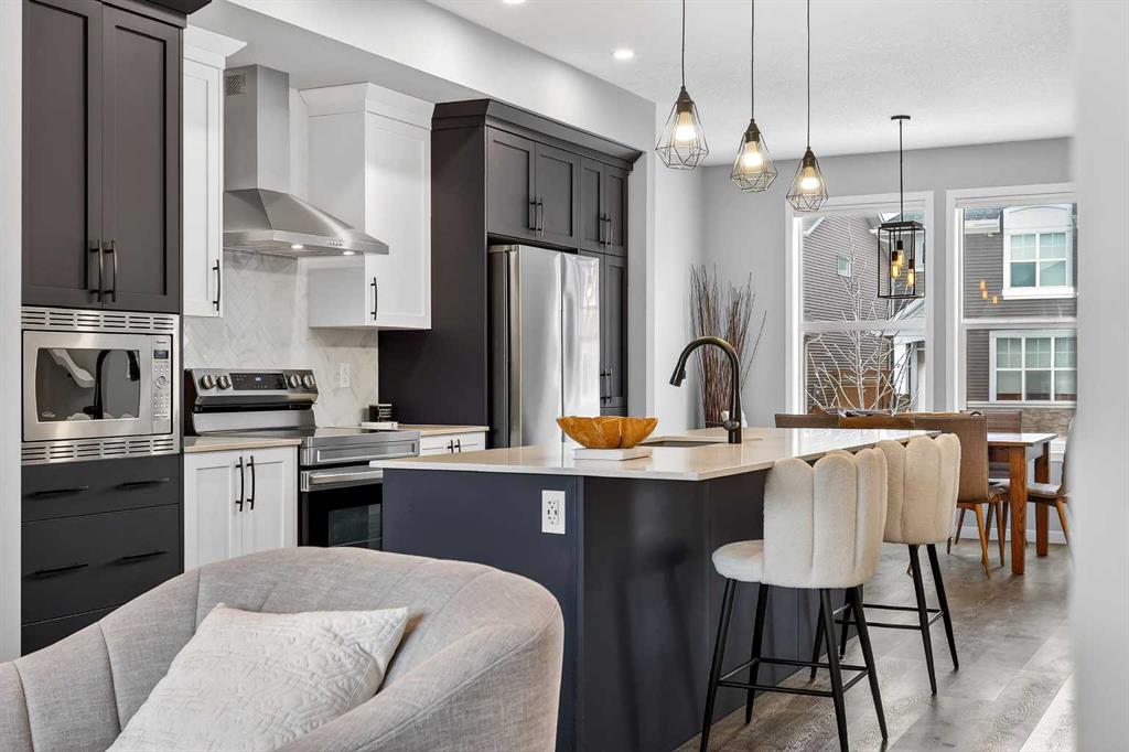 Welcome to this immaculate, air-conditioned semi-detached two-storey in the highly desirable community of Wedderburn, offering over 1,400 sq. ft. of thoughtfully designed living space with 2 bedrooms and 2.5 bathrooms on a 2,952 sq. ft. lot. With new fencing, low-maintenance landscaping, and charming architectural details, this home delivers both curb appeal and everyday comfort. Step inside to a welcoming foyer with 9’ knockdown ceilings, neutral tones, and durable laminate flooring that flows throughout the main level. The dining area greets you first, creating a warm and inviting space for family meals and gatherings. From here, the layout flows seamlessly into the sleek, chef-inspired kitchen, featuring gorgeous two-tone cabinetry, quartz countertops, stainless steel appliances, a spacious island with breakfast bar seating, and a convenient pantry, perfect for both entertaining and everyday living. At the back of the home, the bright and comfortable living room offers a cozy retreat with an electric fireplace and remote-controlled blinds throughout, while large windows bring in plenty of natural light. A practical mudroom with a built-in bench leads directly to the deck and backyard, and a 2-piece powder room completes the main level. Upstairs, you’ll find a versatile office or study area and a dedicated laundry room with wire shelving. The upper level features two spacious bedrooms, each with its own private ensuite, offering comfort, privacy, and flexibility—perfect for family members, guests, or a roommate arrangement. The full, undeveloped basement offers incredible potential for future development and already includes rough-in plumbing, making it easy to add an additional bathroom and expand the living space to suit your needs. Outside, the south-facing backyard extends your living space with a sunny deck perfect for summer barbecues, relaxing evenings, or spending time with children and pets. Located close to shopping, parks, schools, and everyday amenities, with convenient access to Banister Drive and Northridge Drive, this beautifully maintained home offers the perfect combination of comfort, functionality, and community living. Move-in ready and meticulously cared for, this Wedderburn home is ready to welcome its next chapter.