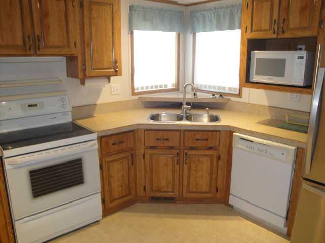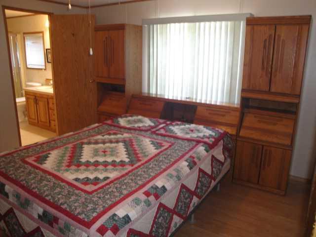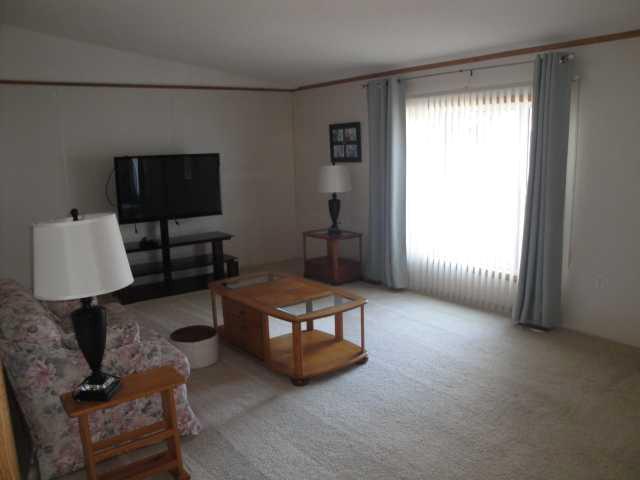 This spacious 1,456 sq ft double-wide home in the sought-after active-adult community of Parkbridge Estates offers 3 bedrooms and 2 bathrooms, highlighted by a large living room, a huge kitchen with abundant cabinetry, and an ample dining area perfect for gatherings. The generous primary bedroom includes a roomy ensuite with a walk-in shower, while vaulted ceilings throughout add an airy, open feel. Situated on a unique corner lot facing the street, the property features central air conditioning, underground sprinklers, a 22' x 24' attached double garage with a double driveway for extra parking and convenient inside access, plus a spacious laundry room and a cozy morning-coffee deck. This well-designed home blends comfort, functionality, and an exceptional location within a welcoming 55+ community. Buyer must be approved by Parkbridge Estates management.
