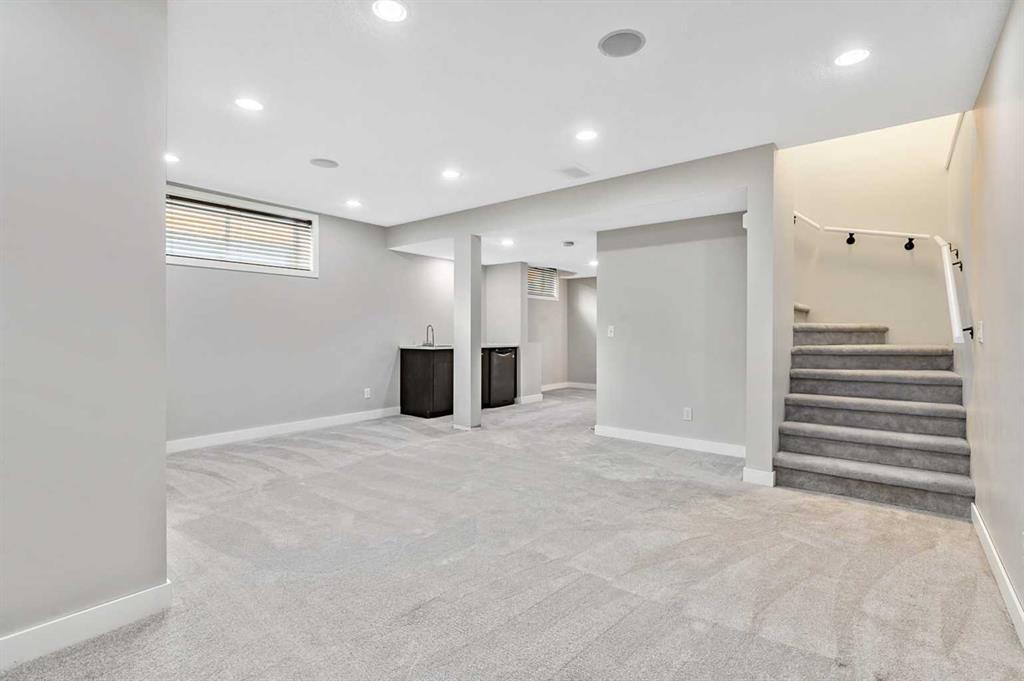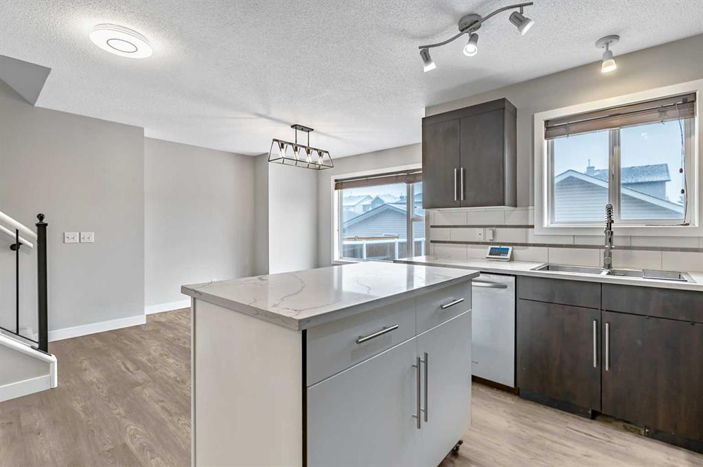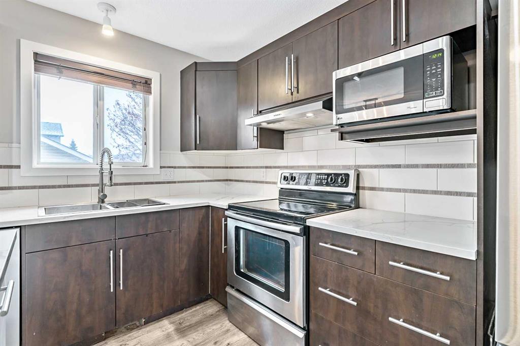 Welcome to this stunning renovated former show home, perfectly situated on an oversized corner lot that immediately captures attention. With over 1,900 square feet of professionally developed living space, this 3 bedroom, 3.5 bathroom residence showcases custom architectural features and thoughtful upgrades throughout. The main level greets you with a cozy corner gas fireplace in the living room, complemented by new laminate flooring that flows seamlessly into the two-piece bathroom, kitchen, and dining area. The updated kitchen is a true showpiece, featuring quartz countertops, rich dark maple cabinetry, a functional preparation island, pantry, double sinks, and sleek stainless steel appliances. The bright and spacious dining area offers convenient access to a generous backyard, perfect for entertaining and outdoor gatherings. Wide staircases lead upstairs to the bedrooms and downstairs to a professionally finished lower level by Stepper Homes, complete with a family room, wet bar, office area, laundry room, and a full bathroom. The expansive primary bedroom boasts double closets and a three-piece ensuite, while two additional bright bedrooms feature large closets and share a four-piece bathroom. Notable upgrades include a newer roof installed in 2023, quartz counter tops thru-out the home, and the property sits on an impressive thirty-five-foot-wide lot with a beautiful double car garage. The location offers exceptional convenience near major ring roads and shopping corridors, all at a remarkably affordable price point. This home truly has it all. Schedule your private viewing today and discover your new home sweet home!