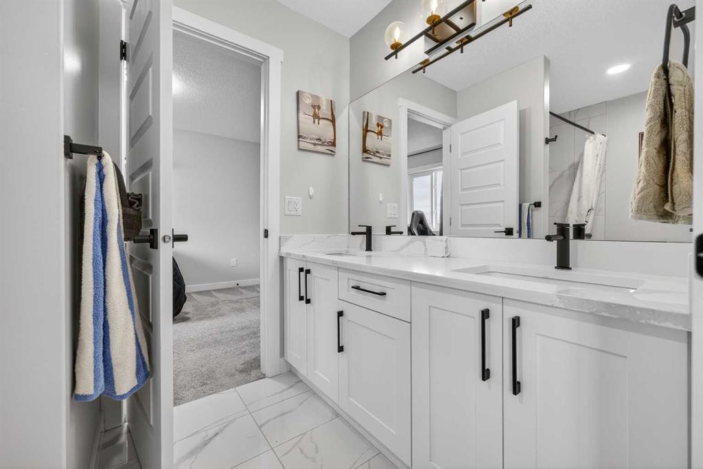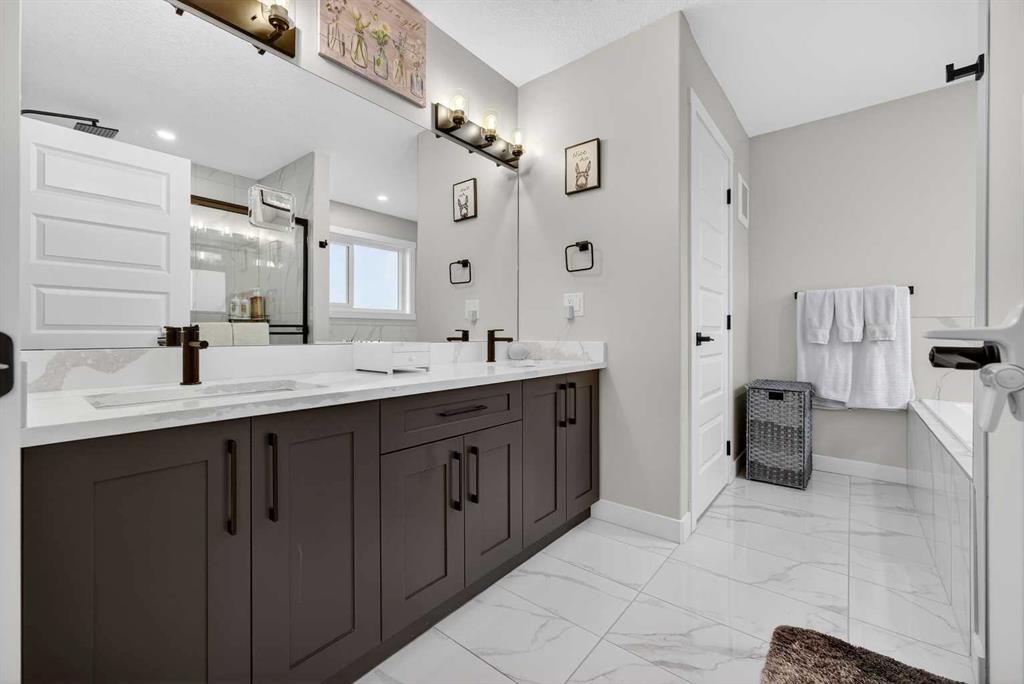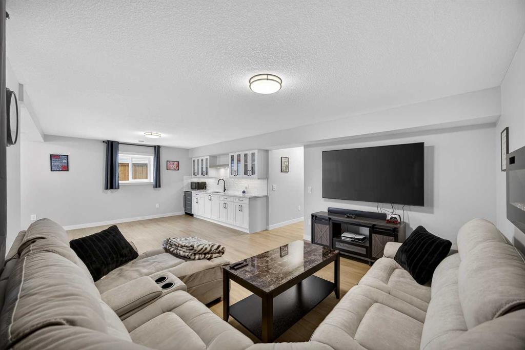 Just one year young and offering over 2,600 sq ft above grade, and 4 bedrooms upstairs, this stunning two-storey blends thoughtful design with elevated finishes — and yes, those wide-open country sunset views really are as incredible as they sound. Expansive rear windows flood the open-concept main floor with natural light while framing miles of prairie landscape… your evening routine just found its new favourite backdrop. The main level welcomes you with a spacious front entry and versatile flex room perfect for a home office, salon, playroom, or whatever your life needs today. The living room anchors the space with a feature fireplace, while the oversized dining area opens to the expanded upper deck with gas line and convenient access to the yard below — ideal for summer entertaining that lasts until the sun dips below the horizon. The kitchen? Equal parts stylish and seriously functional. Gas cooktop, built-in oven and microwave, beverage fridge, and an abundance of workspace… but the pièce de résistance is the show-stopping walk-through pantry with a full wall of wood shelving leading directly to the triple garage entry. This practical drop zone includes open locker-style hooks and shelving designed for every season of gear. A powder room completes the main floor. Upstairs is where this home truly shines for families — FOUR bedrooms on one level (yes, all upstairs!) plus a massive bonus room with an abundance of cabinetry and a second fireplace. The primary suite is a retreat of its own, featuring a spa-inspired ensuite with dual sinks, glass/tile shower, soaker tub, and a walk-in closet that absolutely lives up to the hype. Two bedrooms share a convenient central bath, while the fourth bedroom and additional full bathroom provide flexibility for guests, teens, or multigenerational living. The fully finished walkout basement continues the theme of space and versatility, offering a large bedroom, full bathroom, and an expansive rec area with room for both movie nights and games or fitness space. The long wet bar with second beverage fridge ties it all together — because entertaining should be effortless. Outside, the yard is spacious, functional, and ready for summer… but let’s be honest, it’s the uninterrupted sunset views over open fields that make this property unforgettable. A nearly-new home, 4 bedrooms up, fully finished walkout, triple garage, and views that never get old — with just the right amount of sass and a whole lot of class. Virtual tour available in link. Call your favourite local REALTOR to check this spectacular property out today!