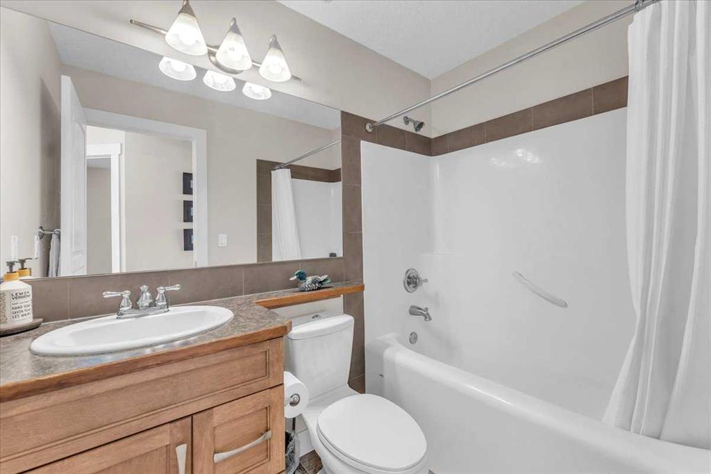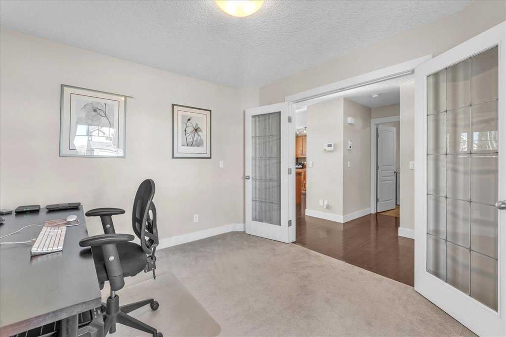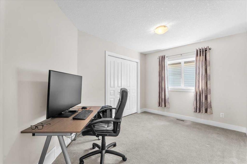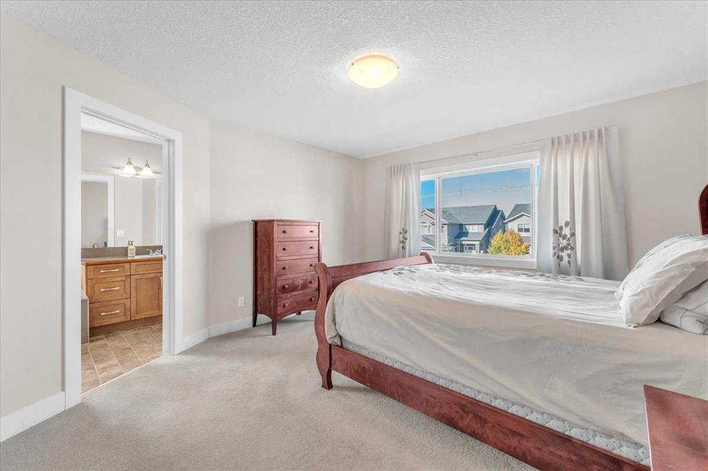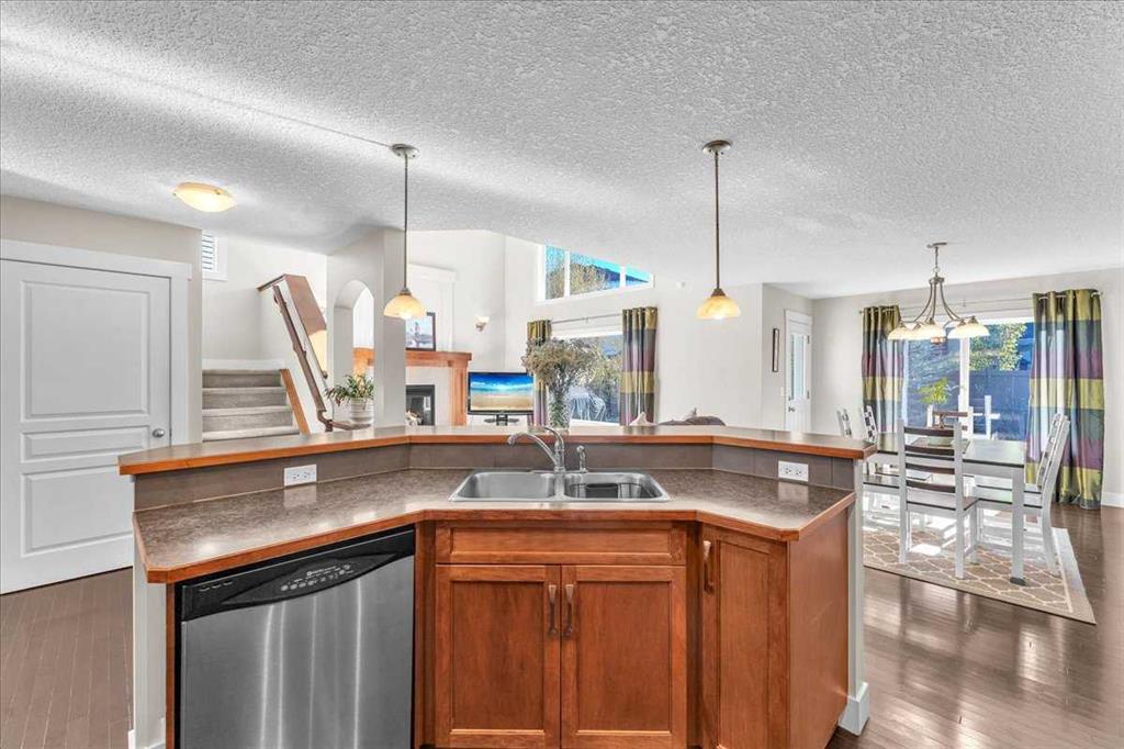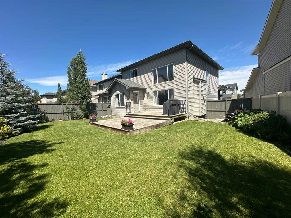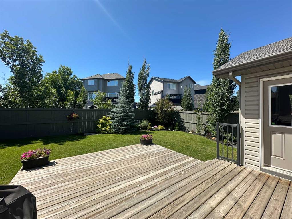 Pride of ownership shines through in this welcoming family home in the heart of the exclusive community of Cimarron Springs. Located just across the street from the estate homes along the pond, in addition to access to walking paths, this home offers a short walk to schools, shops, and restaurants. Step up to the front porch and into a bright foyer that immediately feels like home. Just off the entry, the flex room with French doors is perfect for a home office, study space, or even a playroom. Moving further in, the layout opens up beautifully into the heart of the home. The kitchen, dining area, and living room all connect seamlessly, making it easy to stay connected whether you're cooking, entertaining, or just hanging out at the end of the day. The living room features soaring ceilings, tons of natural light, and a cozy gas fireplace—perfect for our seemingly never ending winter!!! The kitchen is both functional and inviting, with rich wood cabinetry, stainless steel appliances, a gas cooktop, and a breakfast bar that’s ideal for quick meals or morning coffee. Just off the kitchen, the dining area offers plenty of space for family dinners and opens onto the back deck. Tucked around the corner, you’ll find a convenient 2-piece bath, main floor laundry, and access to the double attached garage. Upstairs, the you’ll find four bedrooms. The primary suite is set apart with a glimpse of the ponds of Cimarron Springs, along with a full ensuite featuring a soaker tub, separate shower, and a spacious walk-in closet. Three additional bedrooms and a full bathroom complete the upper level. Downstairs, the unfinished basement is a blank slate and ready for your ideas. With two windows and rough-in plumbing already in place, there’s room to create additional bedrooms, a family room, home gym, and a bathroom—whatever your family needs now or in the future. The south facing backyard has a large deck and established trees for privacy. Flexible possession.